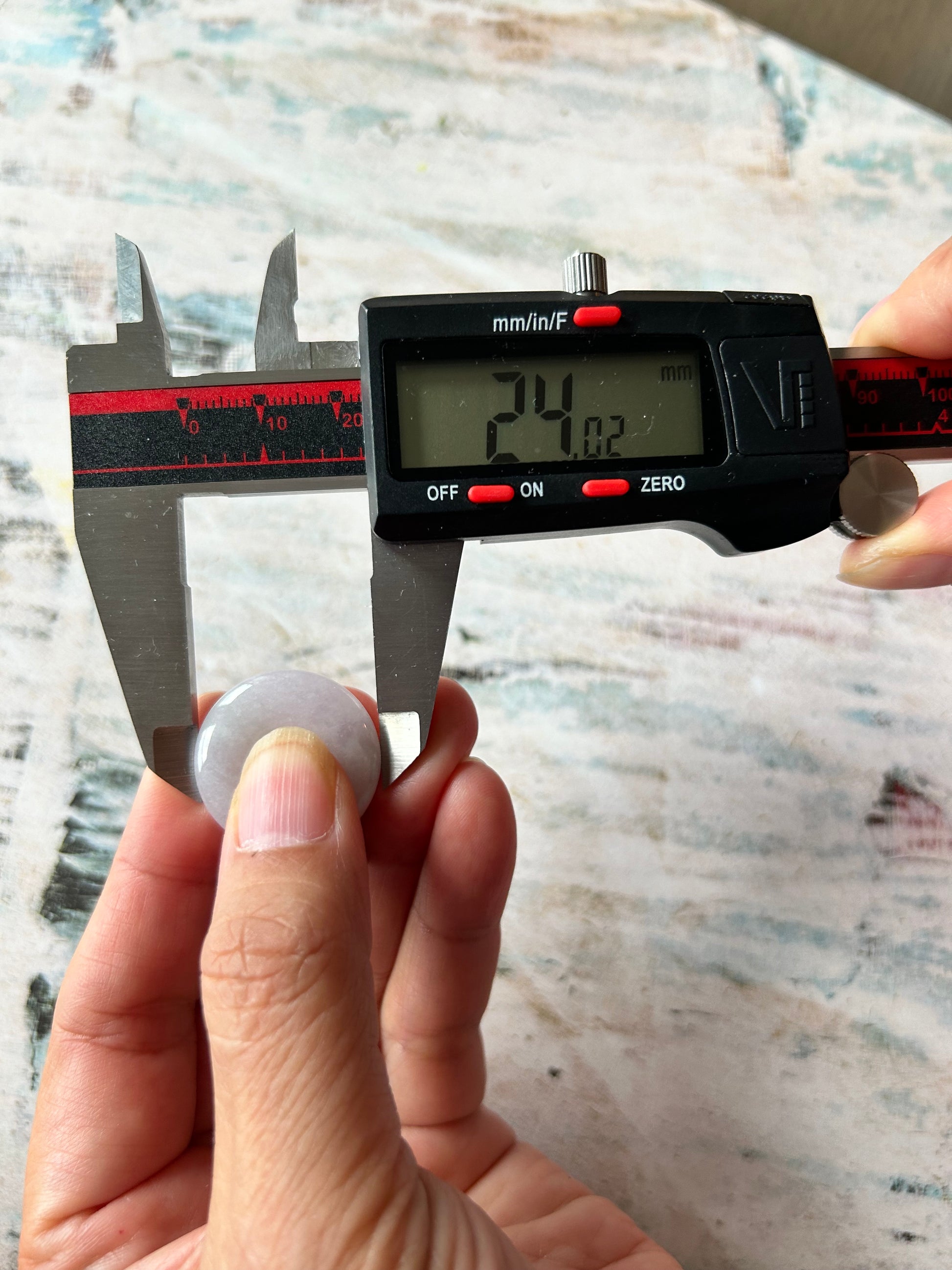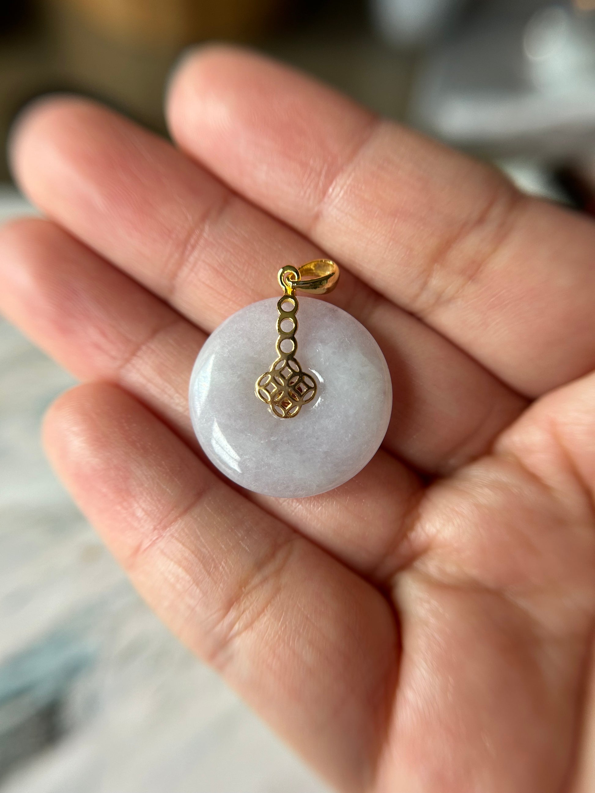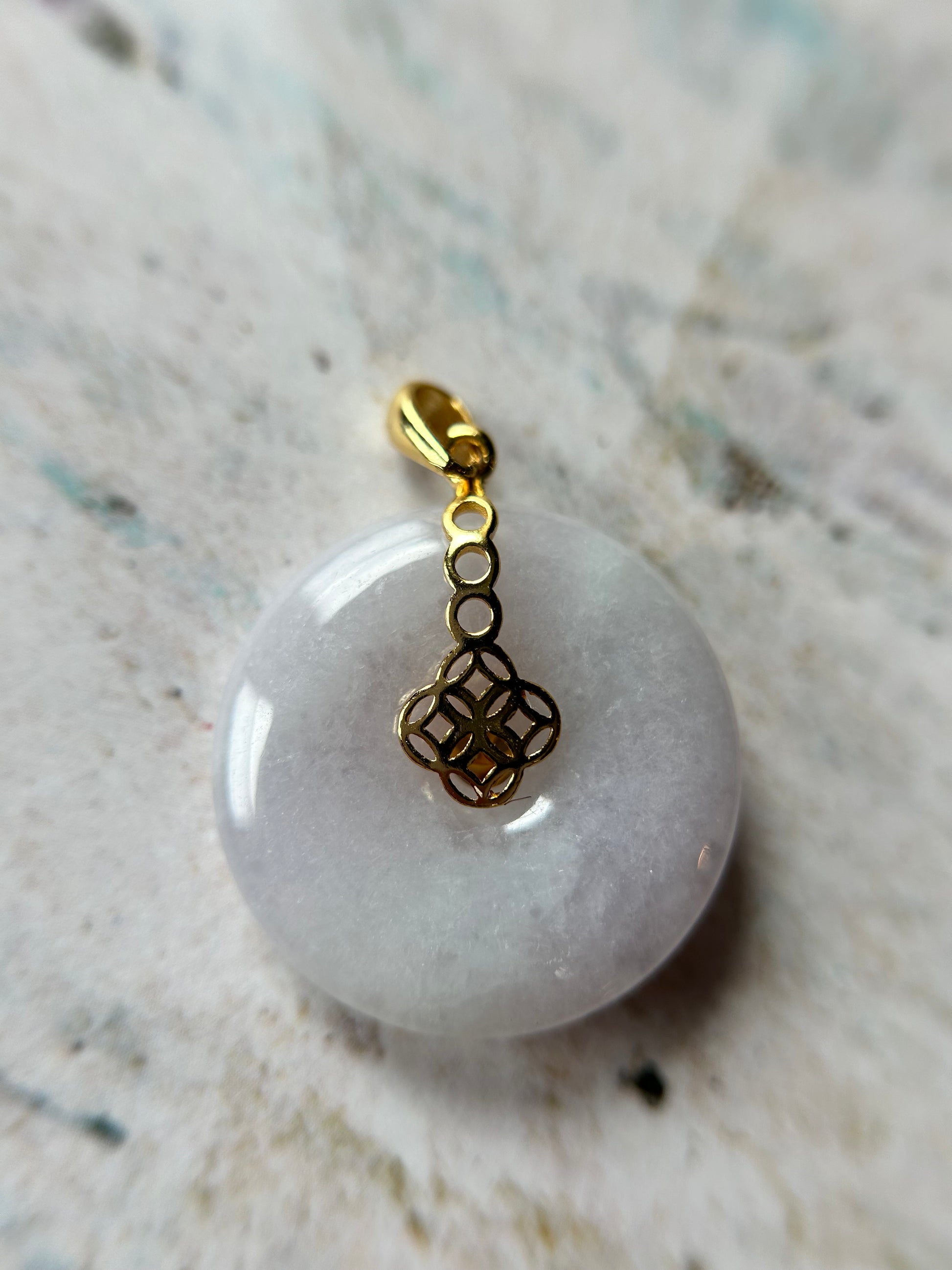 Grade A Natural lavender Jadeite Pi Disc ( peng on kou, donut) pendant with Gold over sterling silver coin bail