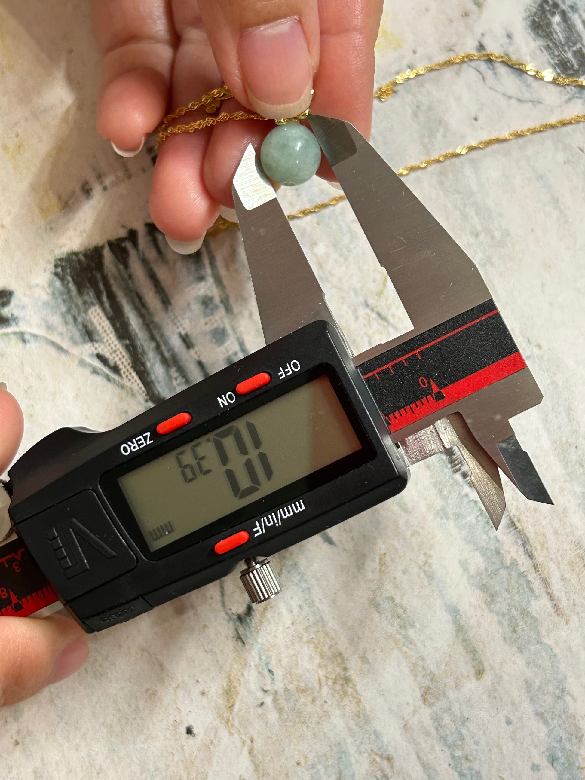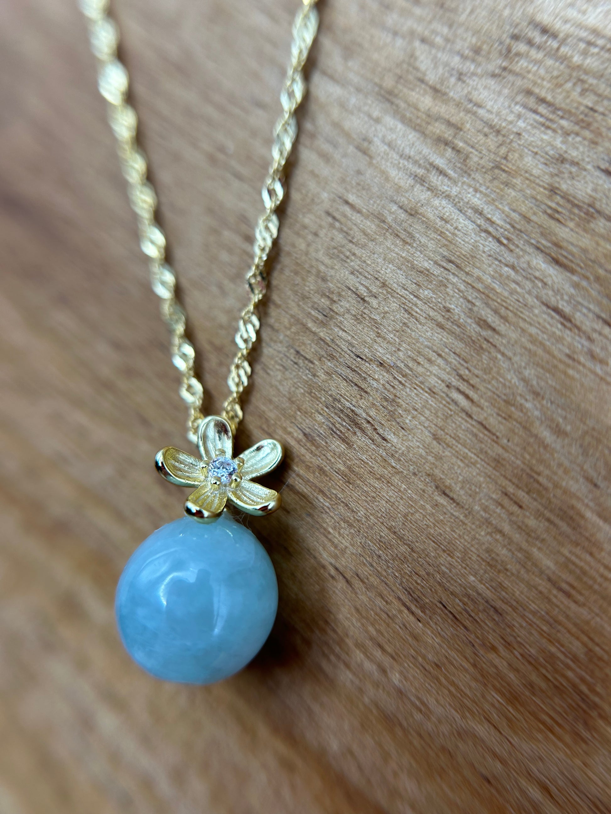 icy Green Bead  pendant. Genuine Type A jadeite. All natural non treated jade. This is a unique translucent piece of jadeite with flower gold over sterling silver bail necklace