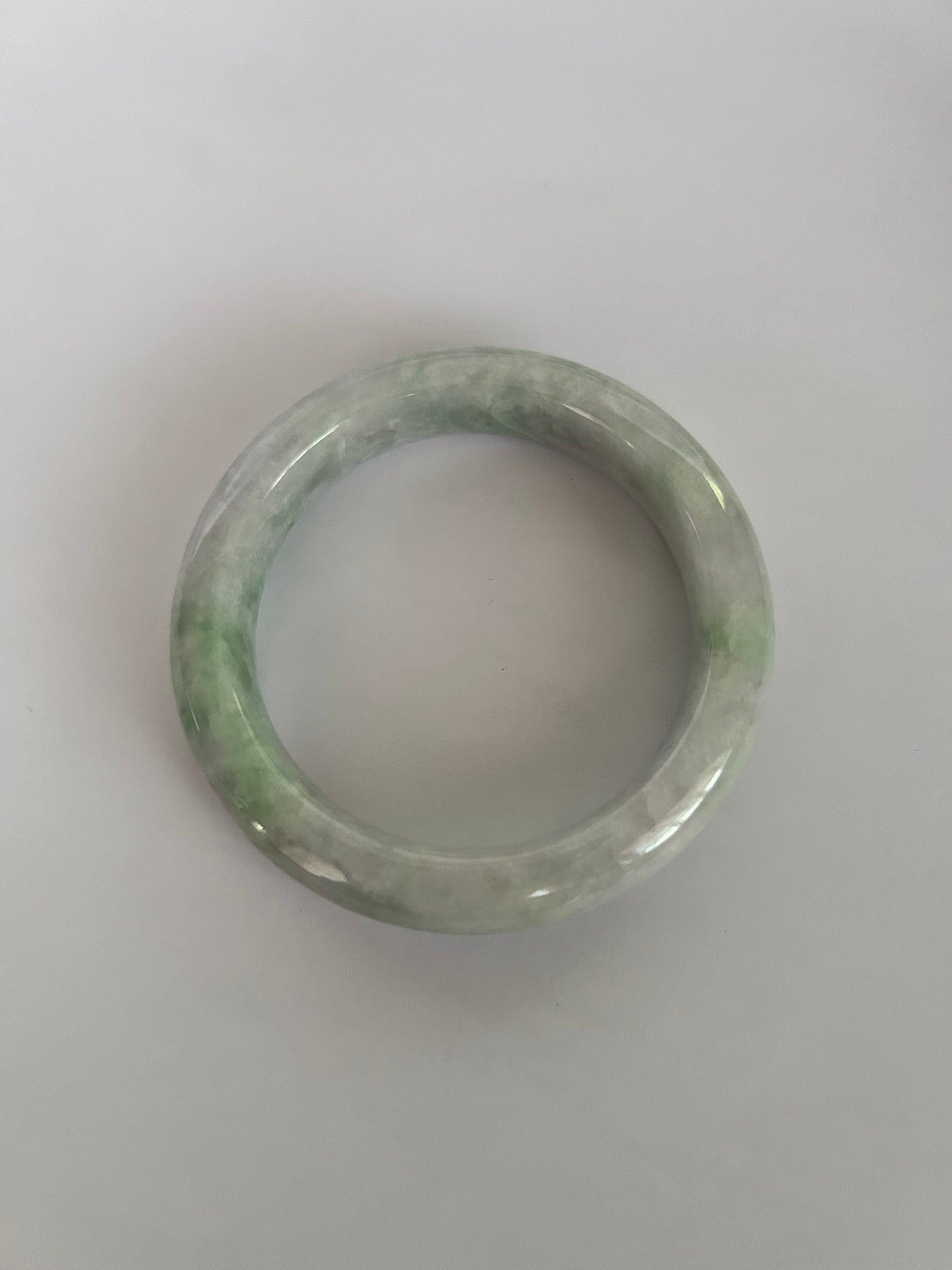 Light green jadeite bangle. The bangle have even light green color along with the lustrous and fine grains texture.