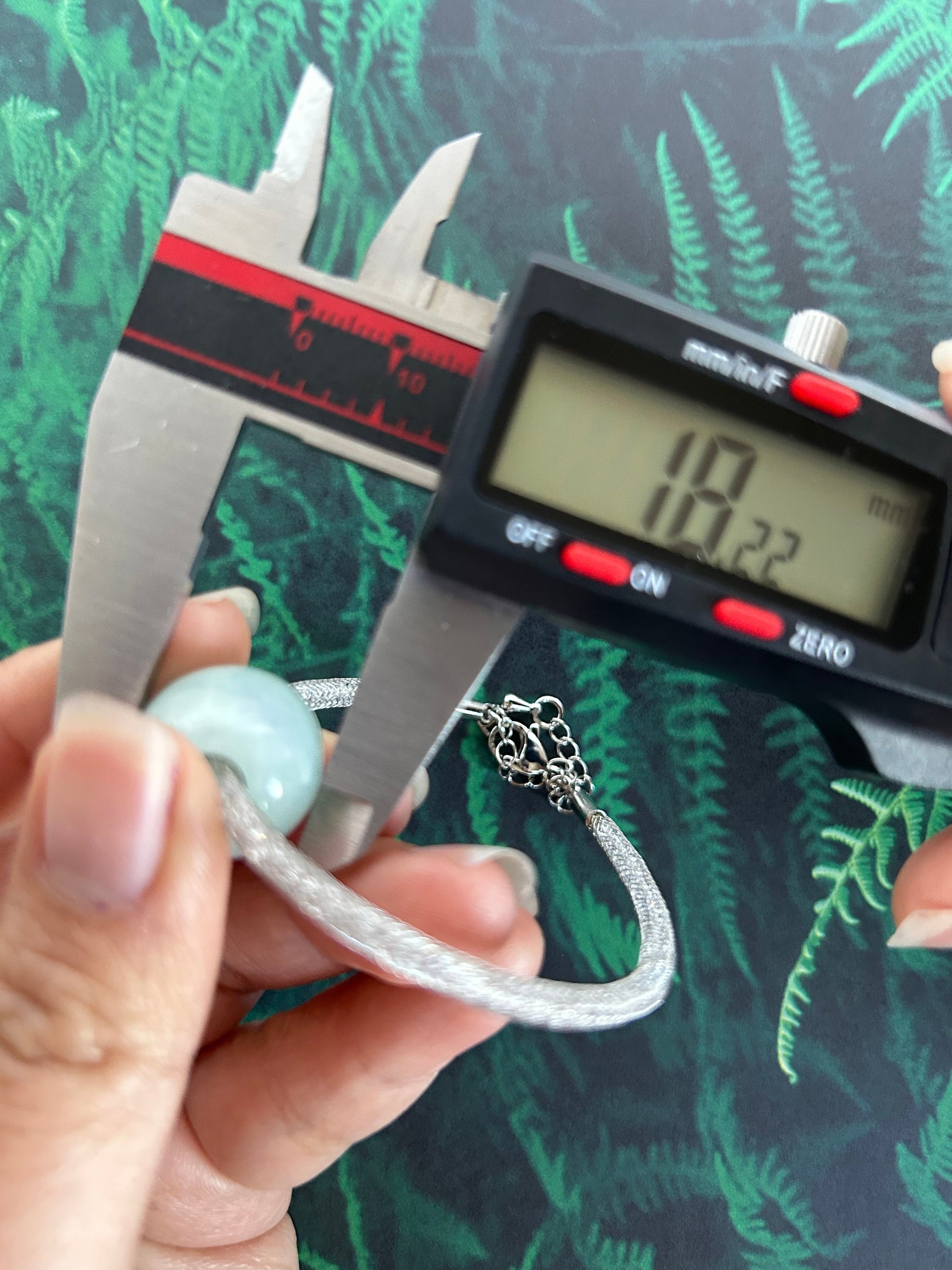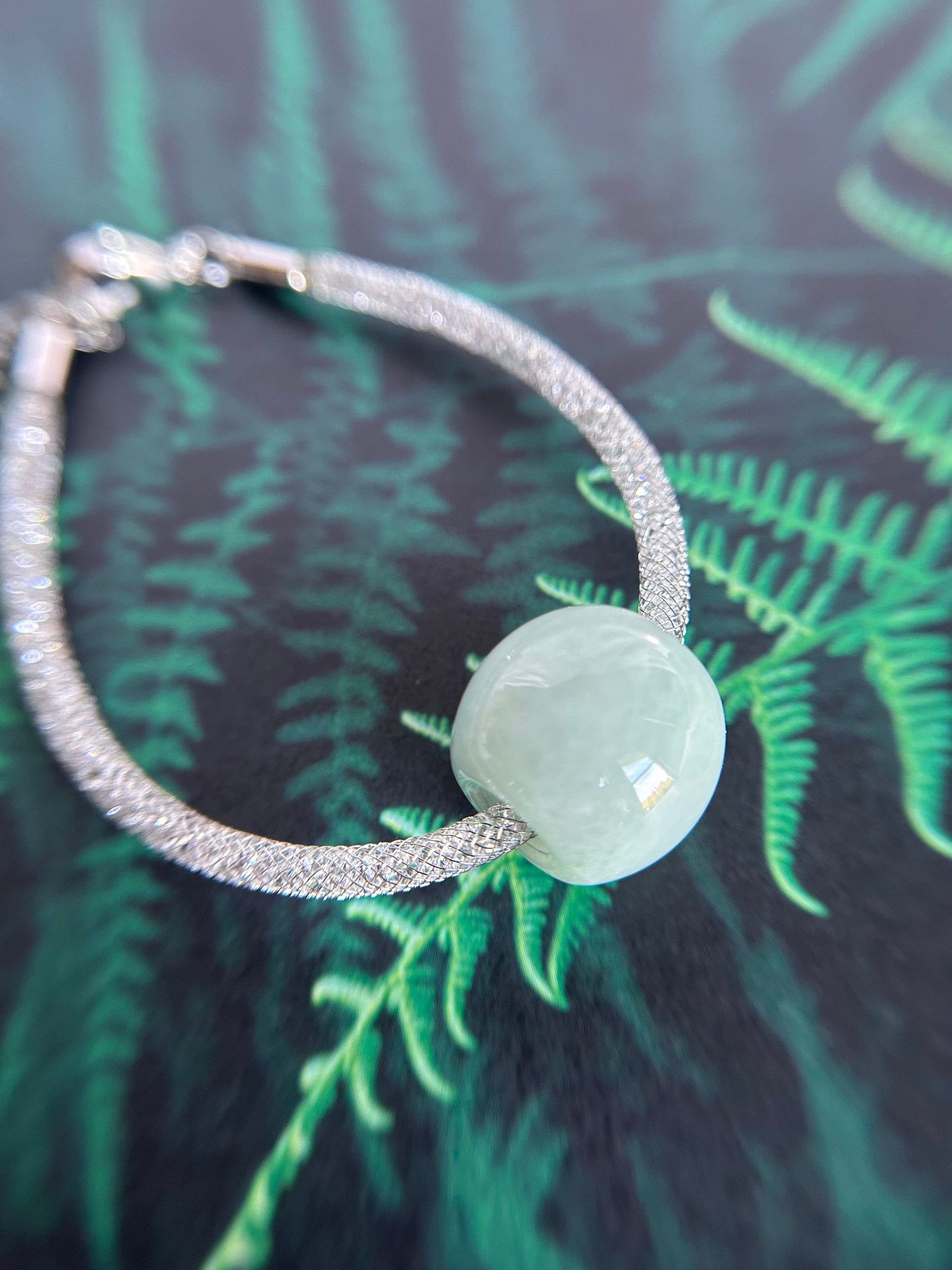 The Jadeite is light green and the crystal filled mesh bracelet gives it a modern look. This can be easily dress up or down. You can also switch the Lu Lu Tong to anybracelet. The bracelet can be adjusted from 6 inches to 10 inches.