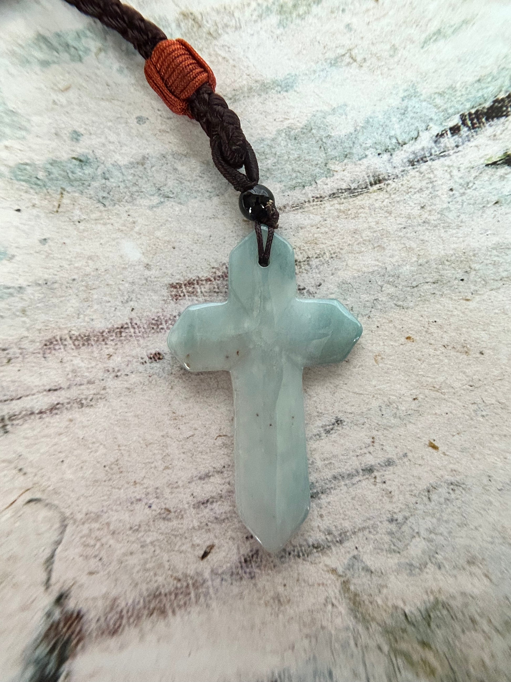 Jade cross pendant is a semi translucent piece. Jade is from Burma and it is guarantee to be a grade A piece, non dyed, non bleached , nor injected with polymers.