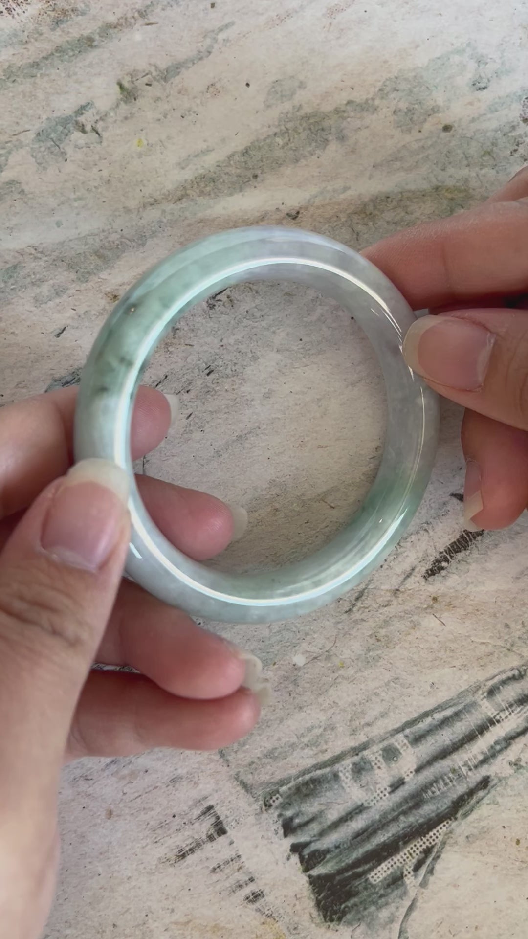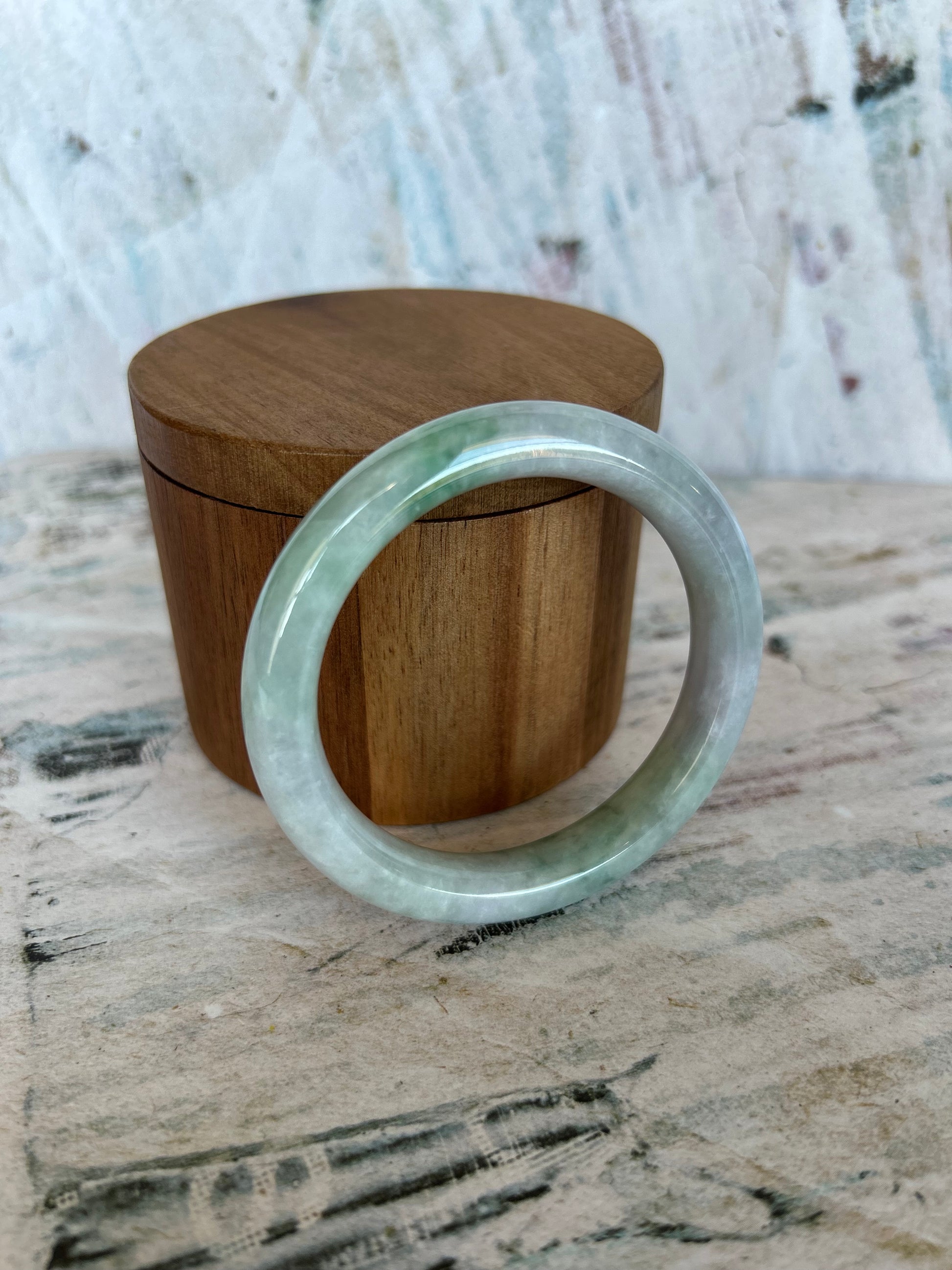 Grade A Natural Light Green with bright green patch Myanmar Jadeite Bangle