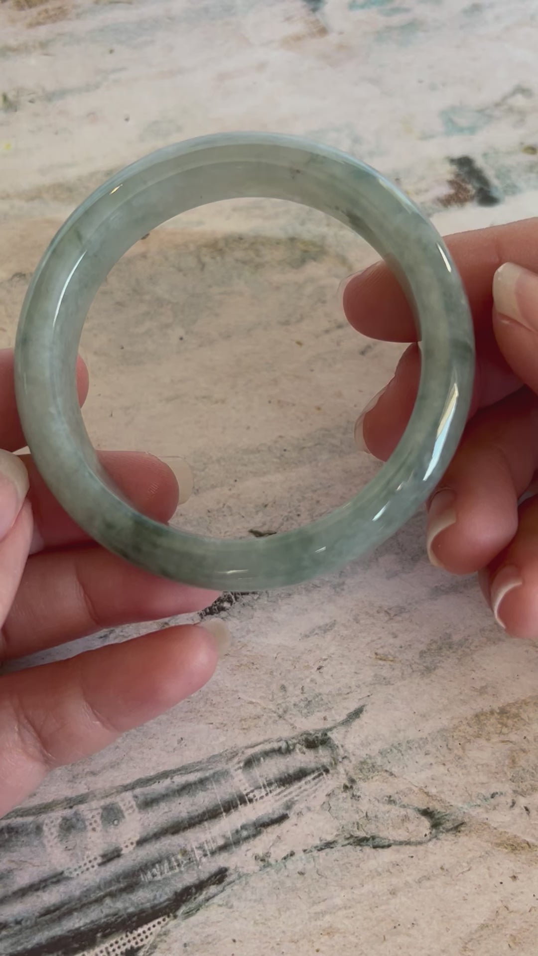Grade A Natural Light Green with Dark Green Patch Myanmar Jadeite Bangle