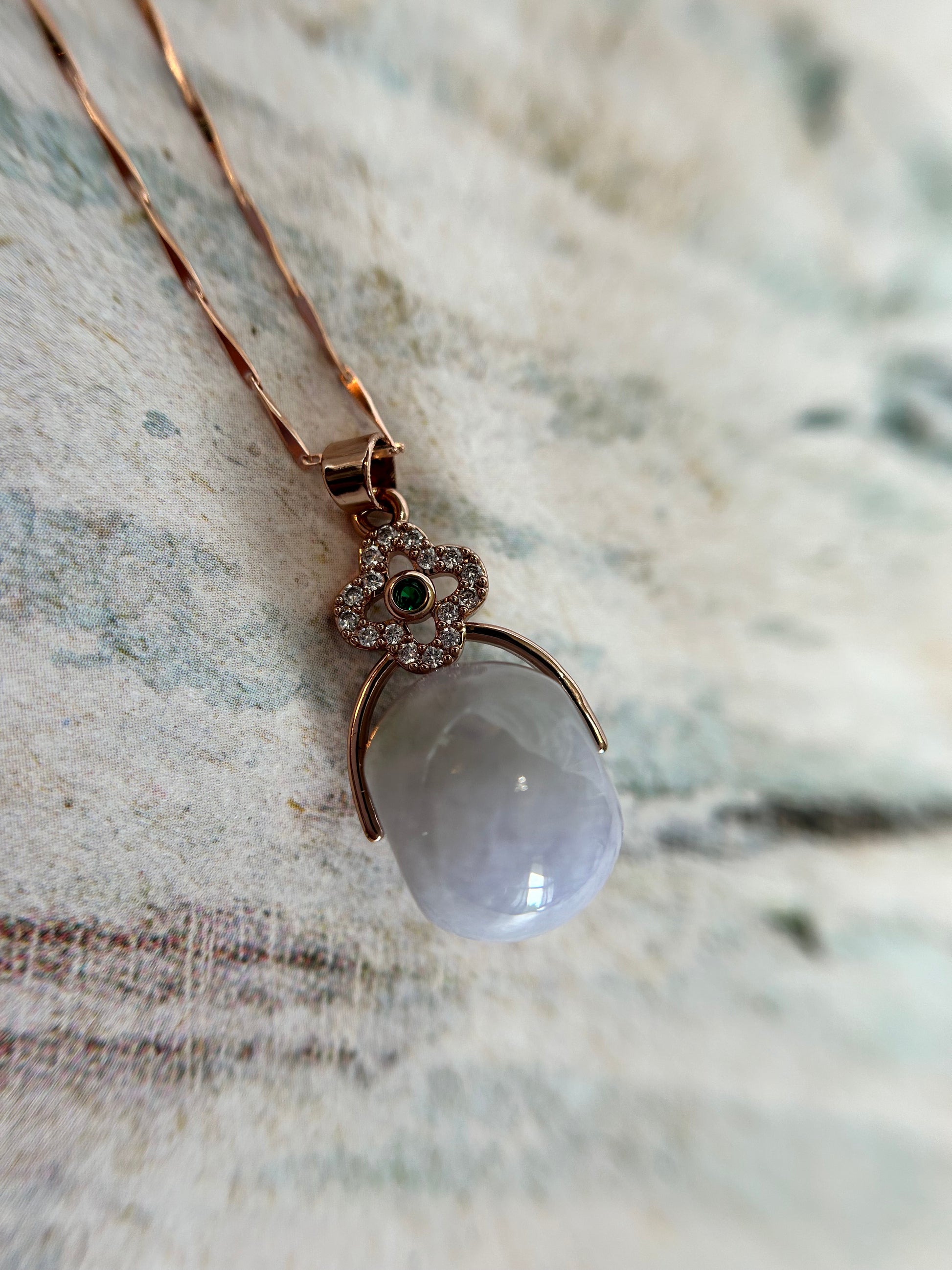 Lavender luluton jadeite pendant. Luluton is means everything will go smoothly in Chinese. It is usually gifted to others to send best wishes and wish that everything will go smoothly. This is also a great piece to get for yourself.