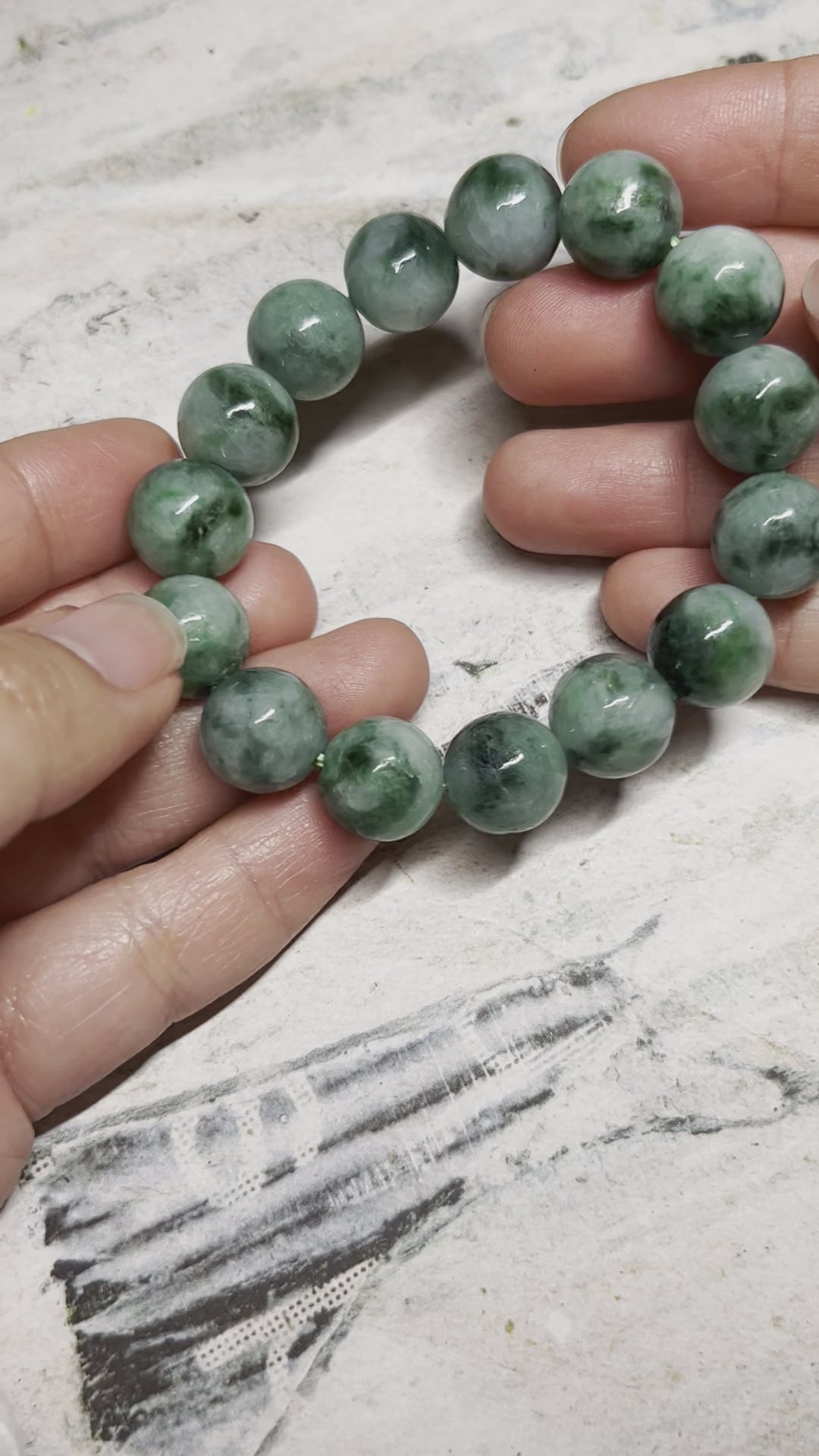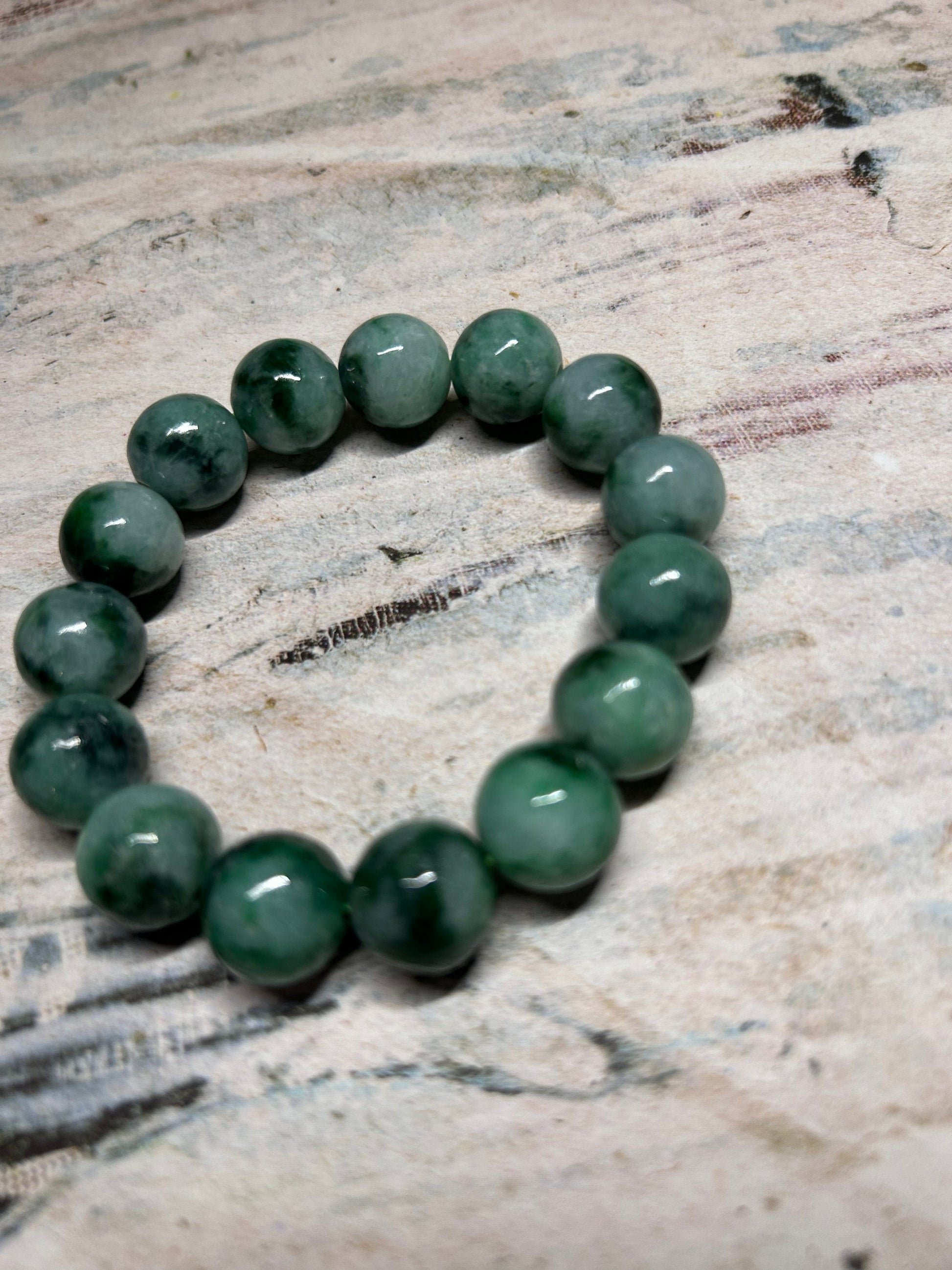 Grade A Natural Light with dark Green patches Burma Jadeite Beads Bracelet