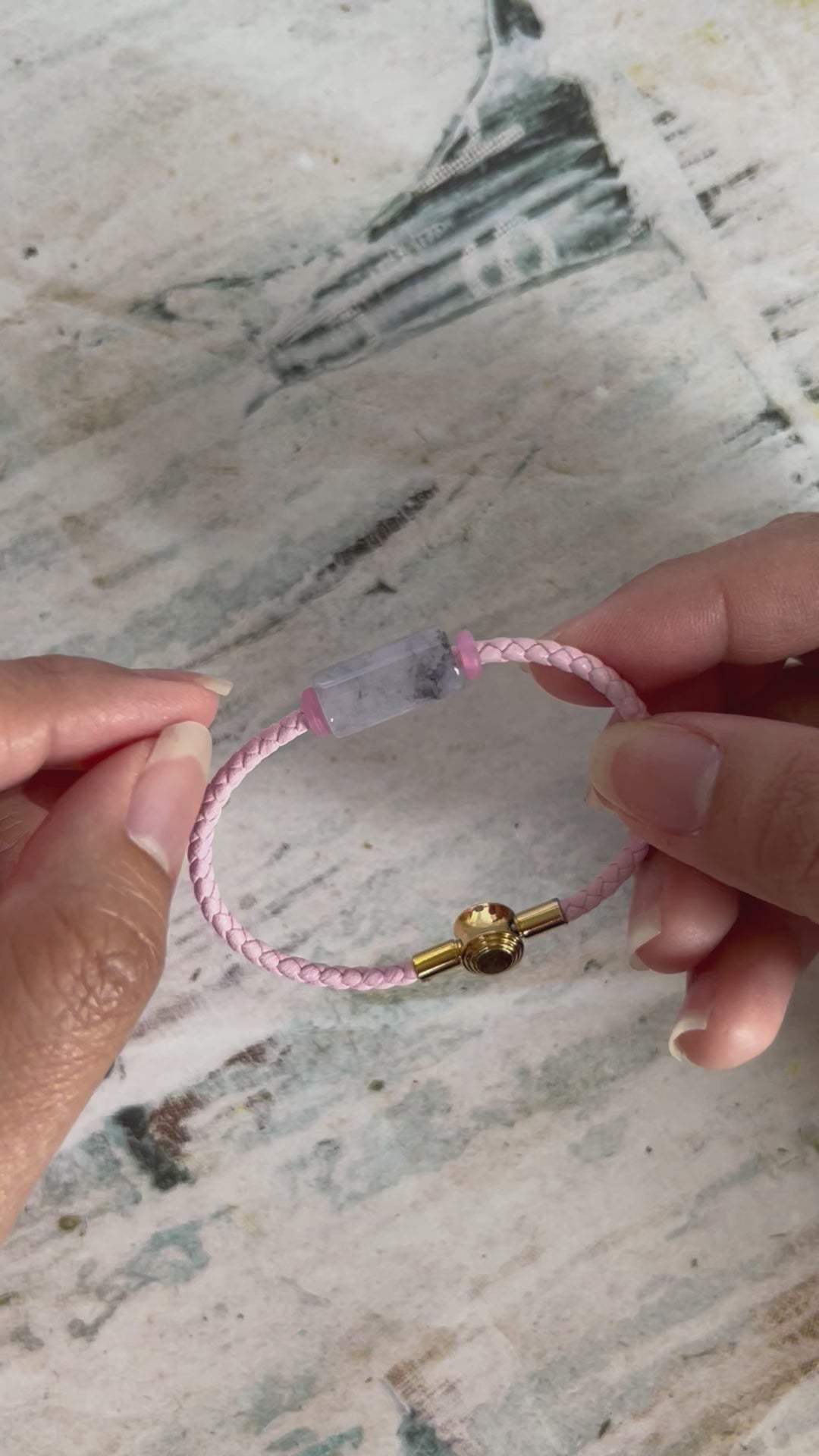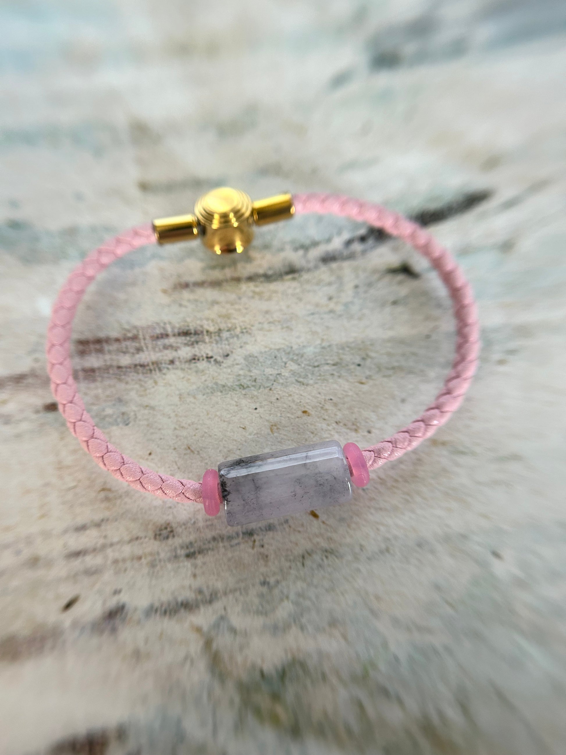 Grade A Natural Pink Burma Jadeite Lu Lu Tong (barrel) with Braided pink Nylon Bracelet