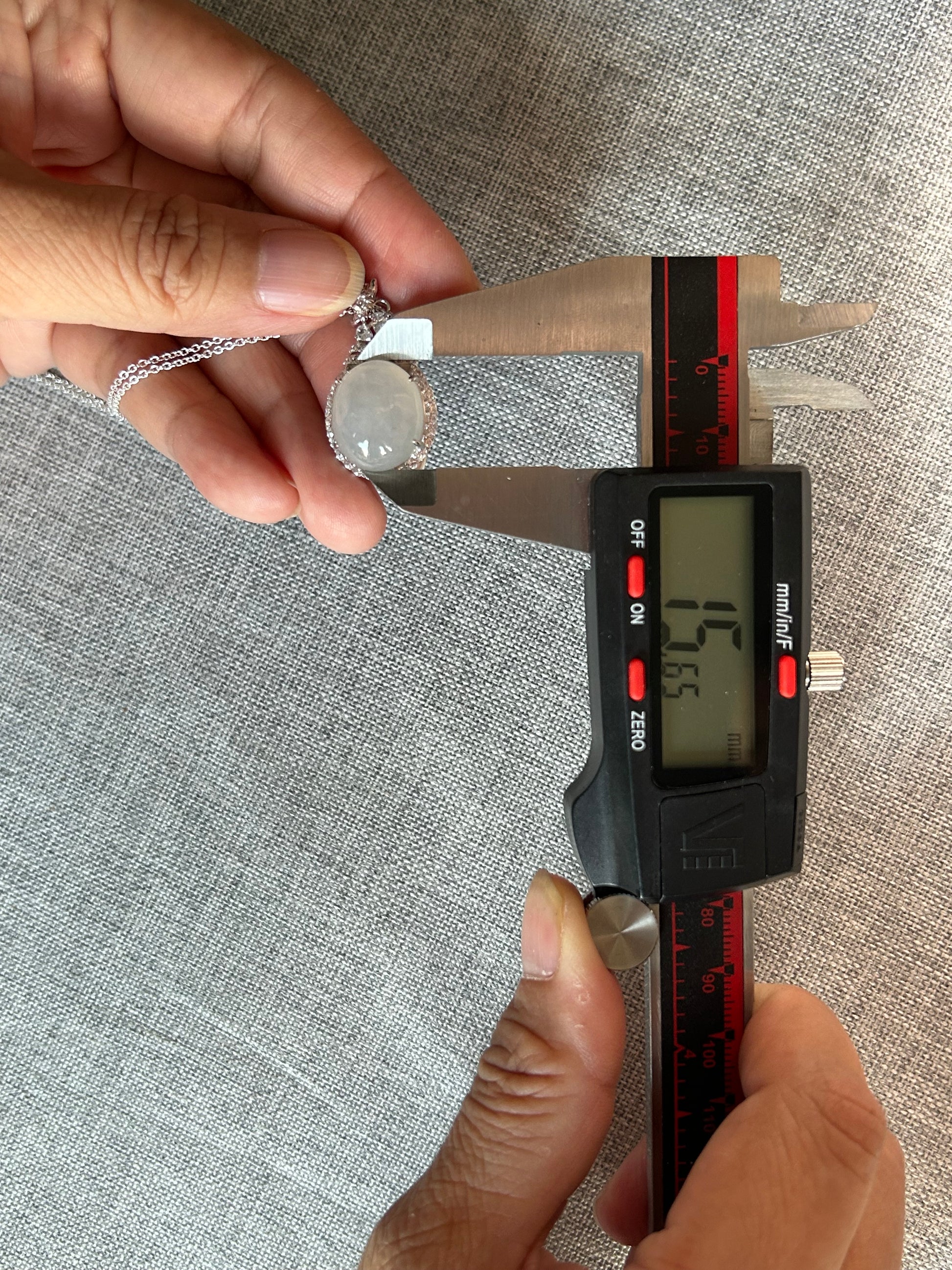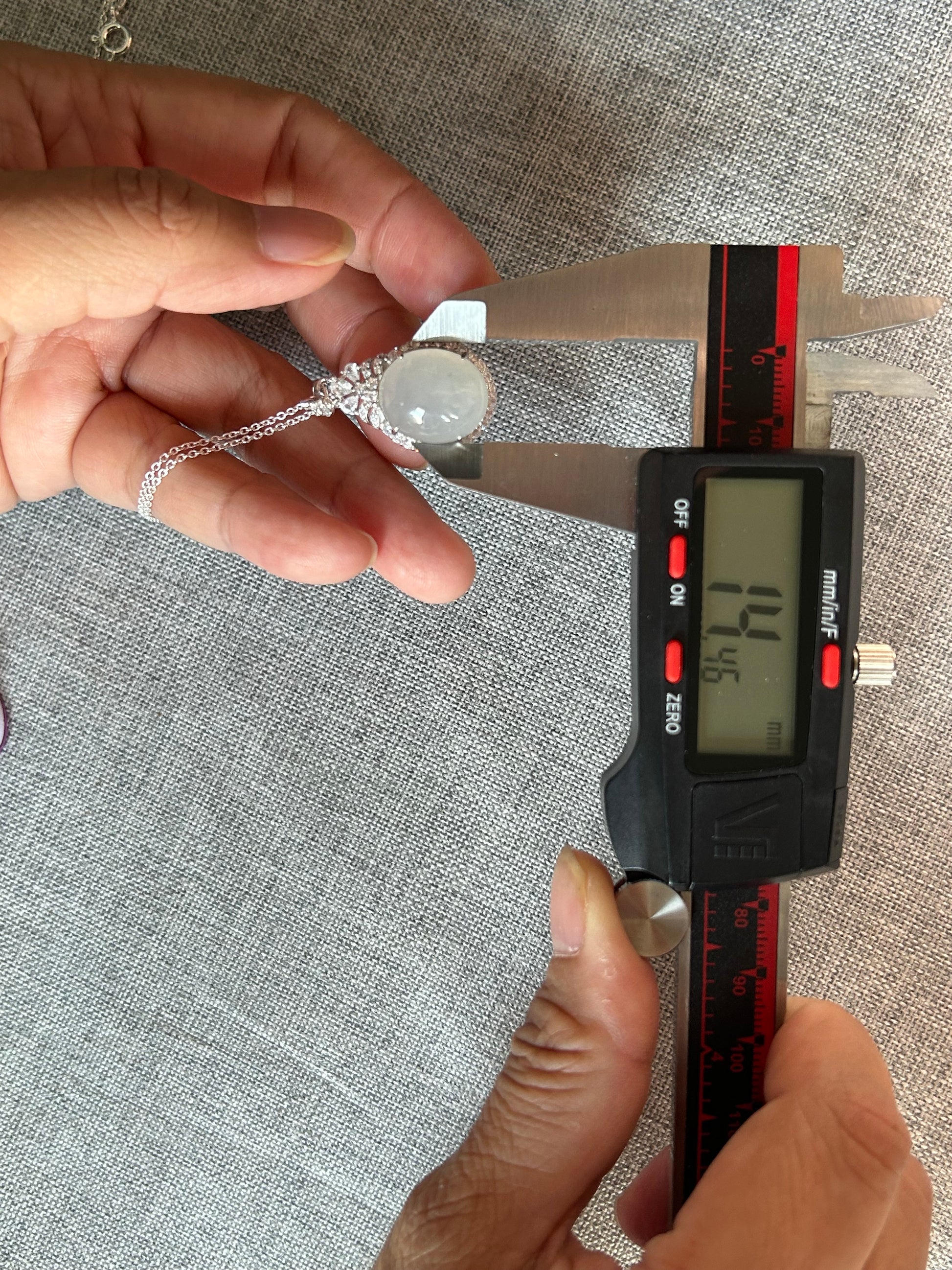 Grade A Natural White Burma Jadeite Cabochon pendant With Cubic Zirconia Silver necklace