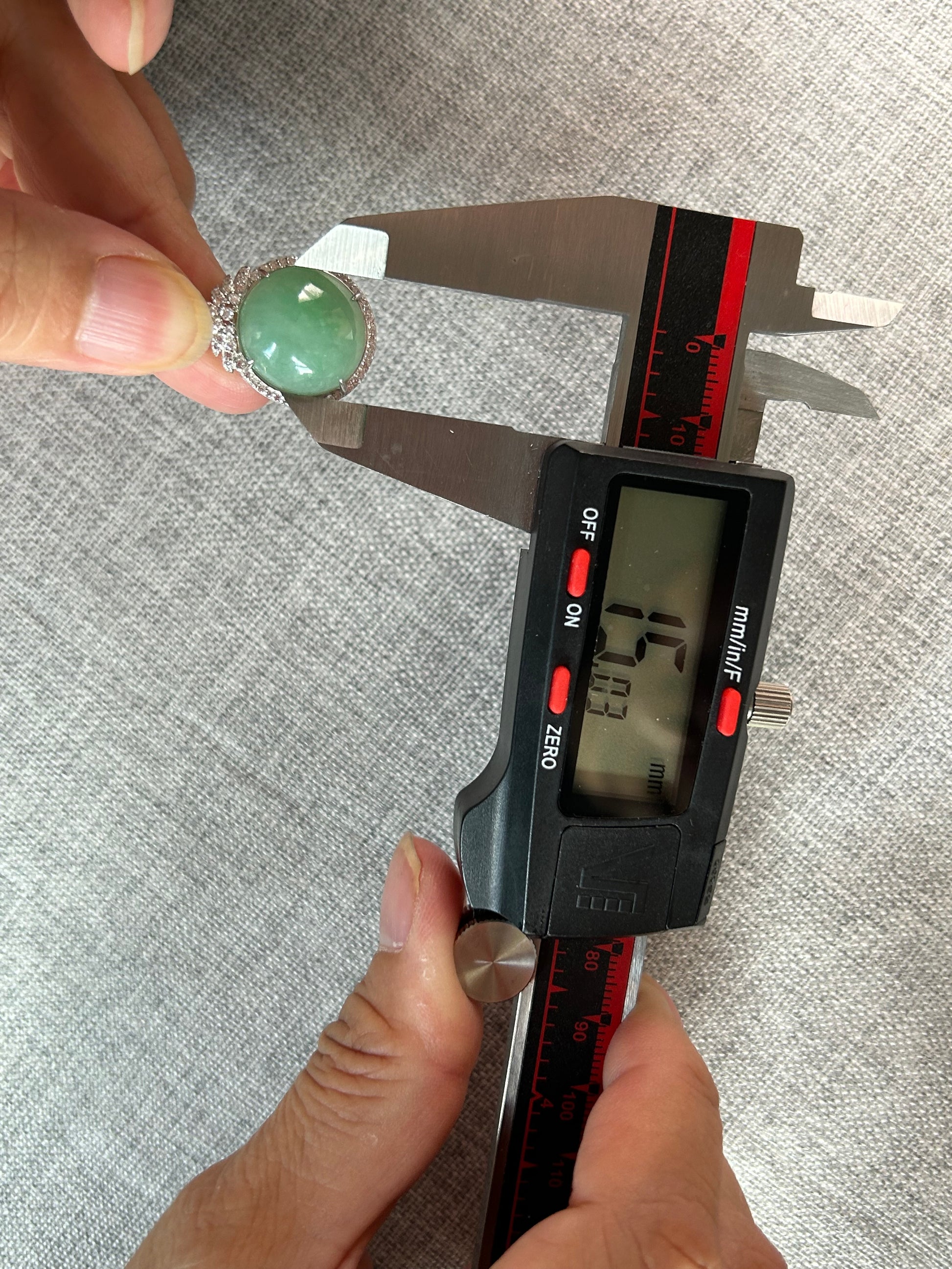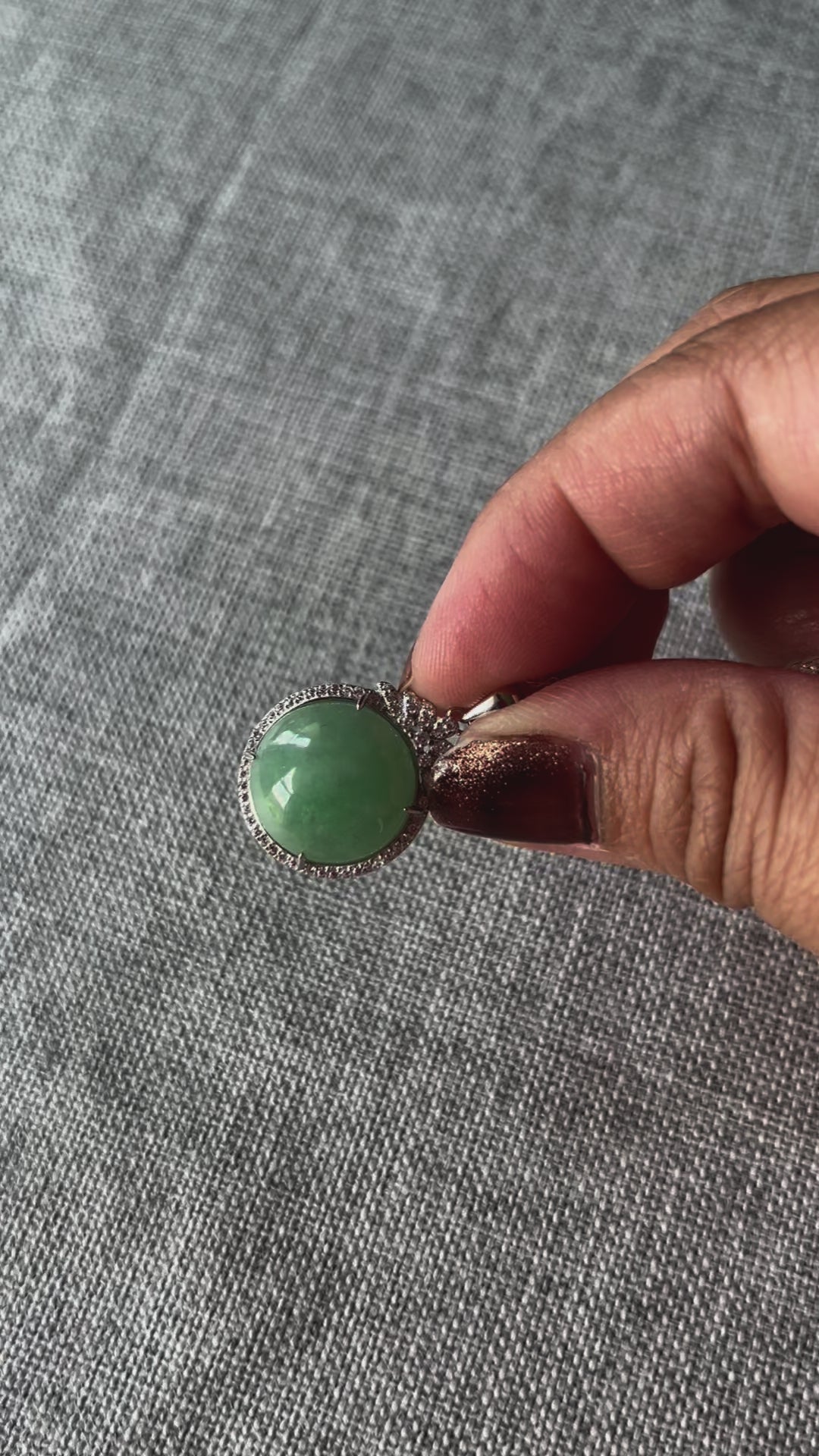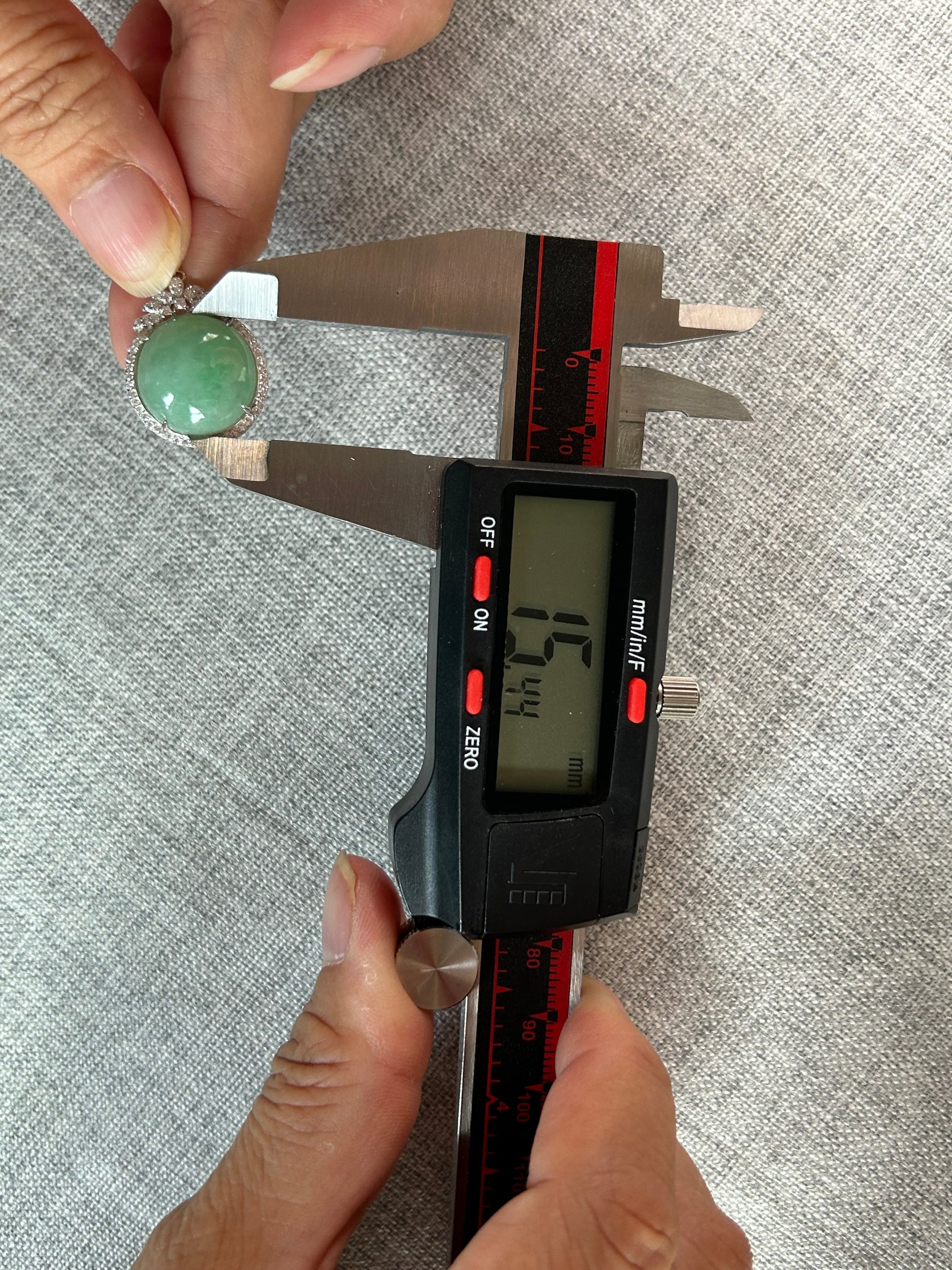 Grade A Natural Green Burma Jadeite Cabochon pendant With Cubic Zirconia Silver necklace