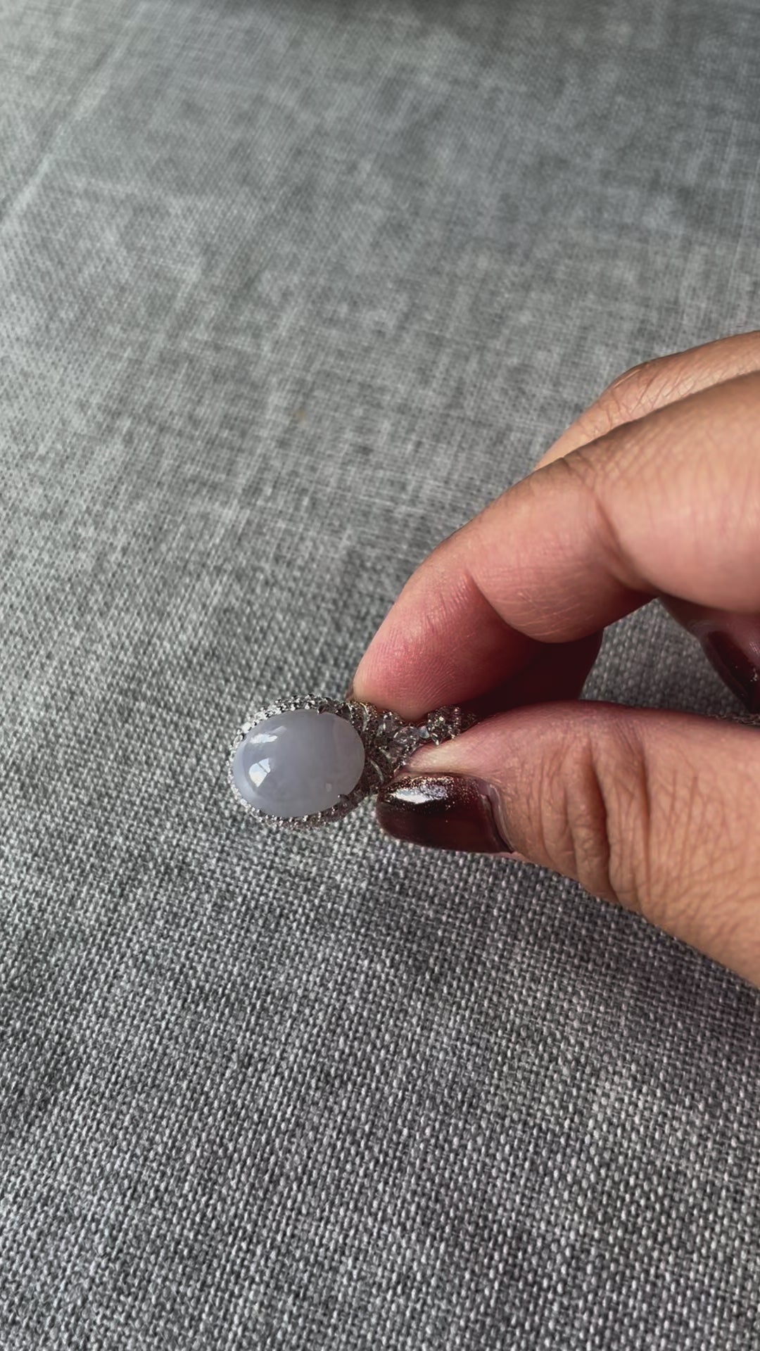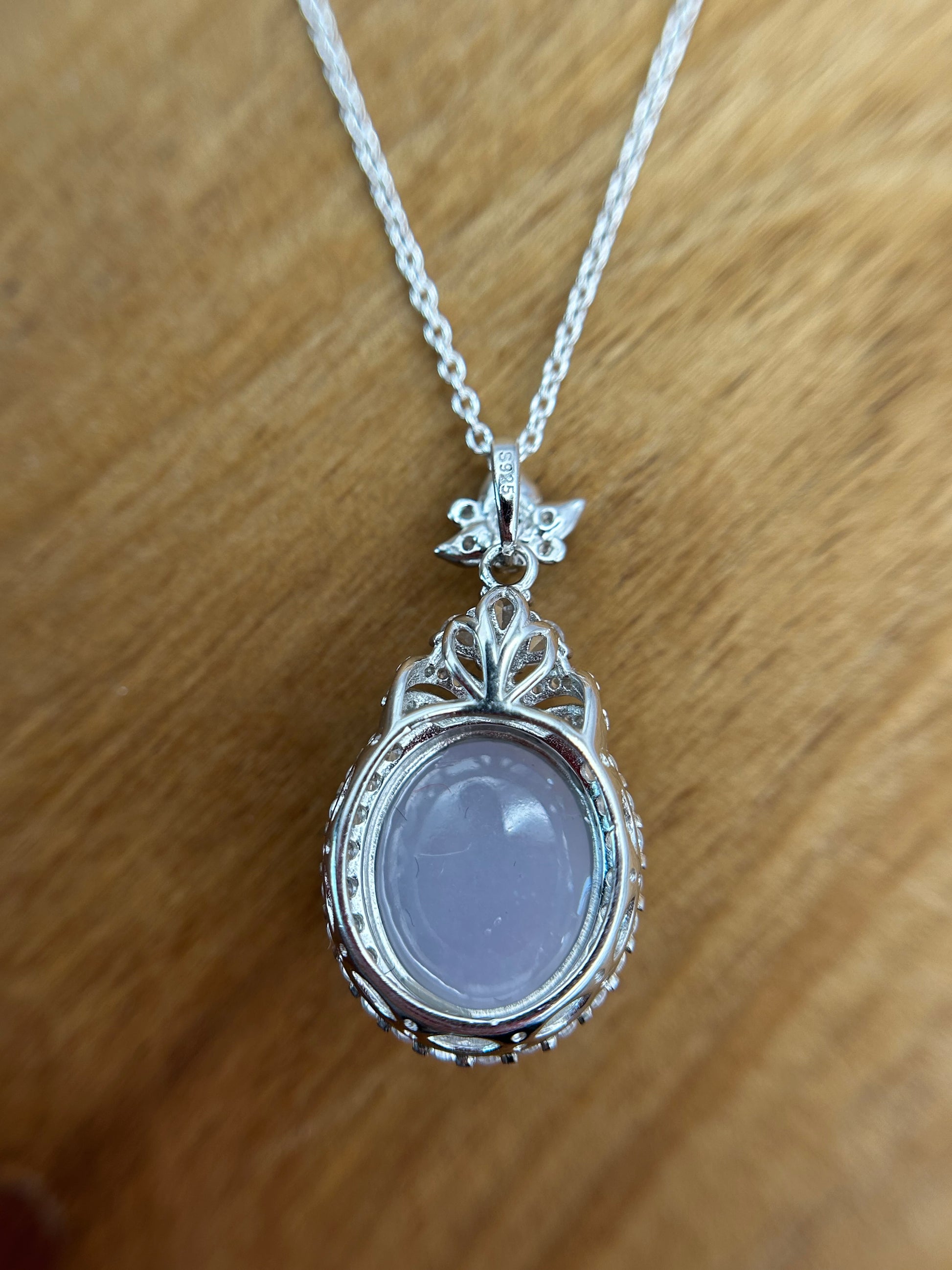 Grade A Natural lavender Burma Jadeite Cabochon pendant With Cubic Zirconia Silver necklace
