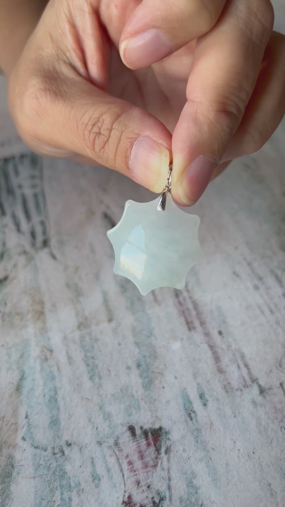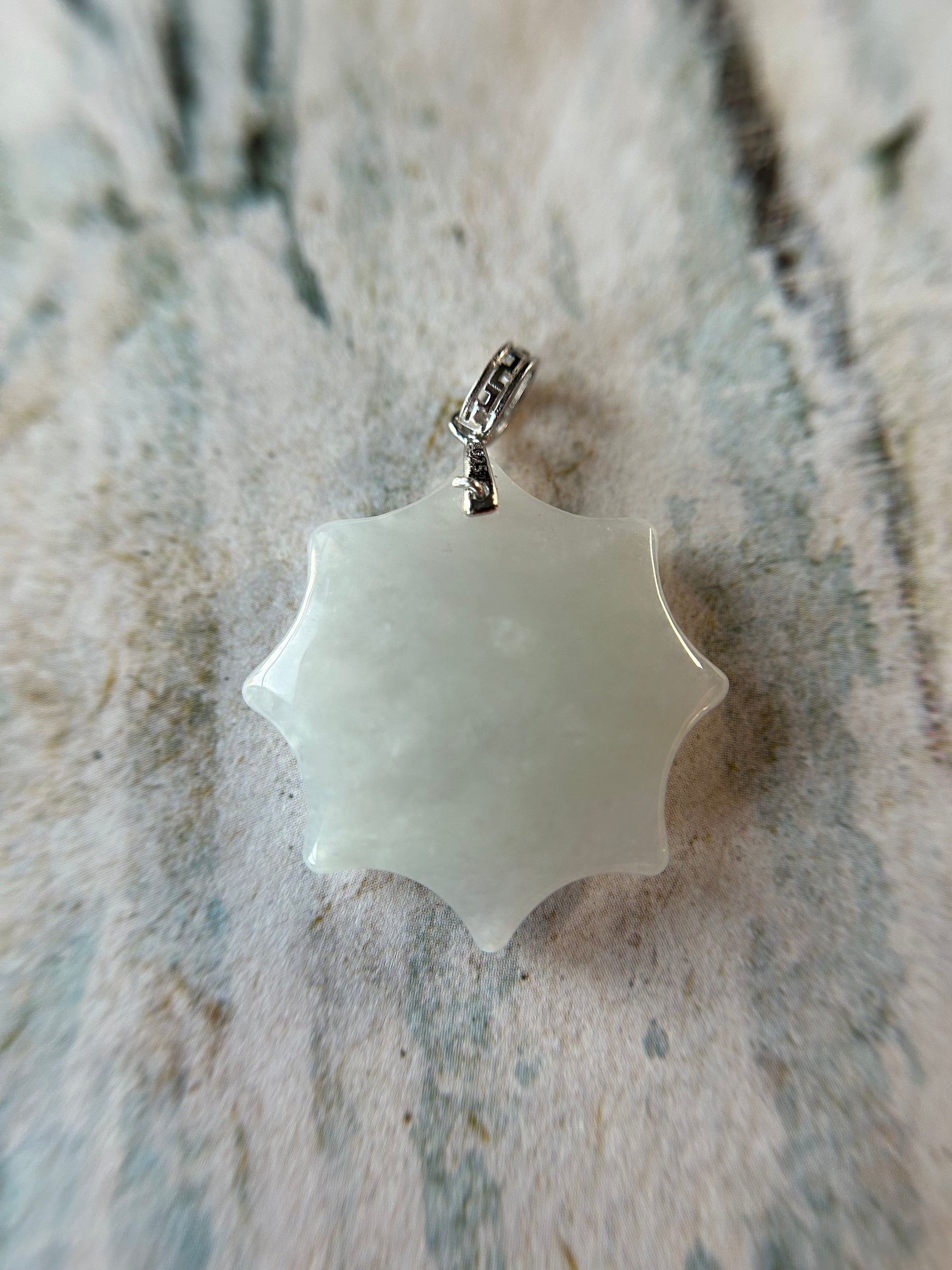 Grade A Natural White Burma Jadeite Star pendant With Silver bail Pendant