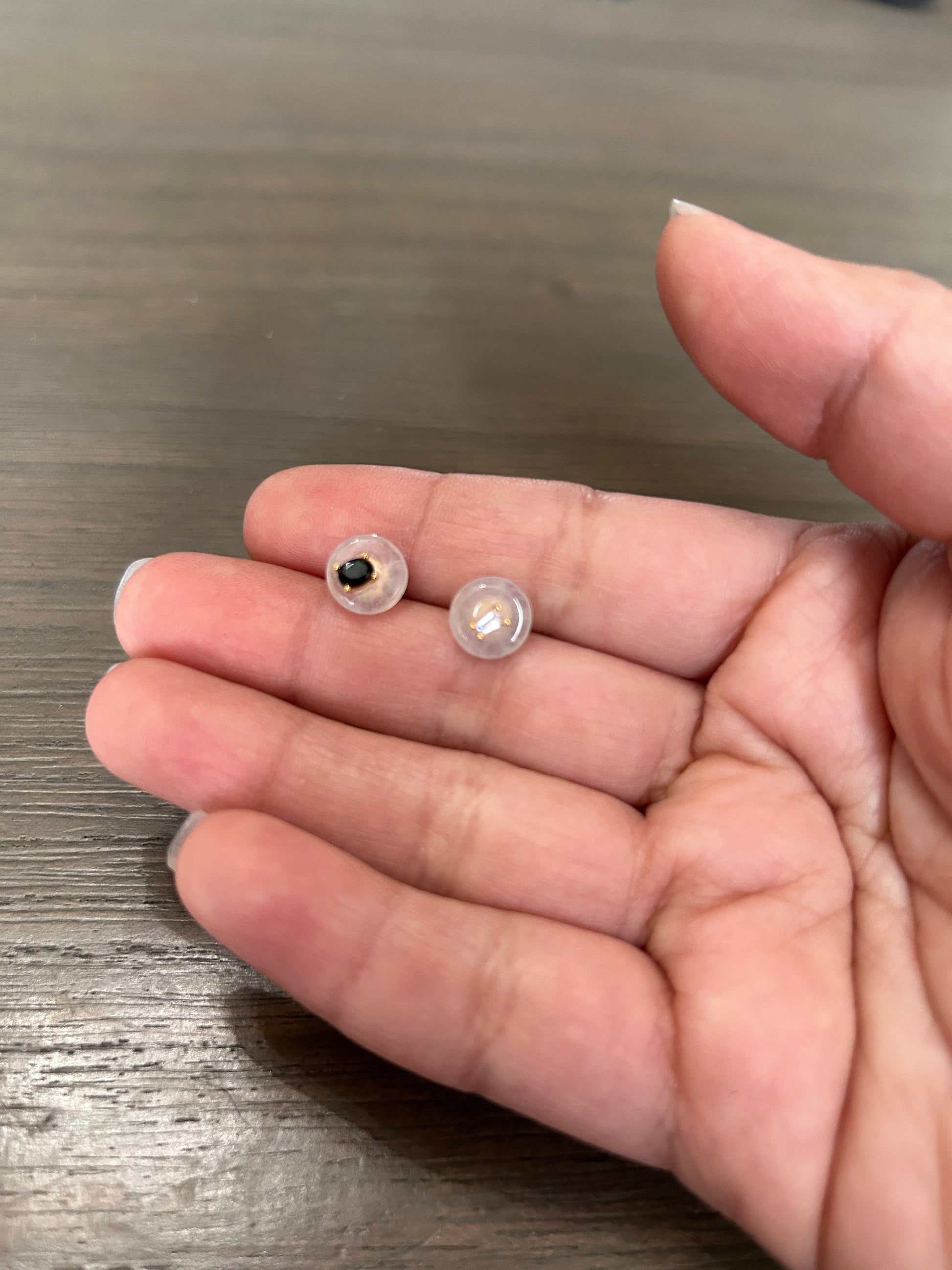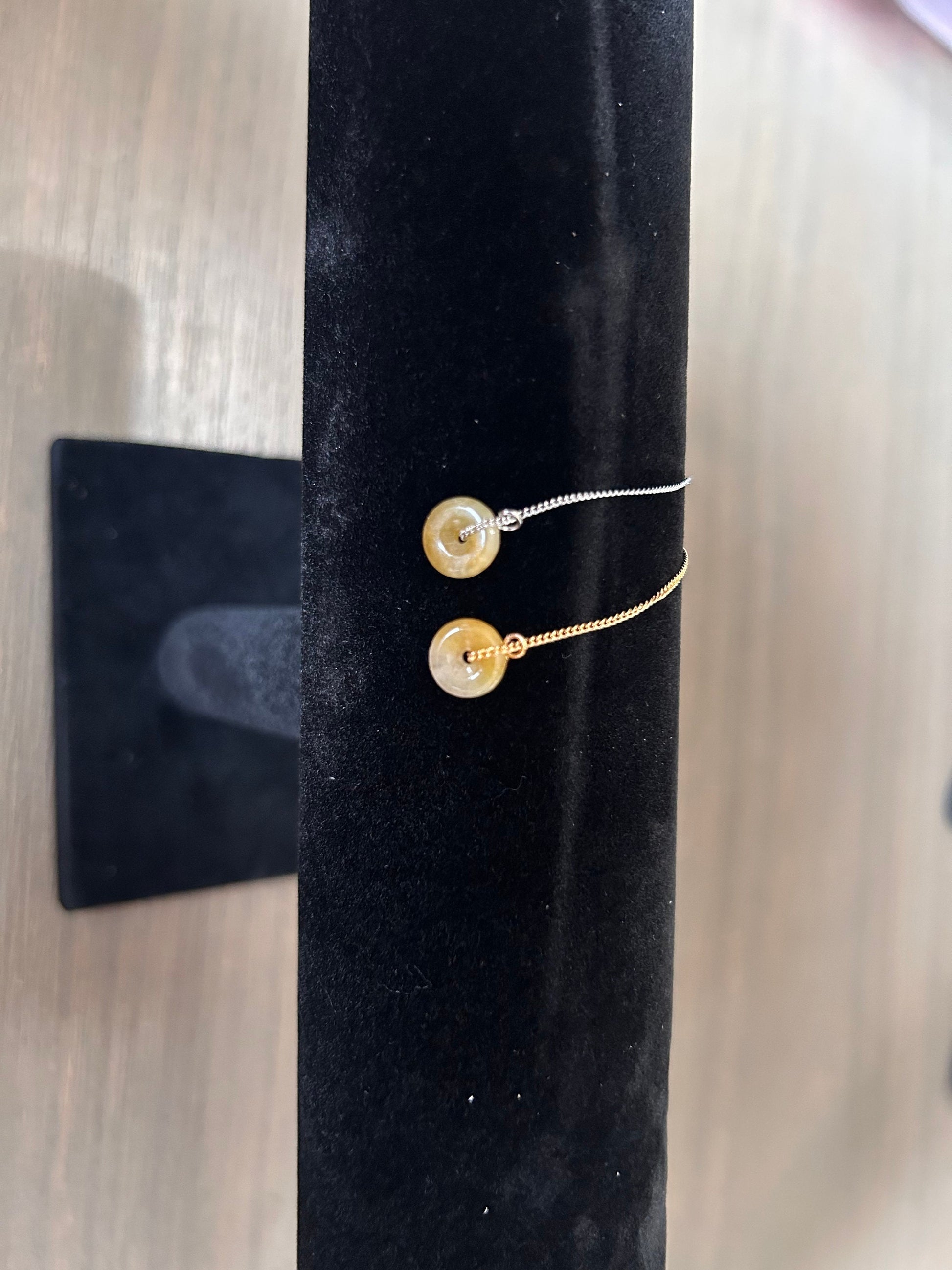 The icy yellow jadeite donut diameter is around 9mm. we have two options for the threat. Pick between a gold plated sterling silver threat, or a sterling silver threat.