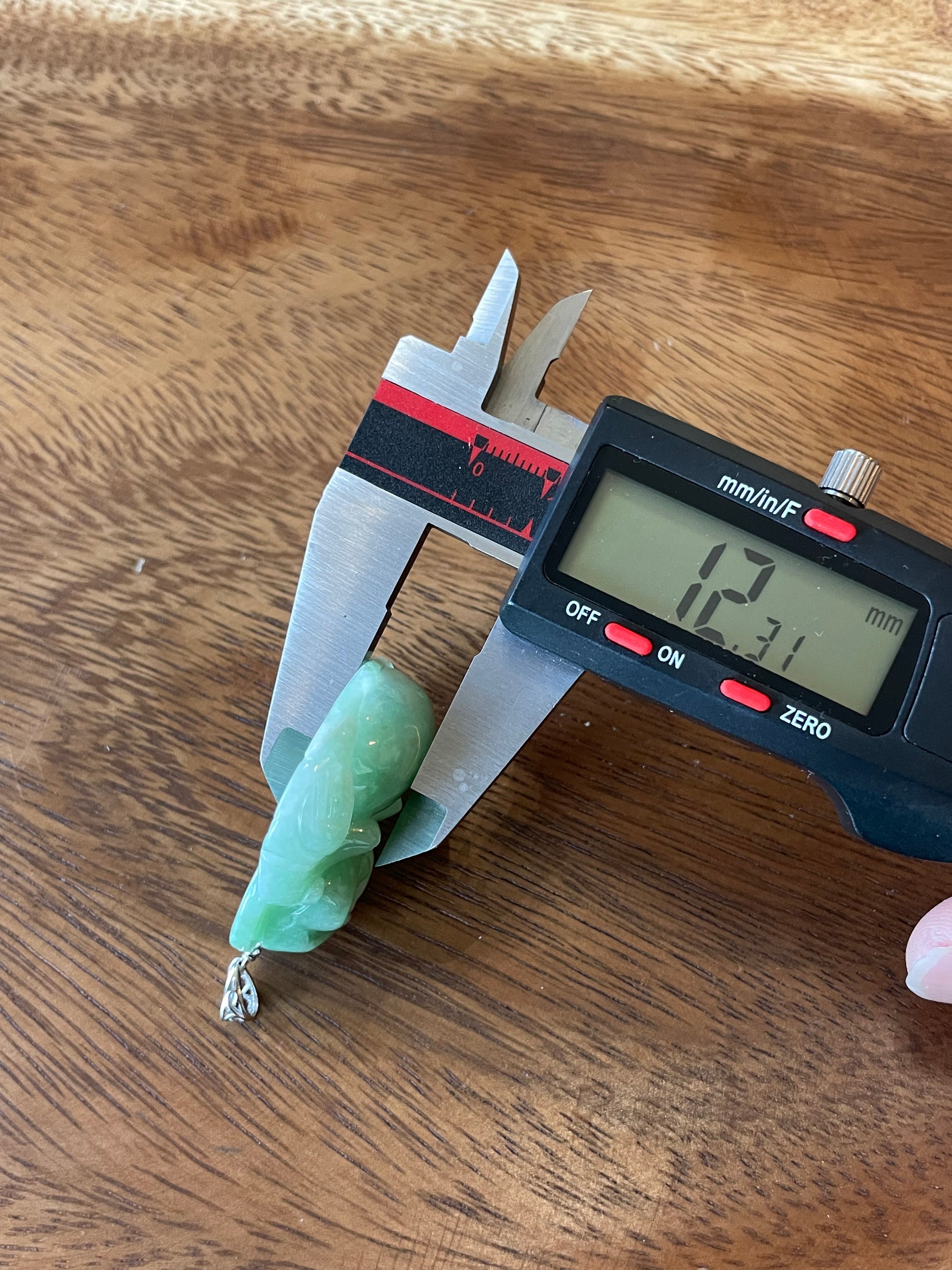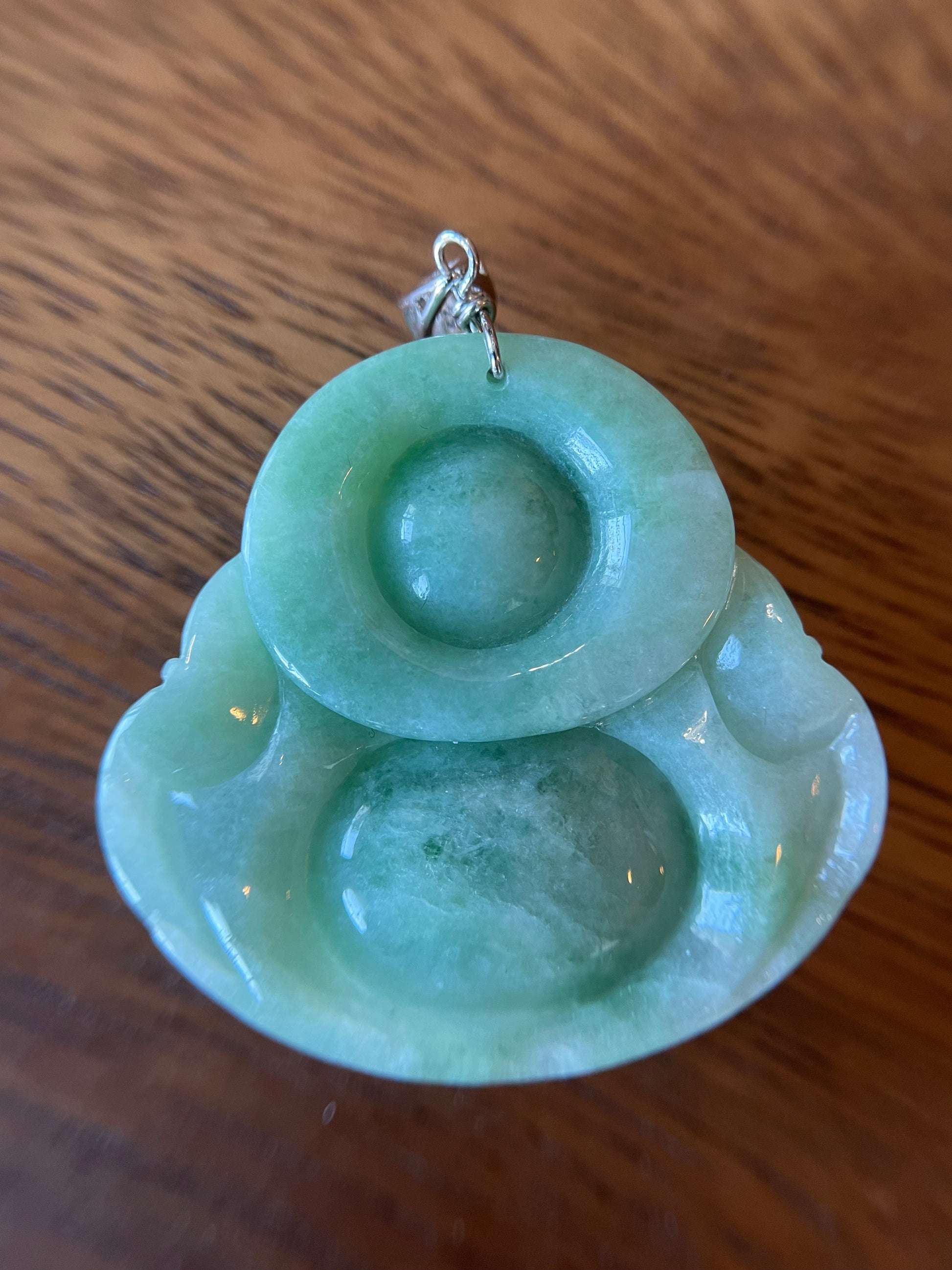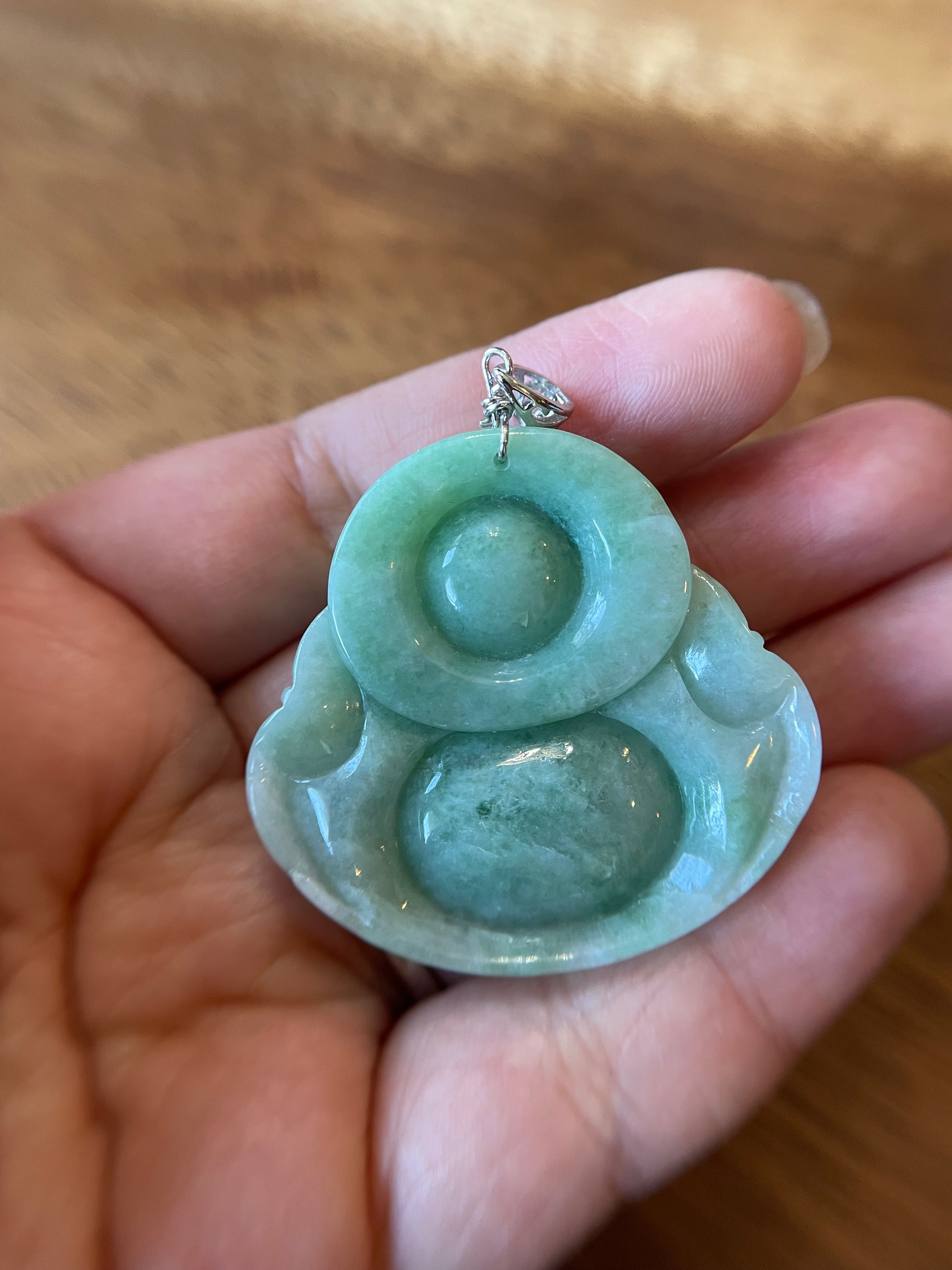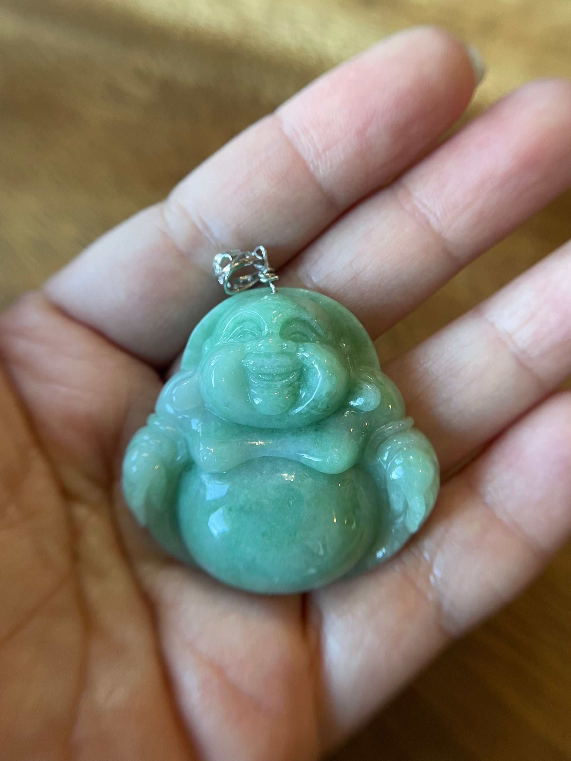Icy Green jadeite Buddha pendant with Sterling silver bail