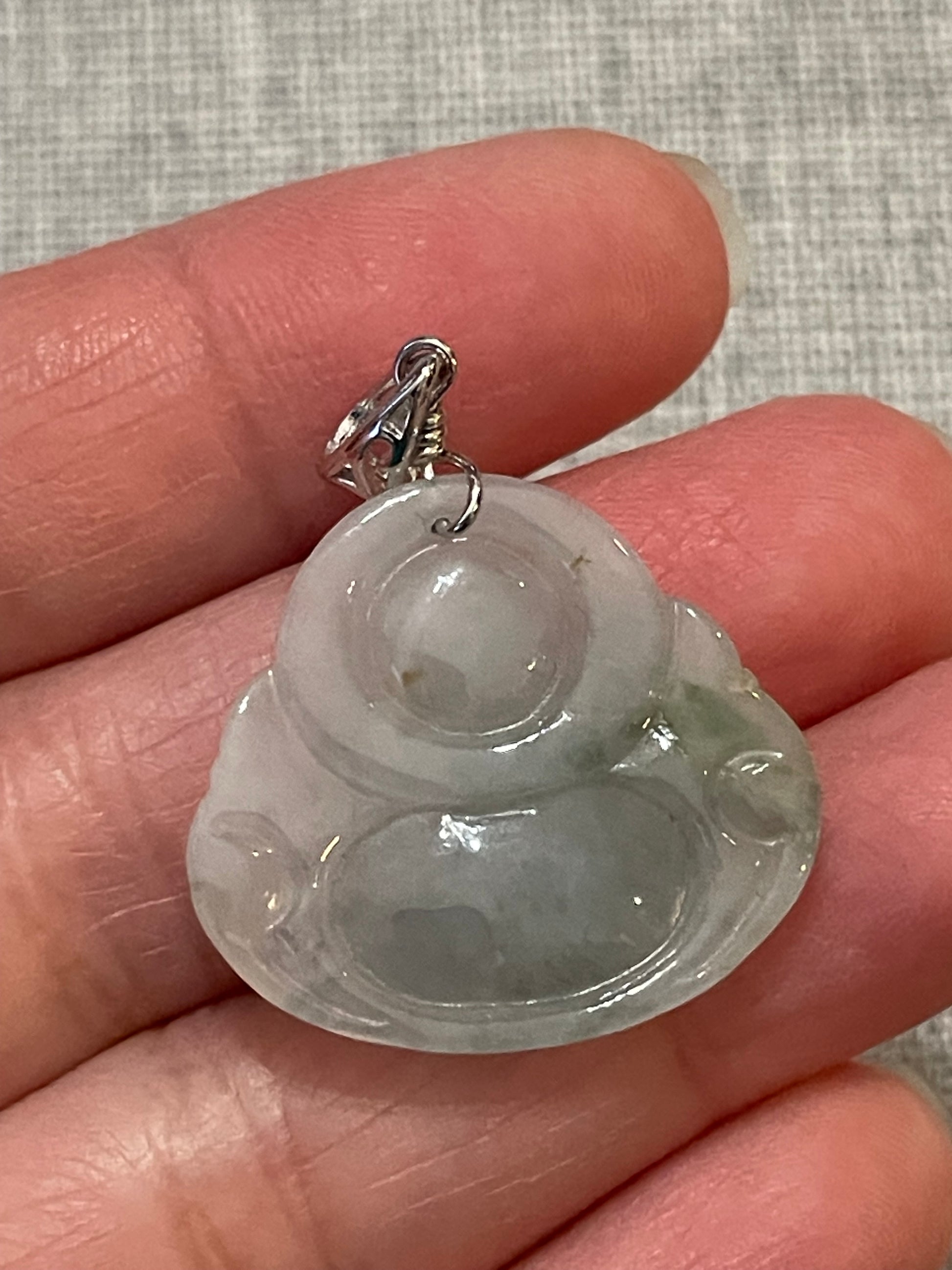 Icy Green jadeite Buddha pendant with Sterling silver bail