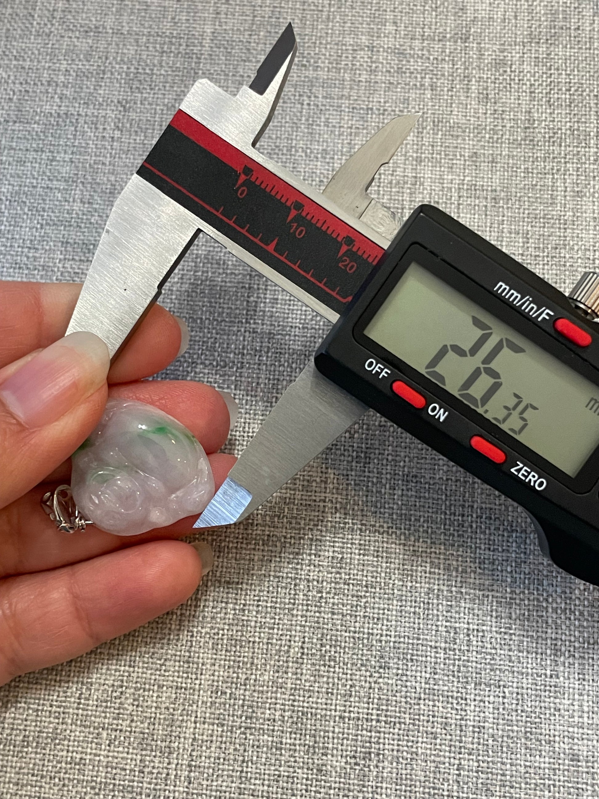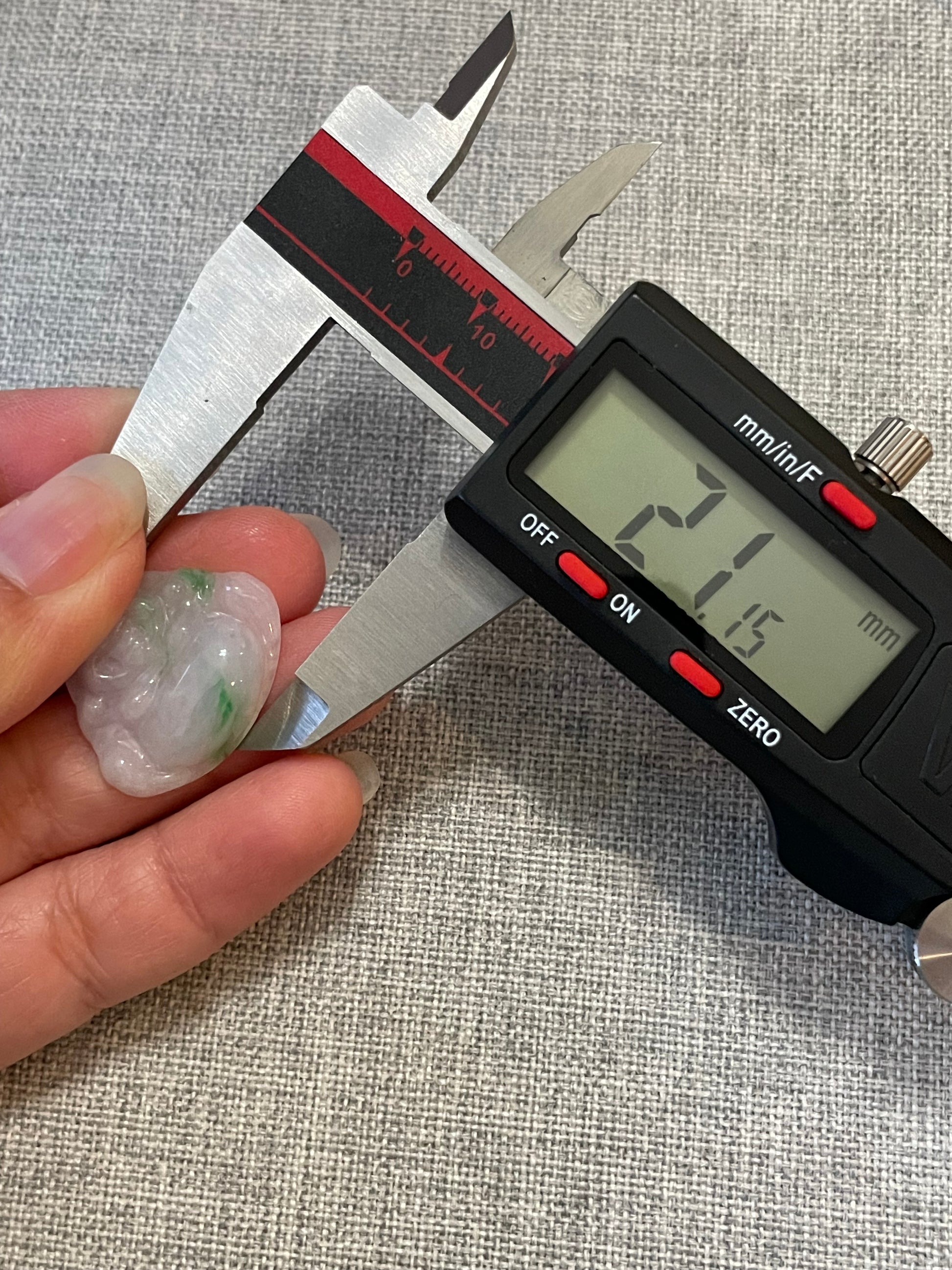 The jadeite pendant is an icy lavender buddha, it’s a very classic piece that can be worn casually and can be dress up. the piece is 21.05mm in height, 26.35mm in width and 6.06mm thick.