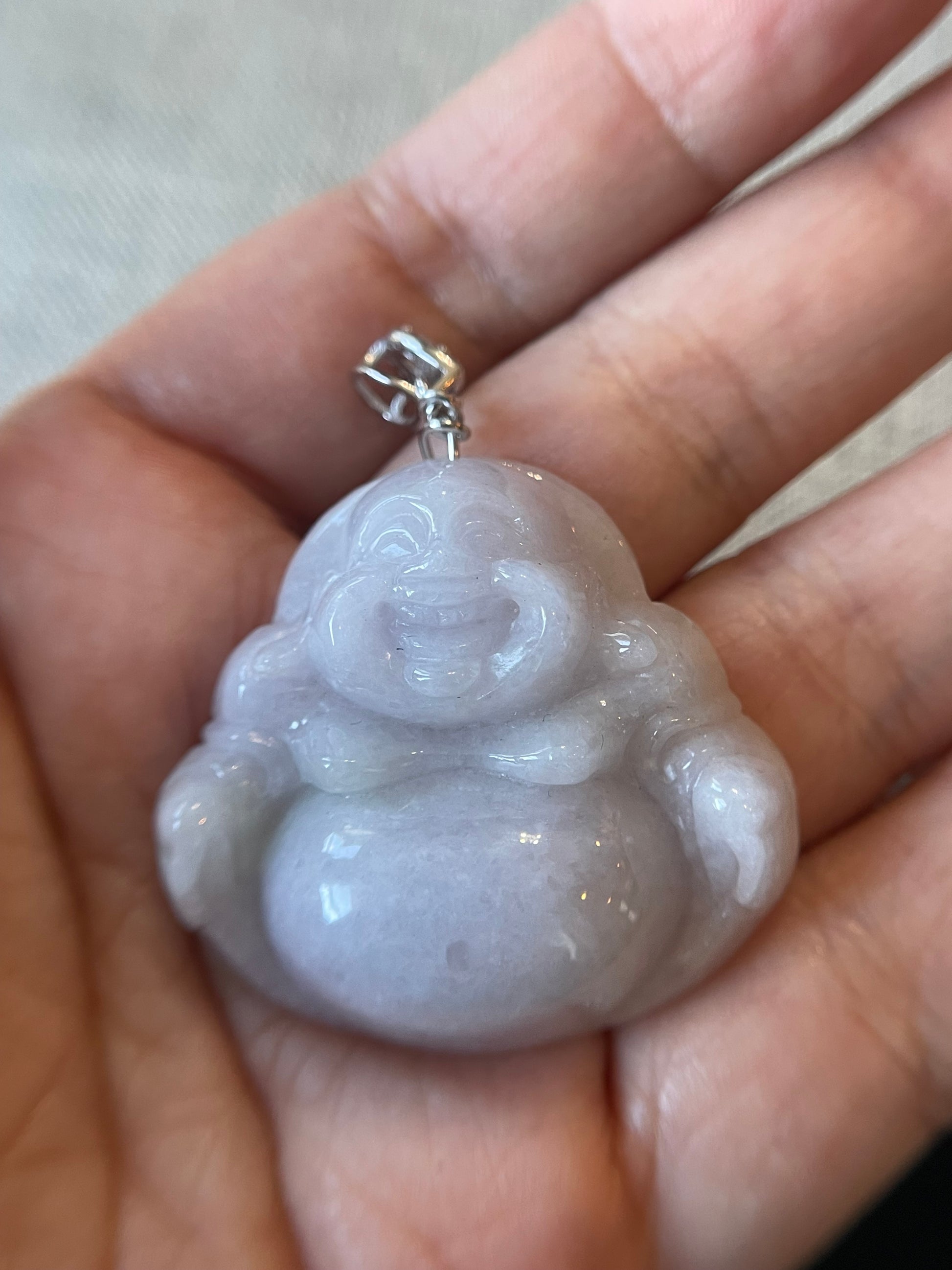 Icy Lavender jadeite Buddha pendant with Sterling silver bail necklace