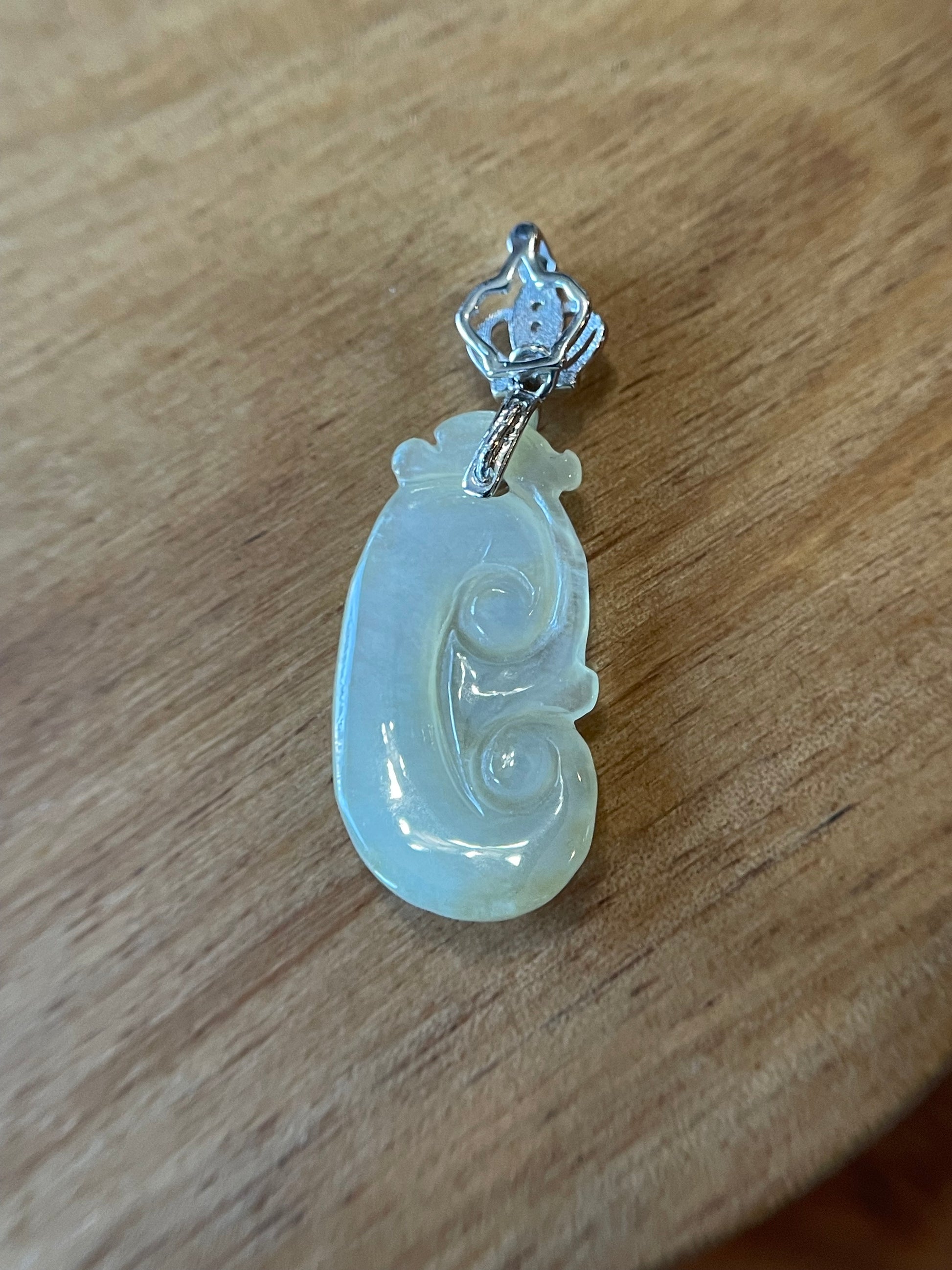 Natural Grade A Burma Jadeite Bail Glassy Light yellow Yuyi Pendant silver necklace