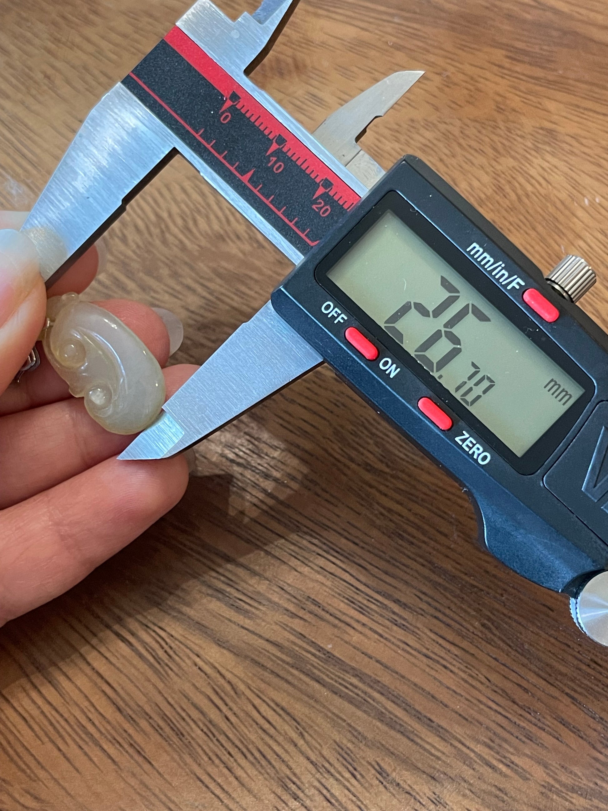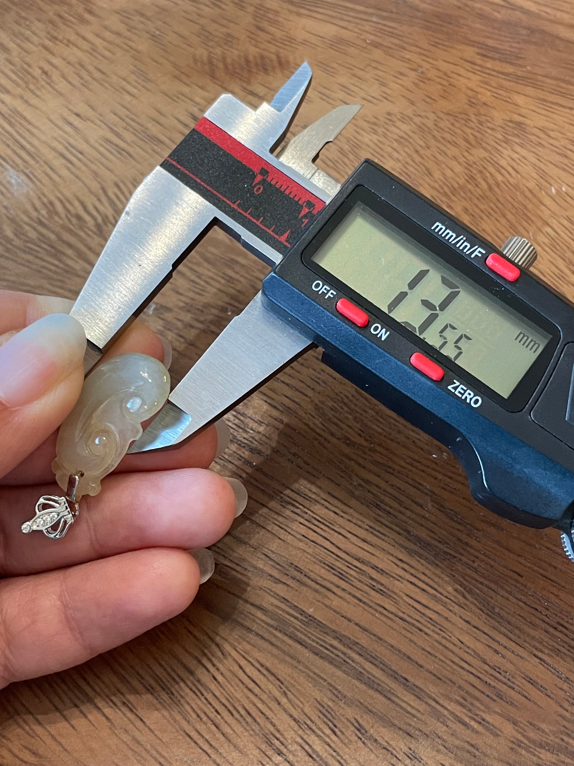 This pendant is translucent, and have some light blueish green color. It is hand carved on both sides. Height:26.7mm width:13.55mm thick:3.22mm.