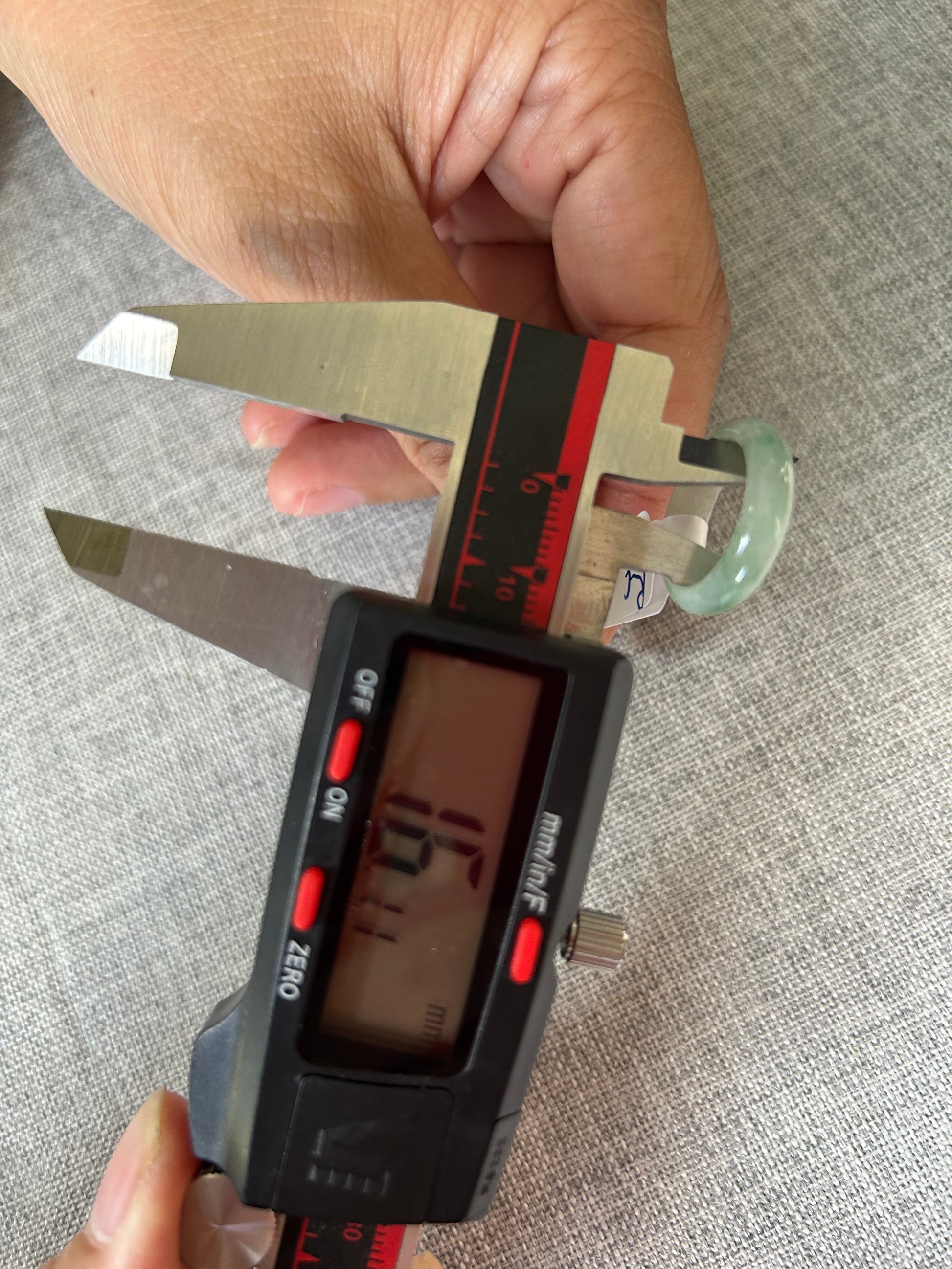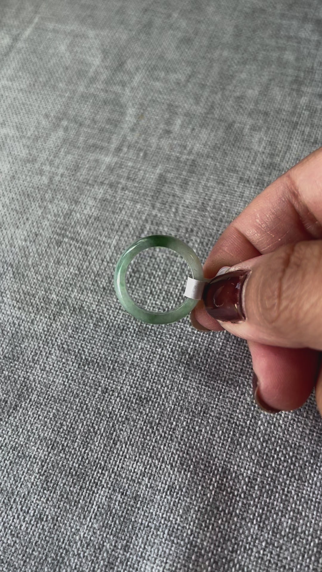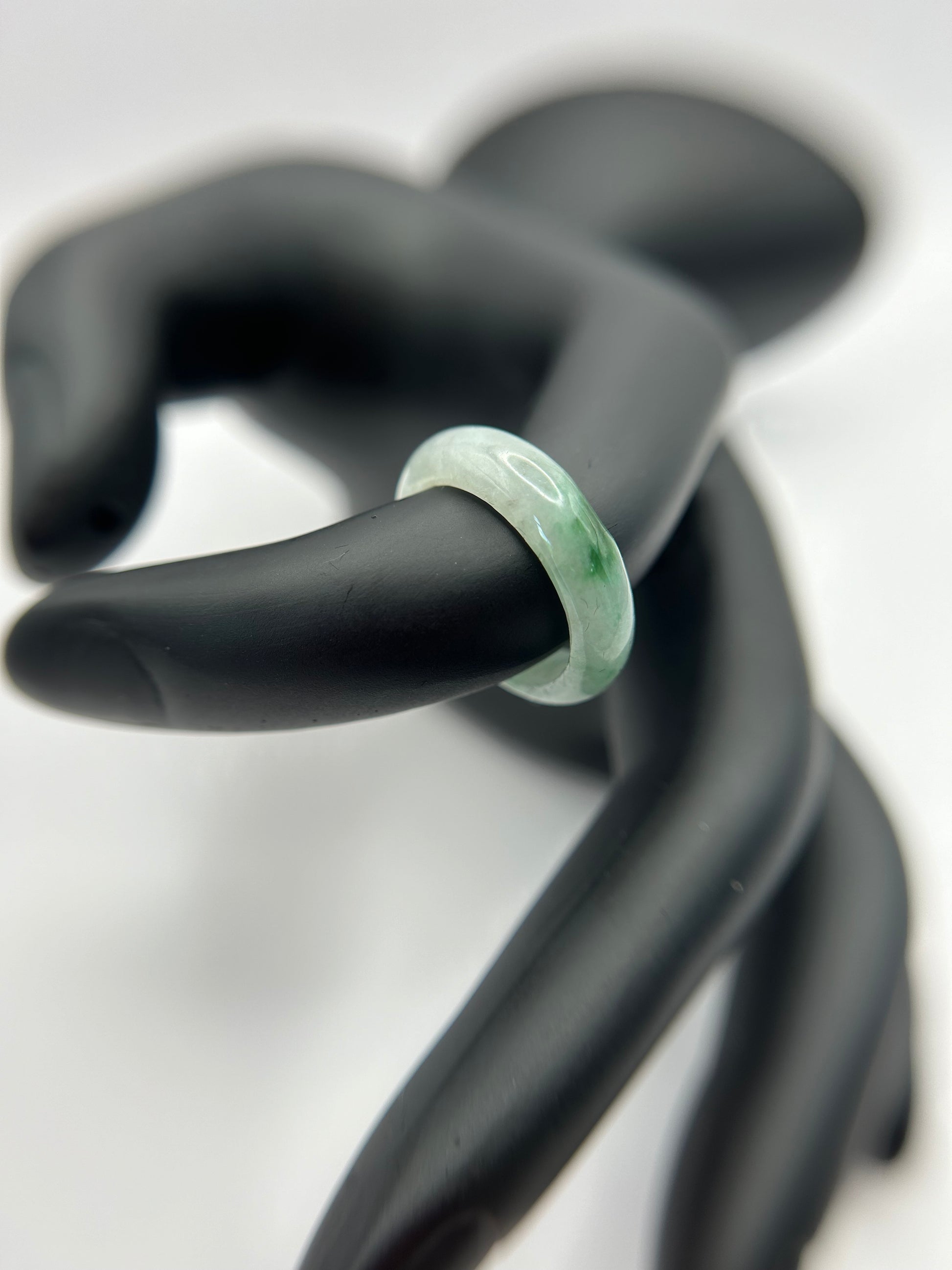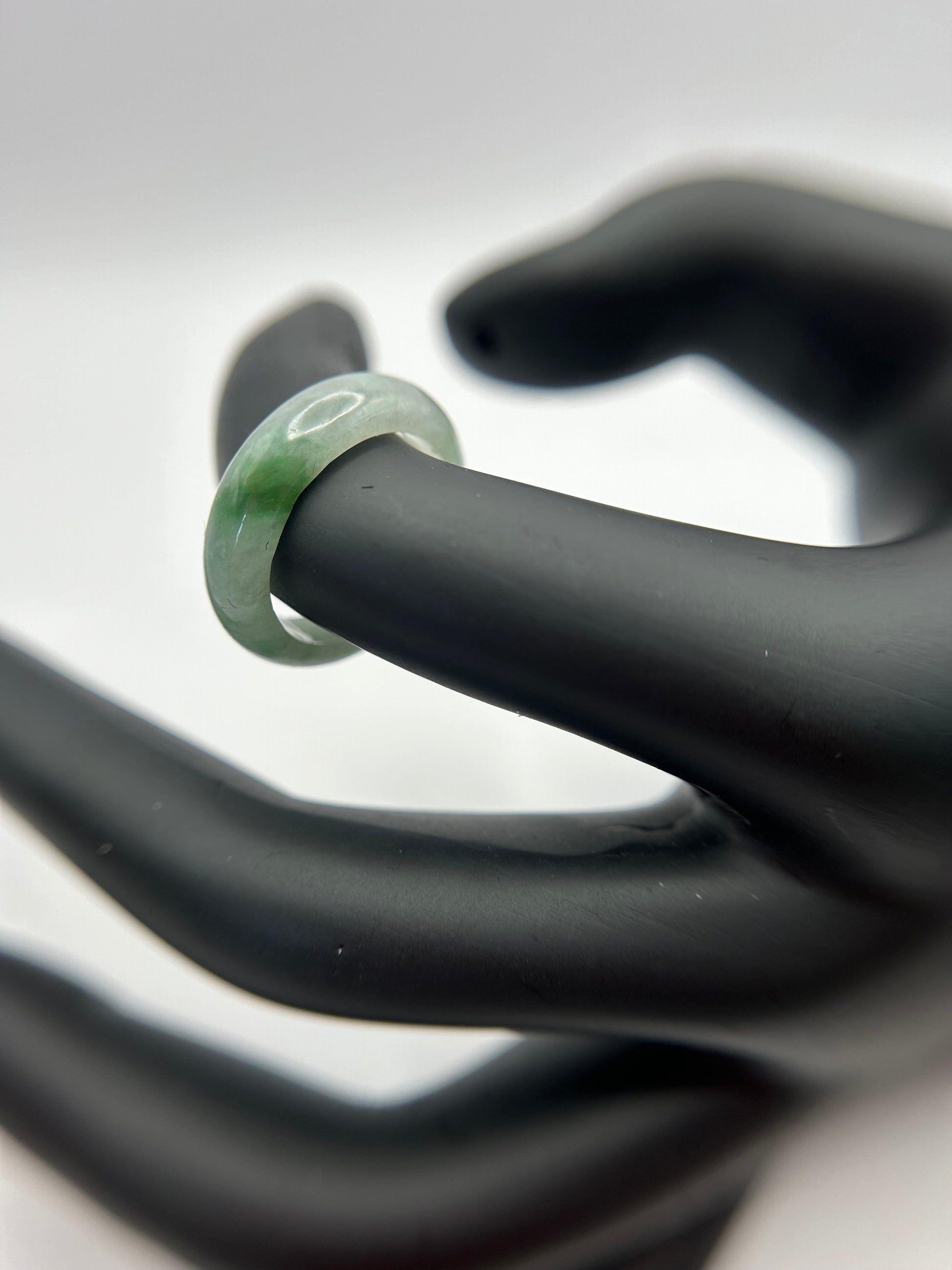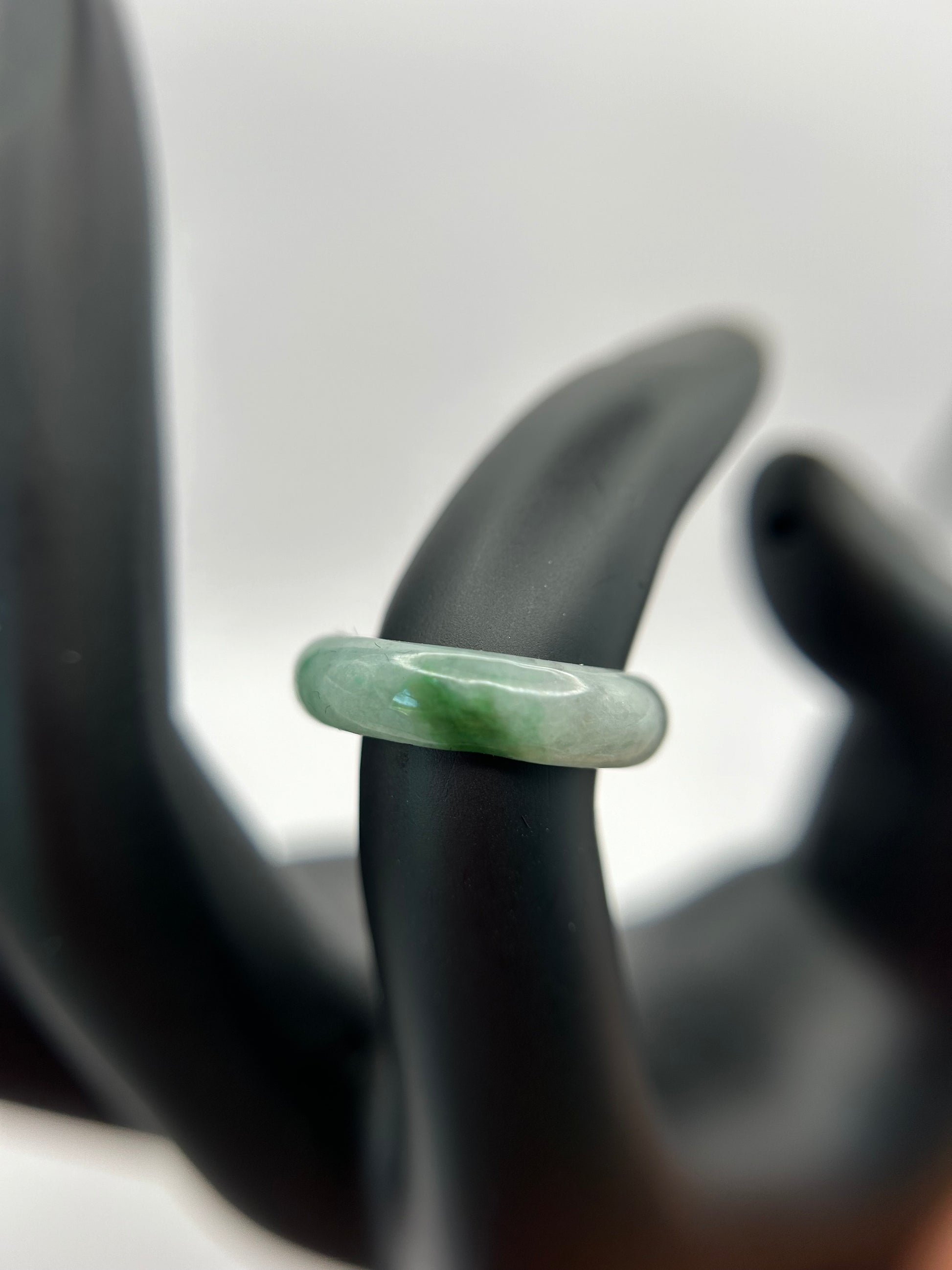 This natural grade A Burma Jadeite ring is green and white. with inner size 16.11mm, thick:2.71mm, height:4.99mm. US size:5.5