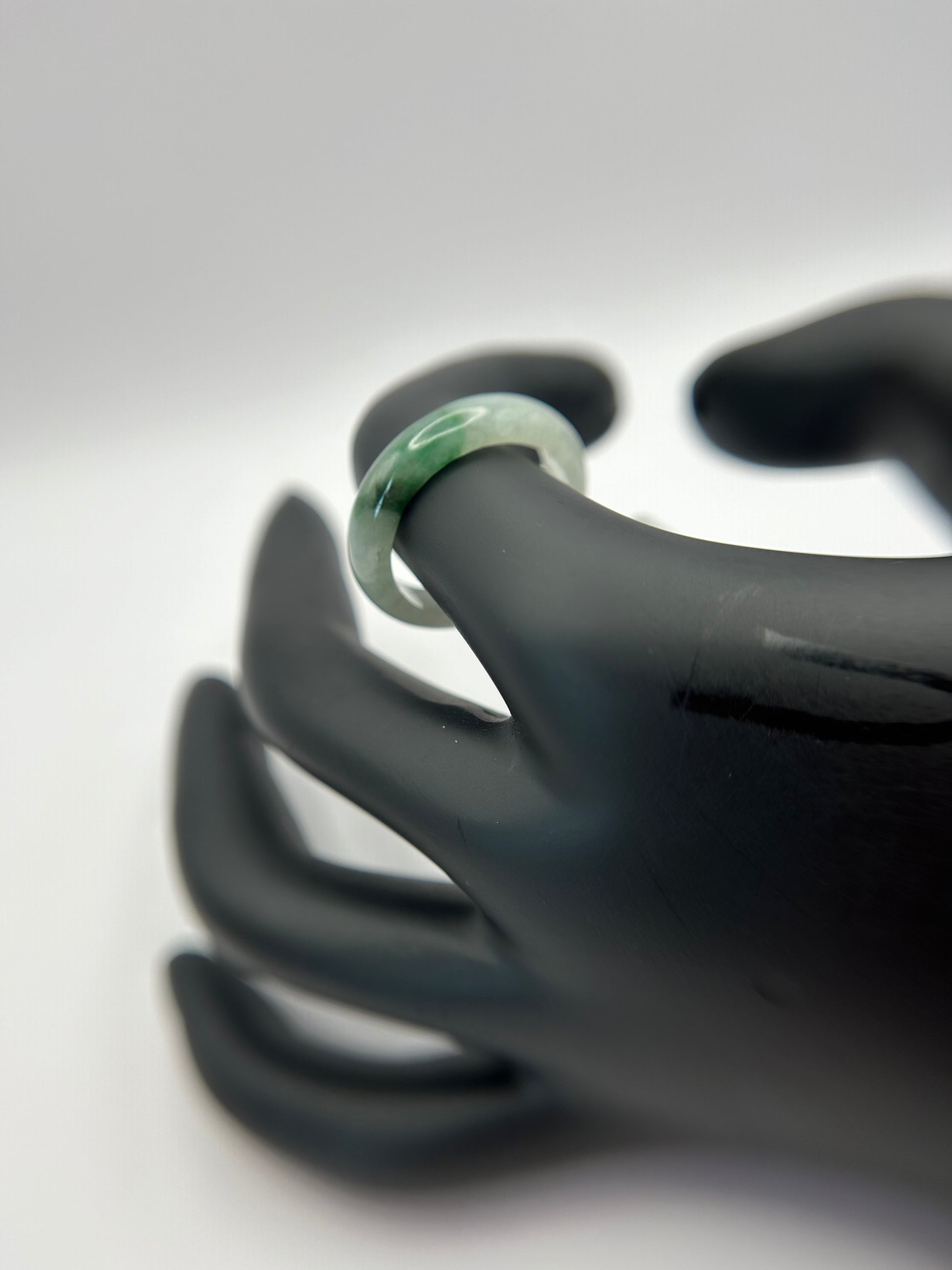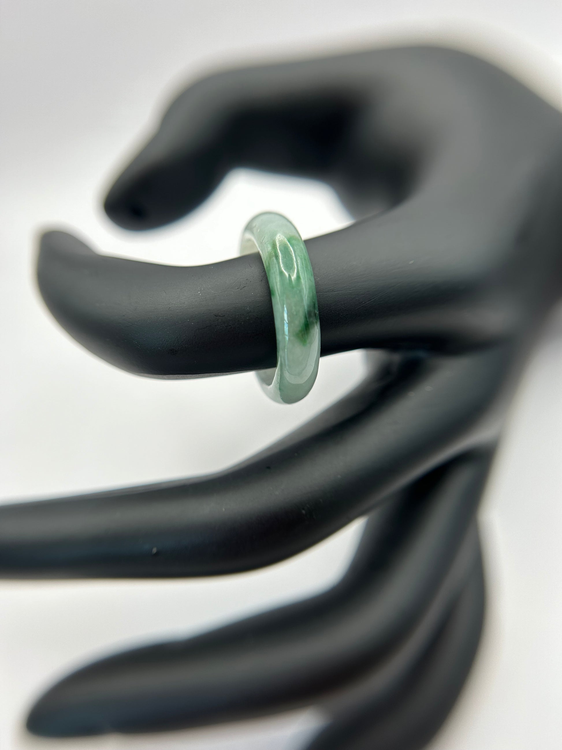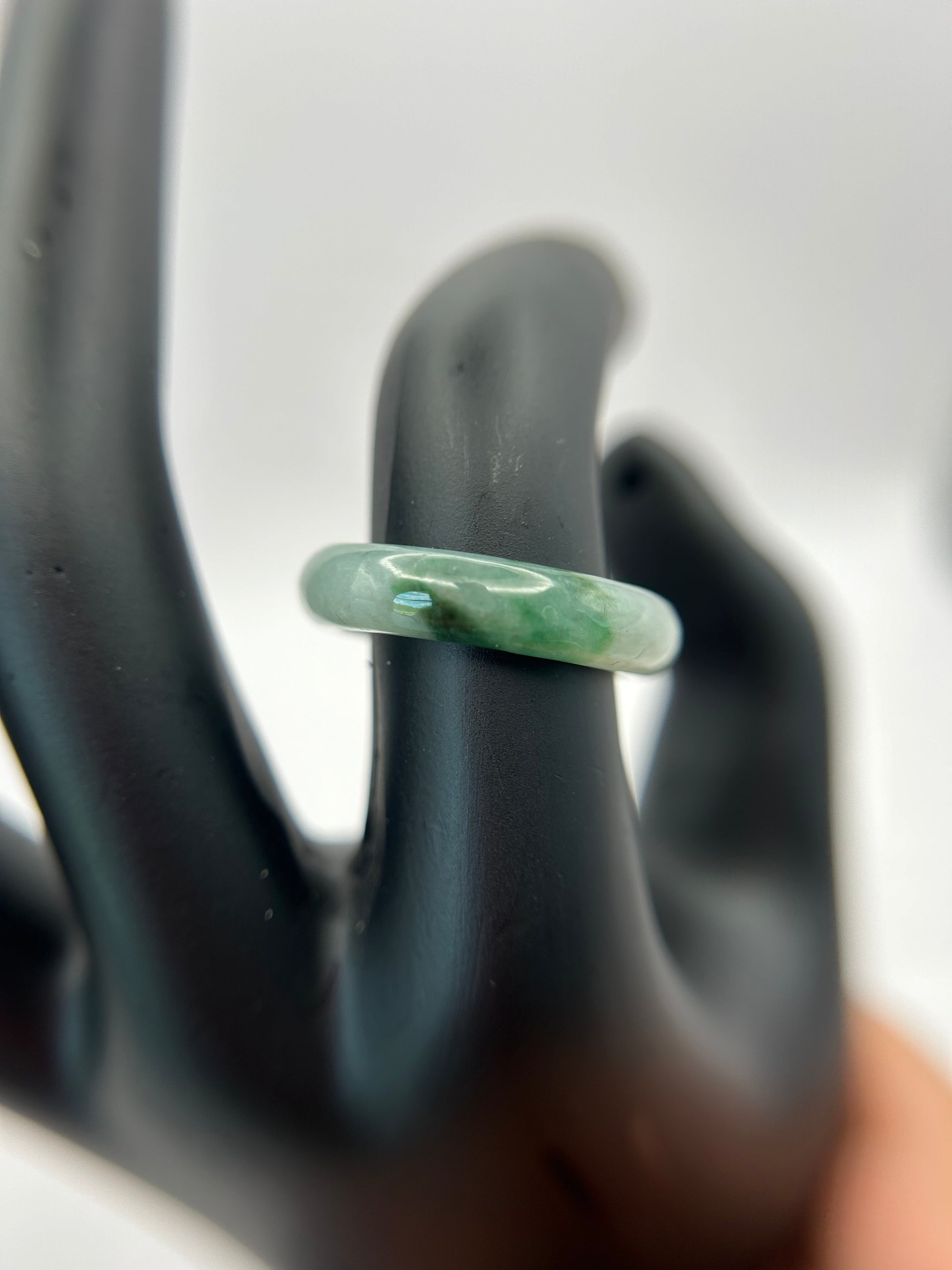 This natural grade A Burma Jadeite ring is green and white. with inner size 18.16mm, thick:2.96mm, height:5.11mm