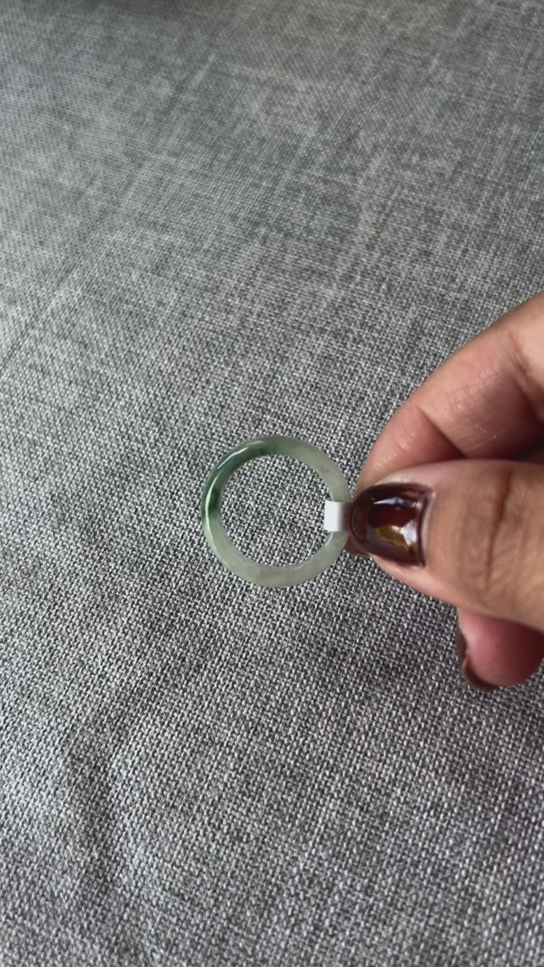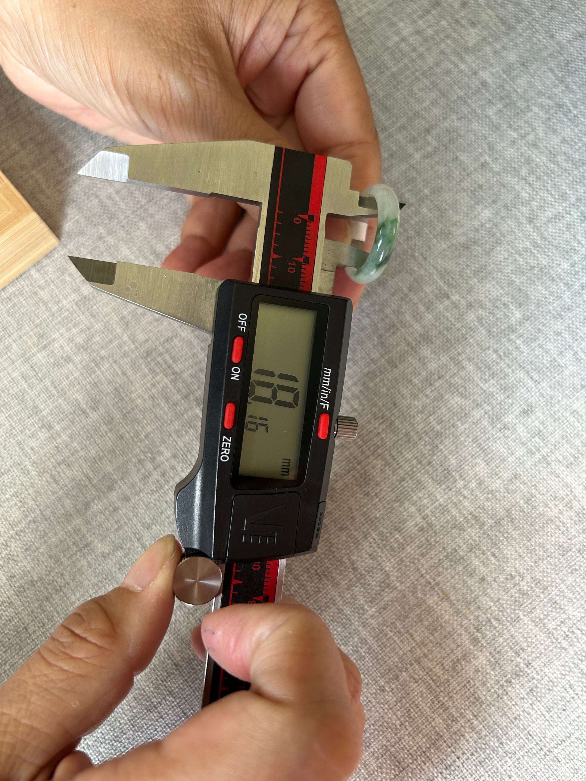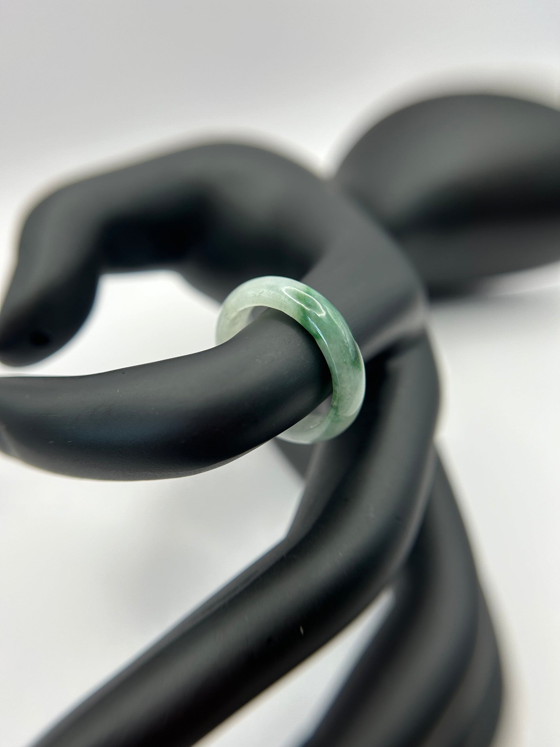 This natural grade A Burma Jadeite ring is green and white. with inner size 18.16mm, thick:2.96mm, height:5.11mm