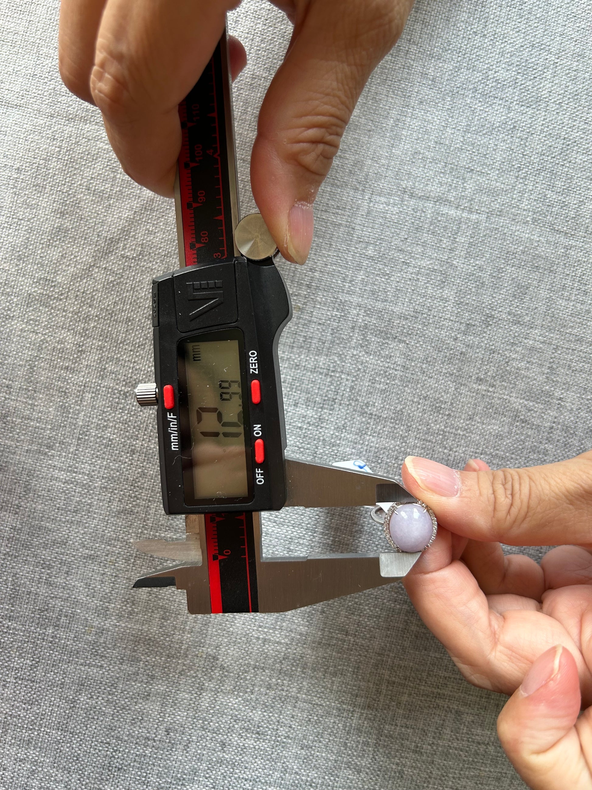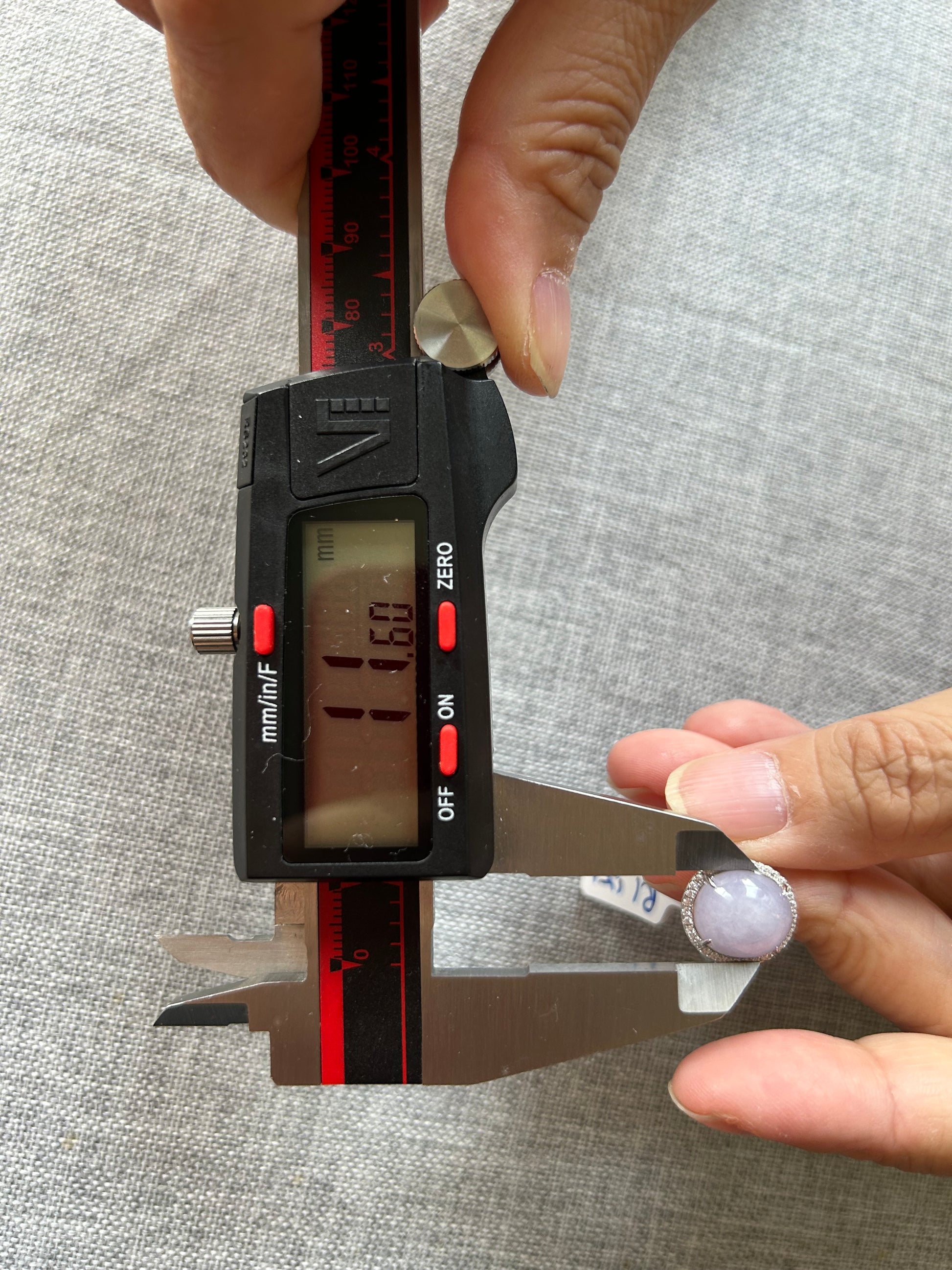 This is a Grade A Burma lavender cabochon jadeite with Cubic Zirconia sterling silver adjustable ring. The jadeite cabochon size is 12.99X 11.6mm