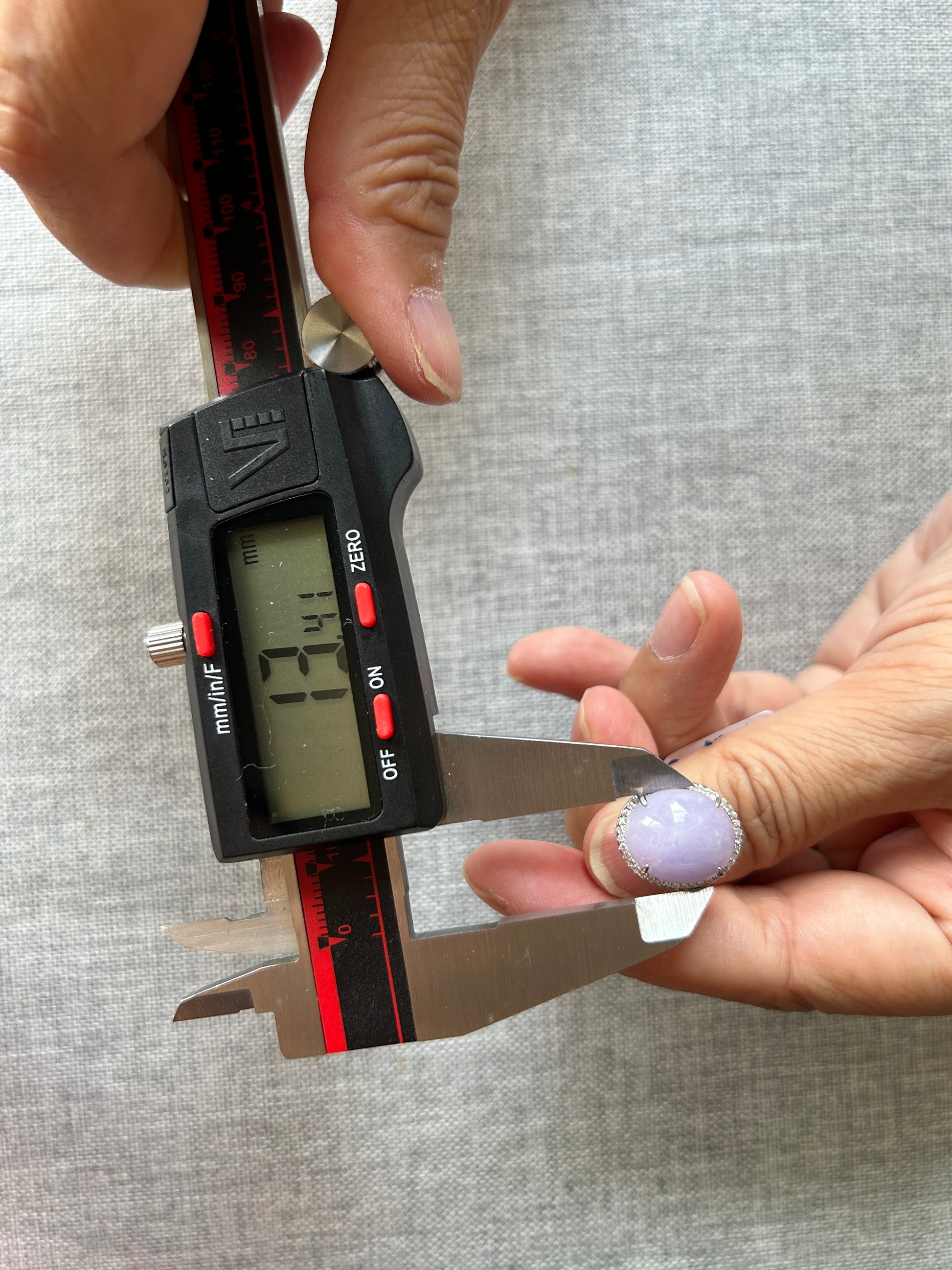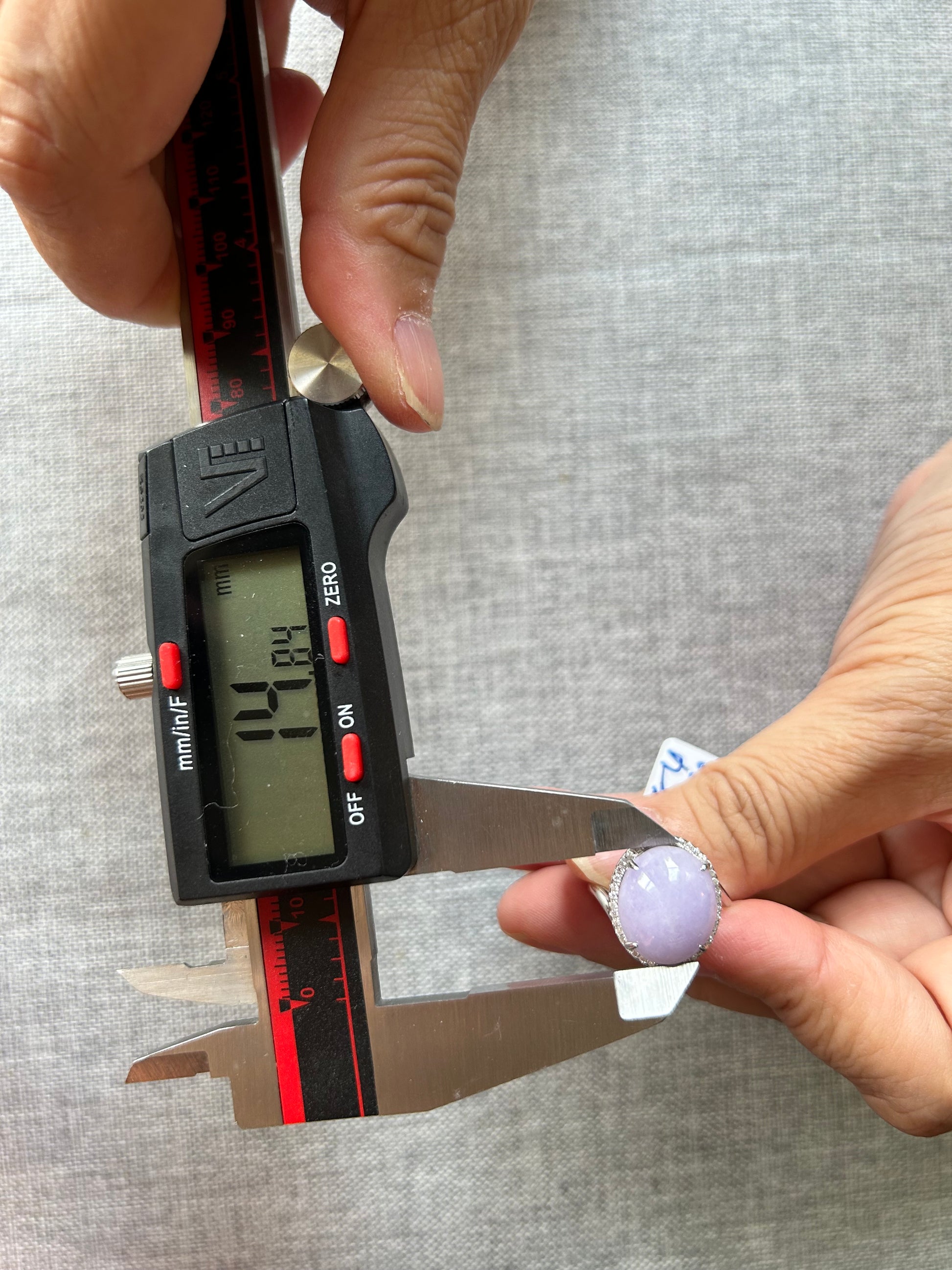 This is a Grade A Burma lavender cabochon jadeite with Cubic Zirconia sterling silver adjustable ring. The jadeite cabochon size is 14.84X 13.41mm