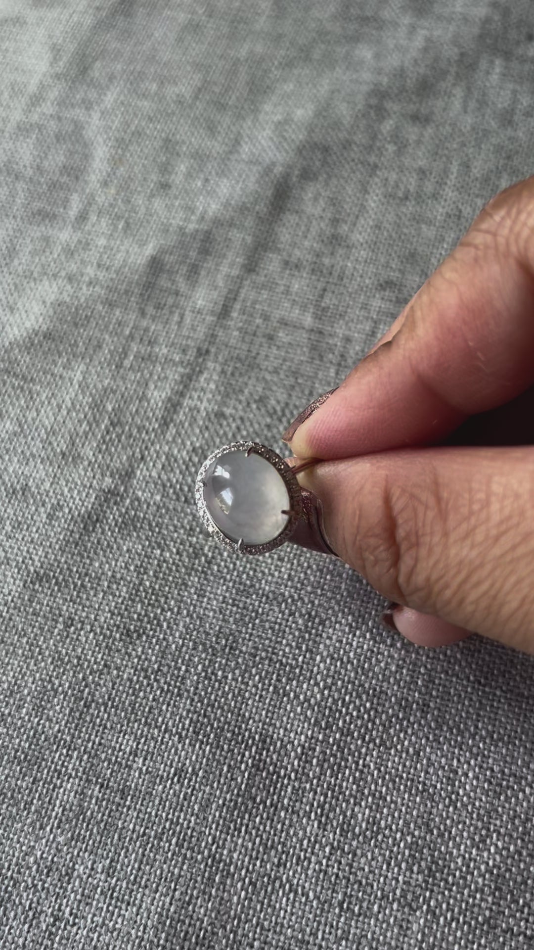 Natural grade A Burmese Lavender Jadeite cabochon with Cubic Zirconia Silver Ring