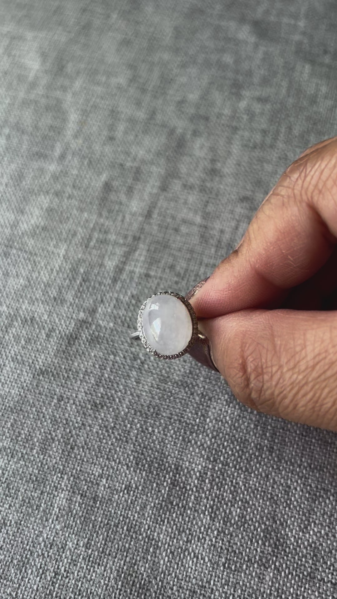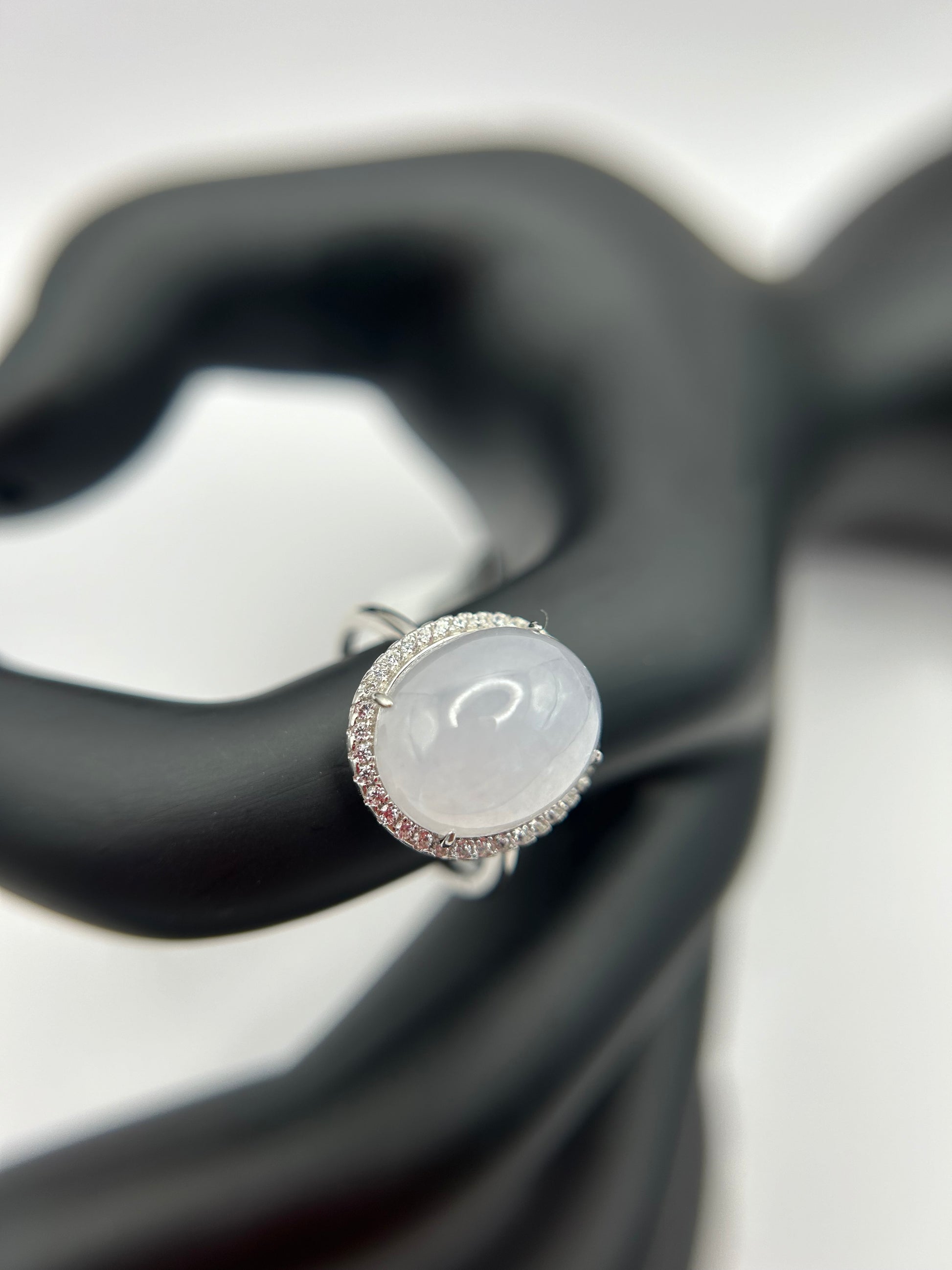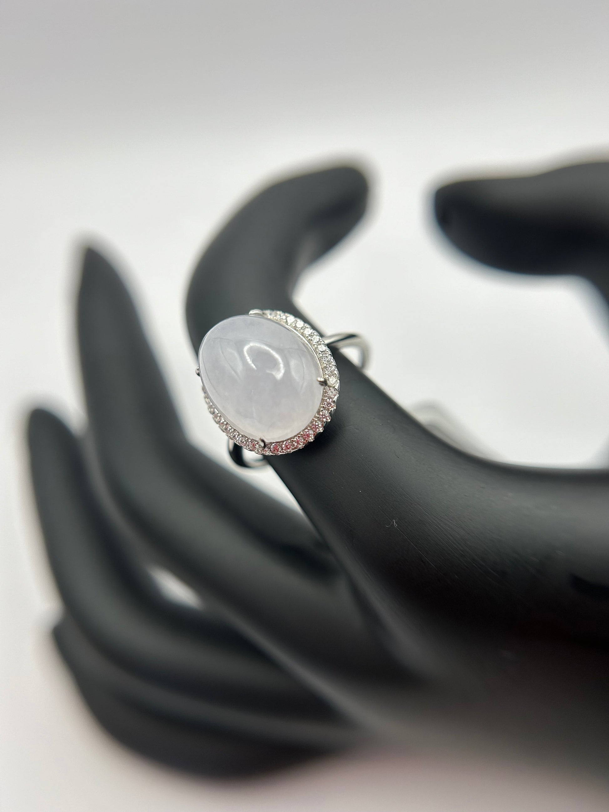 Natural grade A Burmese Lavender Jadeite cabochon with Cubic Zirconia Silver Ring