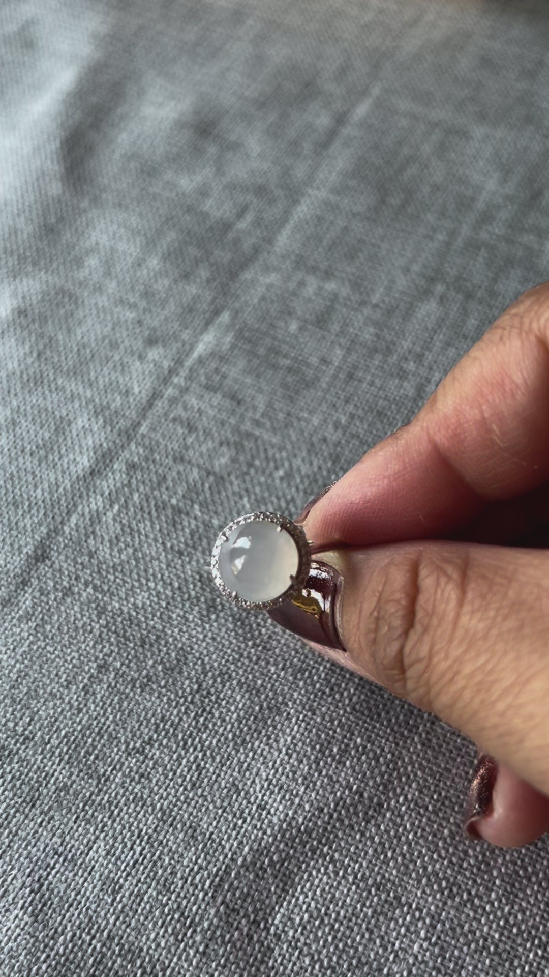 Natural grade A Burma White Jadeite cabochon with Cubic Zirconia Silver Ring