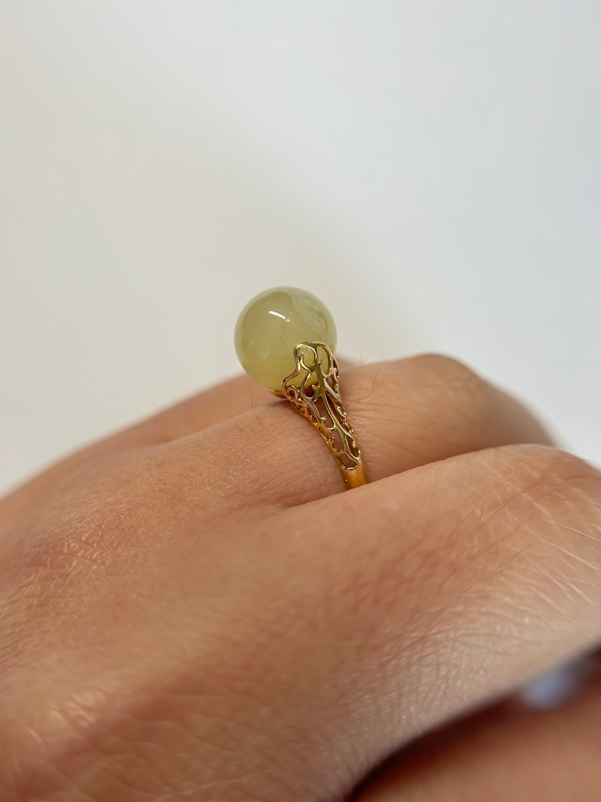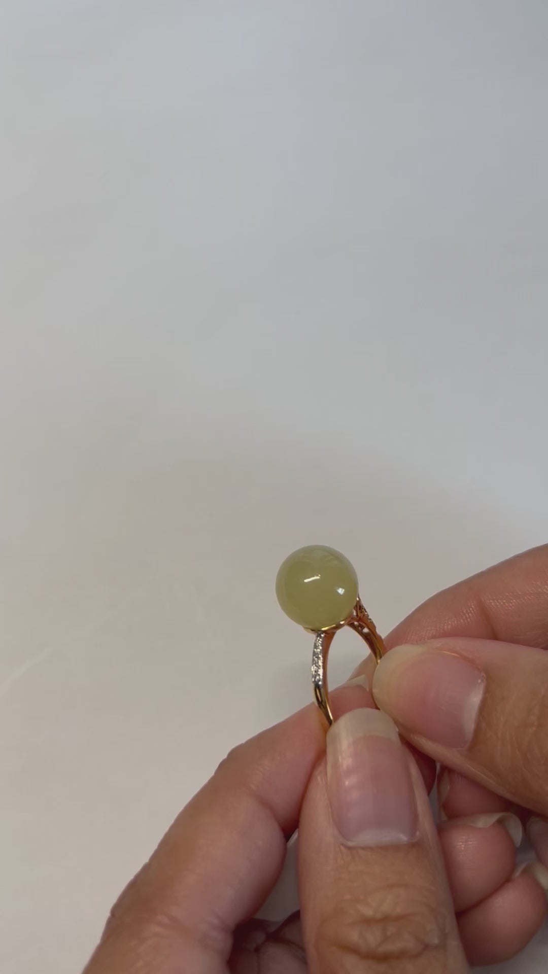 Natural grade A Burmese icy yellow Jadeite 18K Yellow Gold Diamond Ring