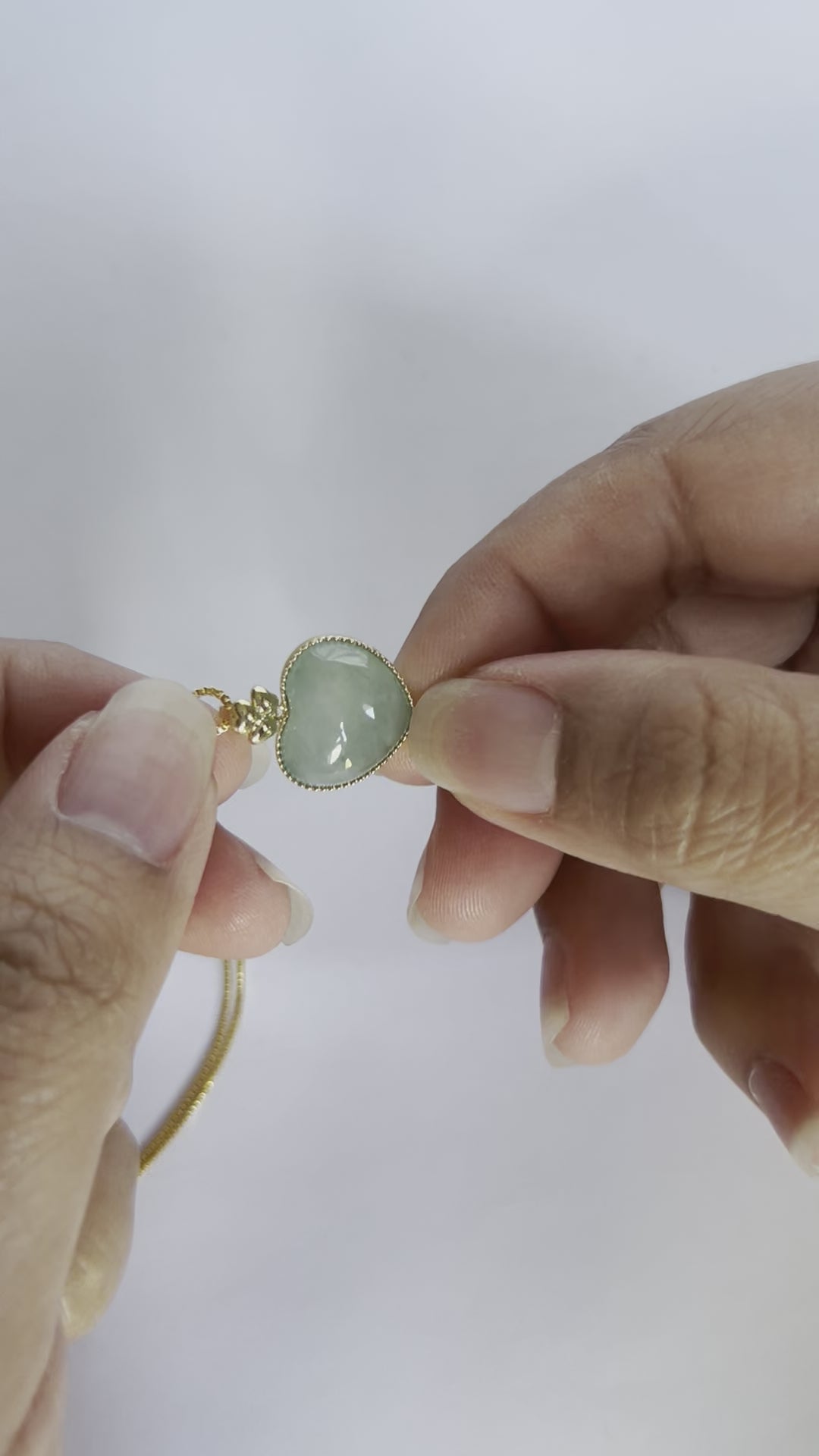 This pendant is modern, classy, and captivates attention and the heart of everyone. it’s the perfect size, not too dainty not too big. the texture and color of the jade is absolutely stunning. It is a perfect heirloom that would never go out of style.