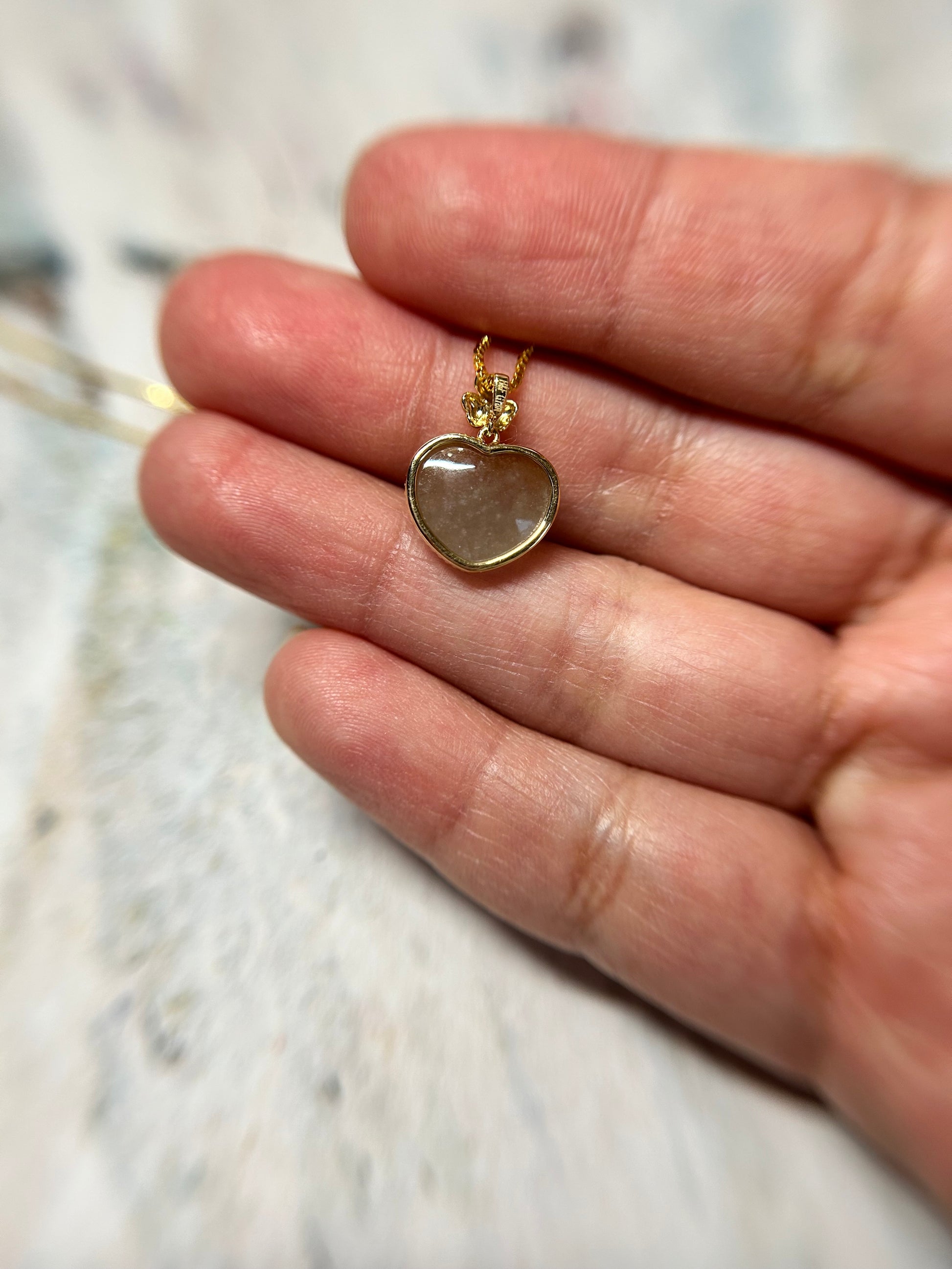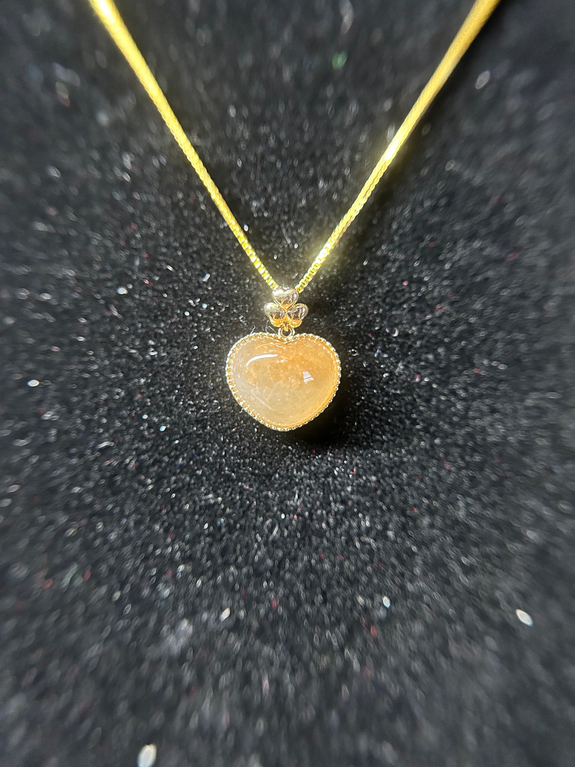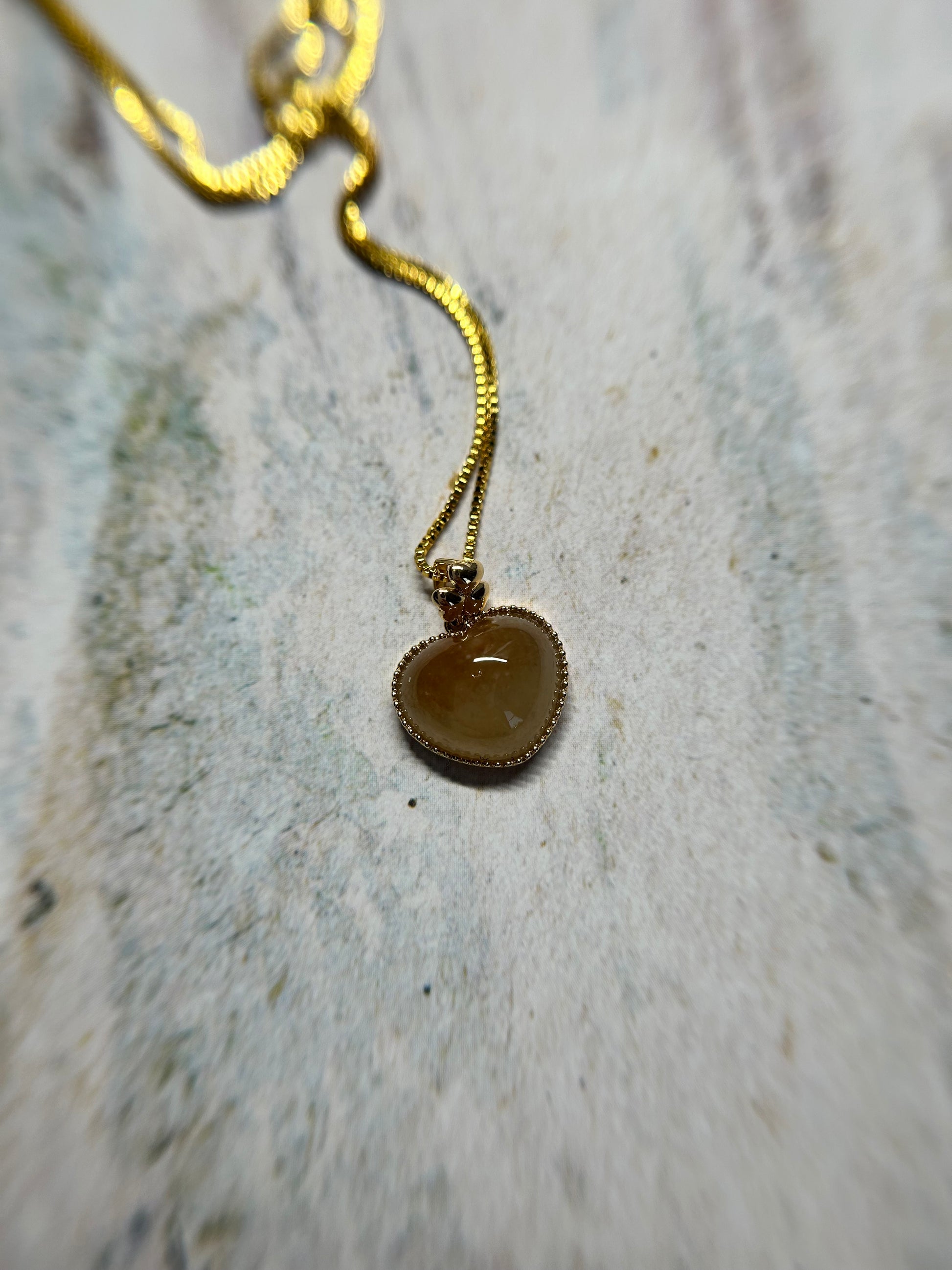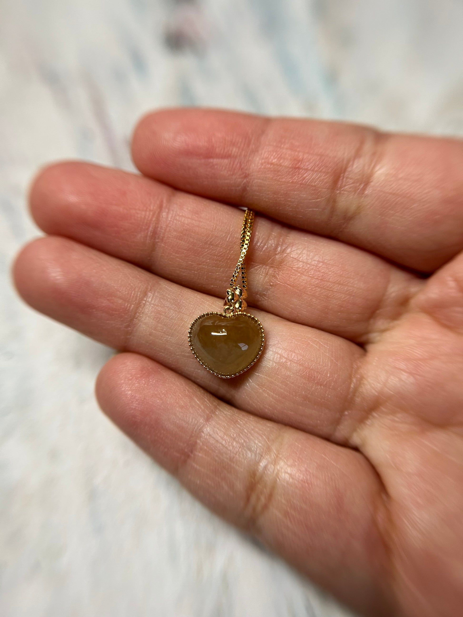 Natural Grade A Burme Jadeite 18K yellow gold bail icy red, yellow heart pendant