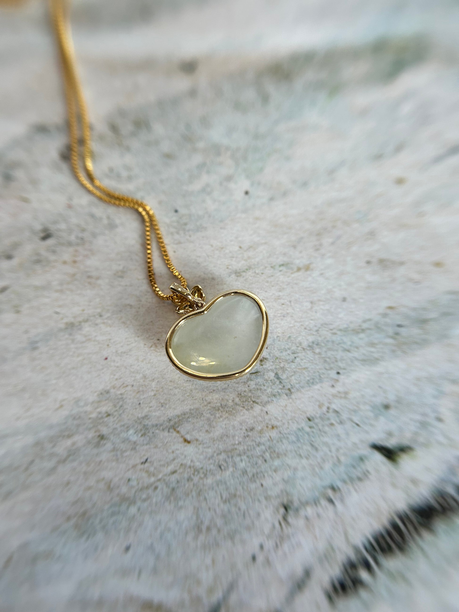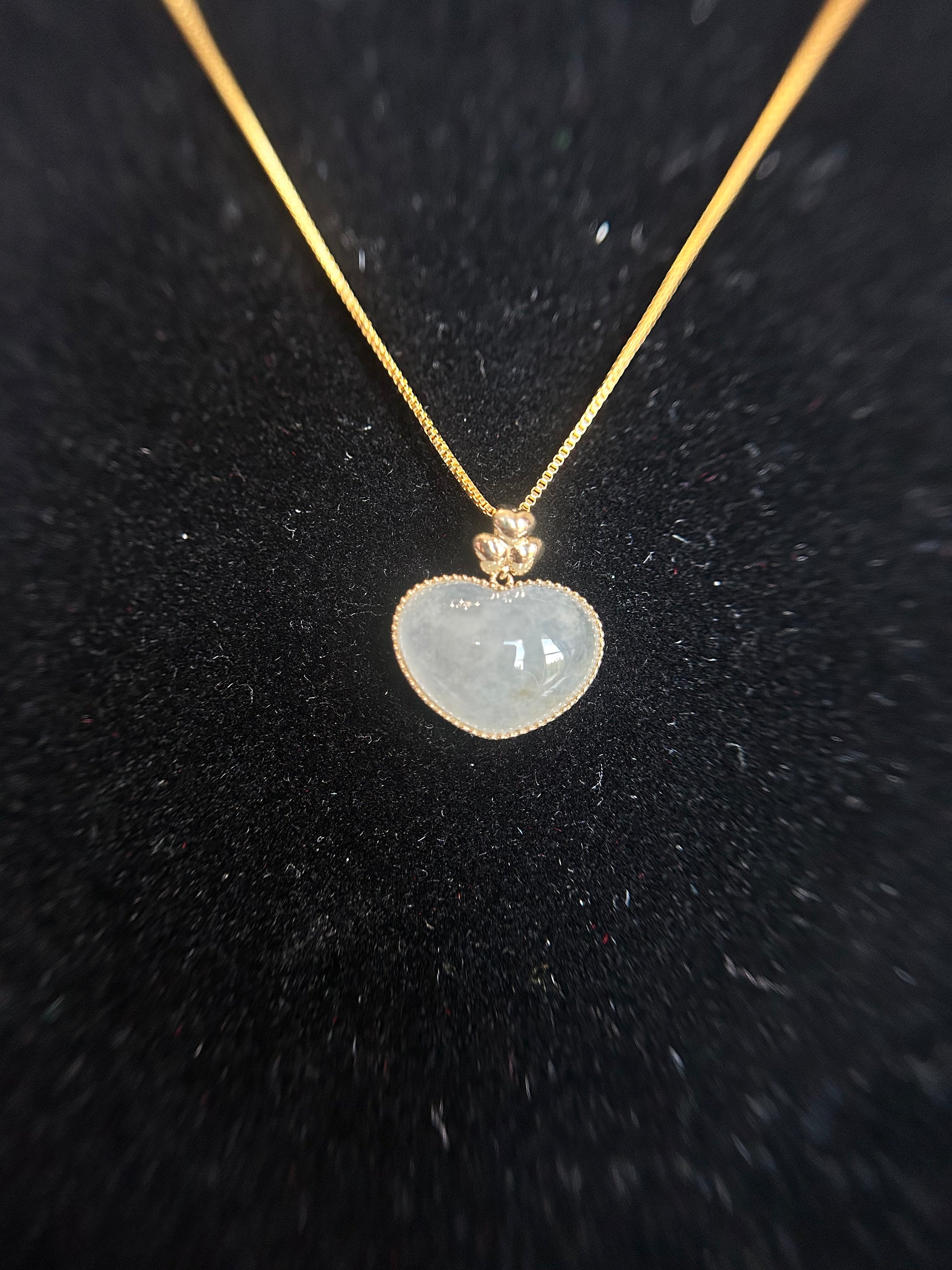 Natural Grade A Burme Jadeite 18K yellow gold bail icy white heart pendant