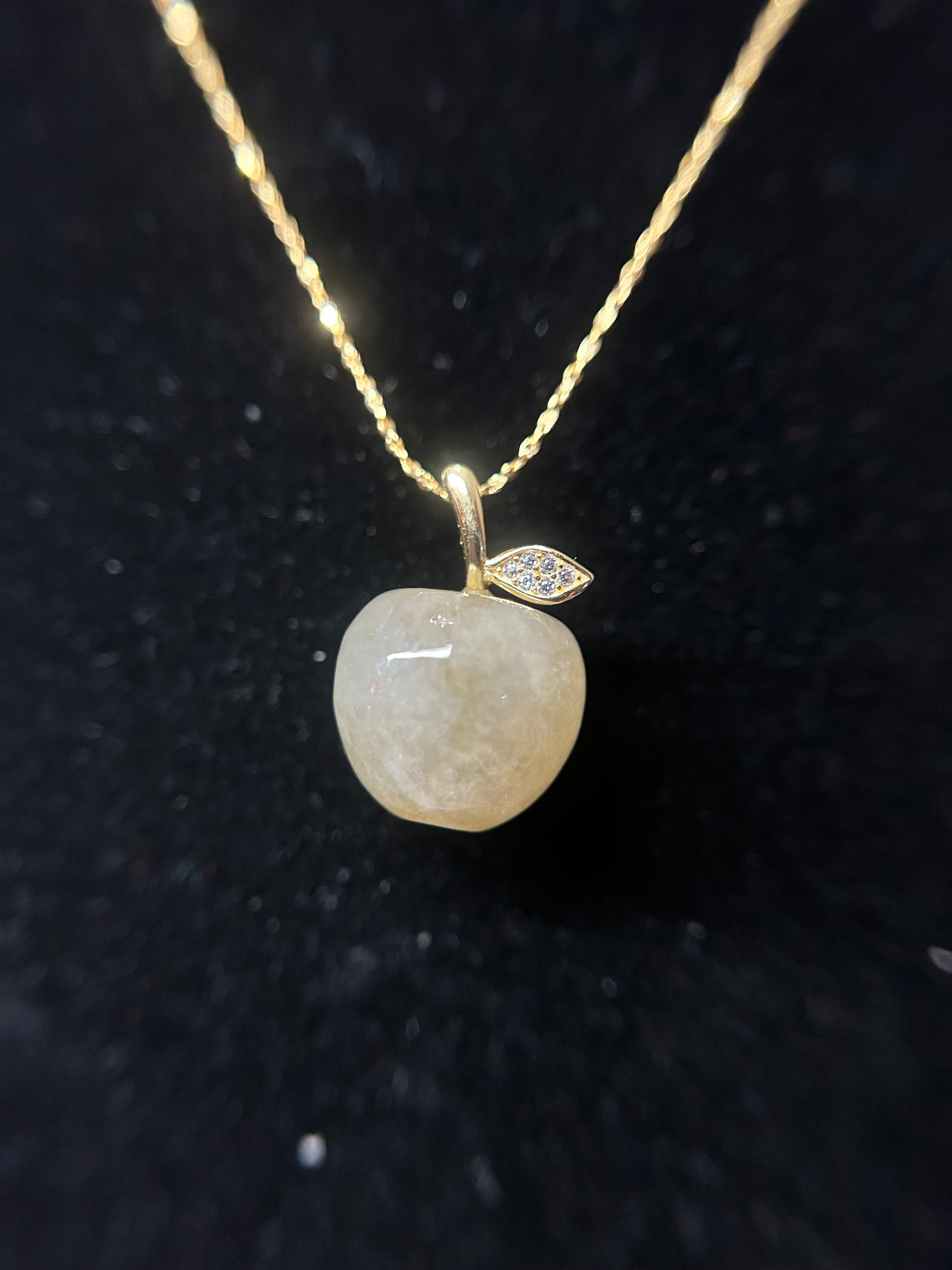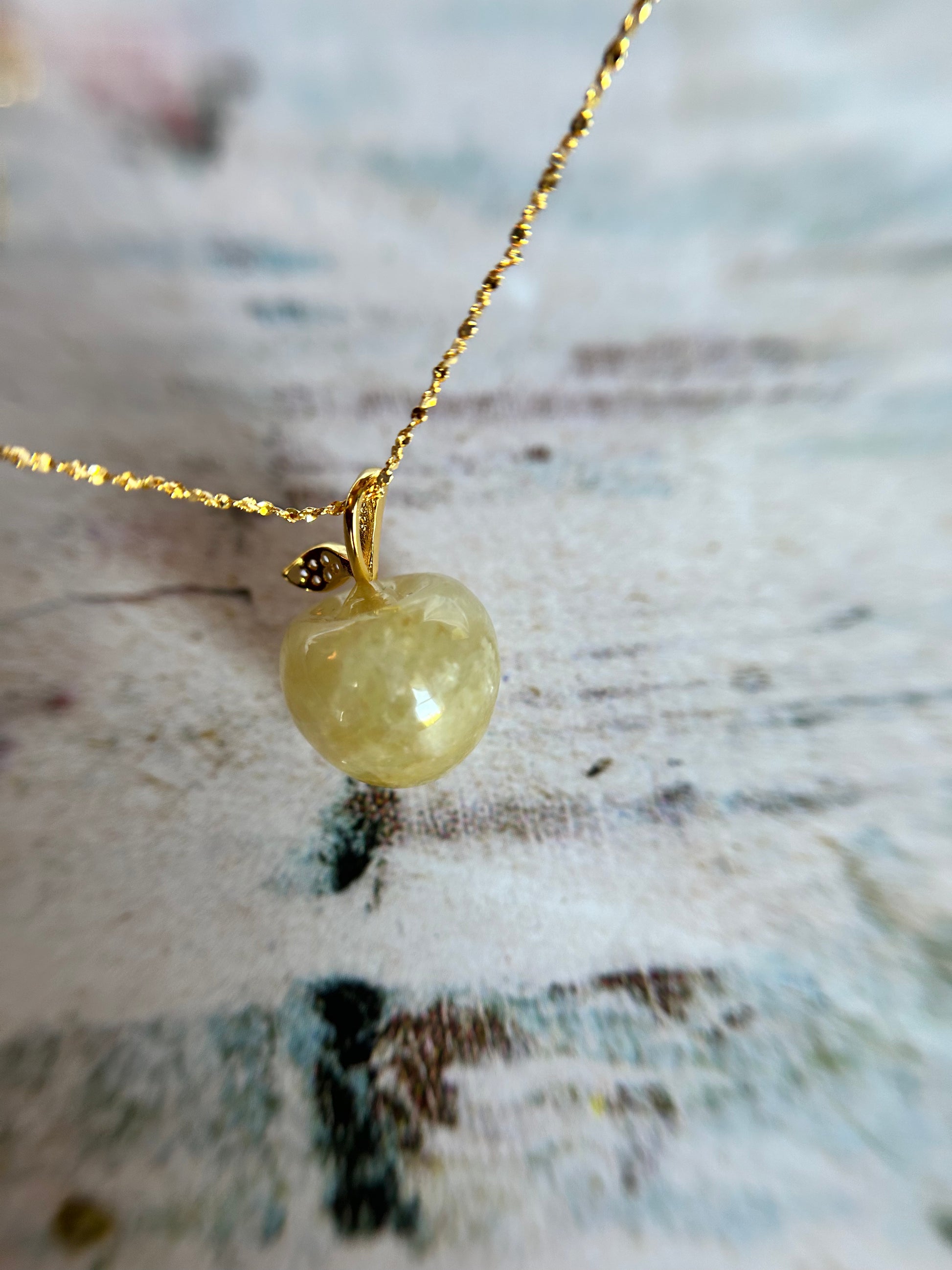Natural Grade A Burmese Jadeite Gold over Sterling Silver Stem Icy Yellow Apple necklace
