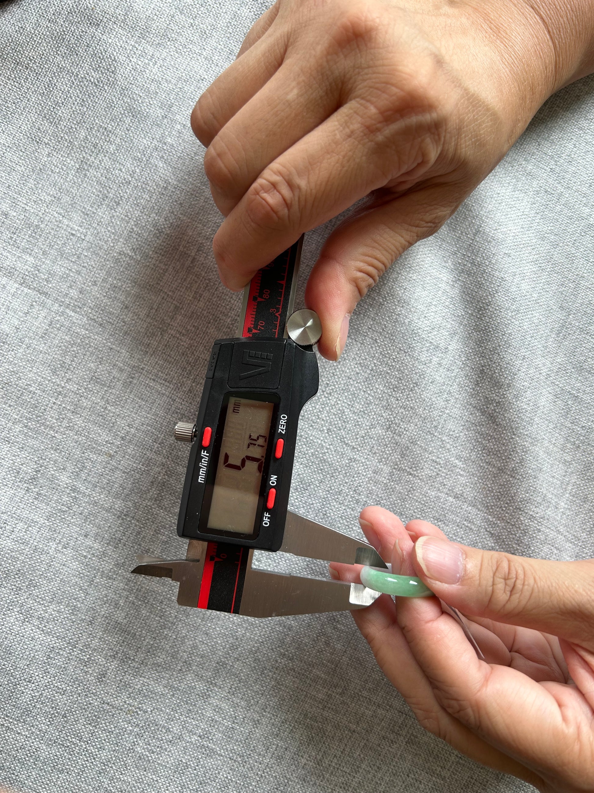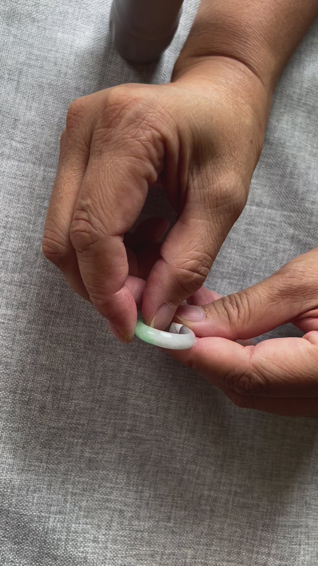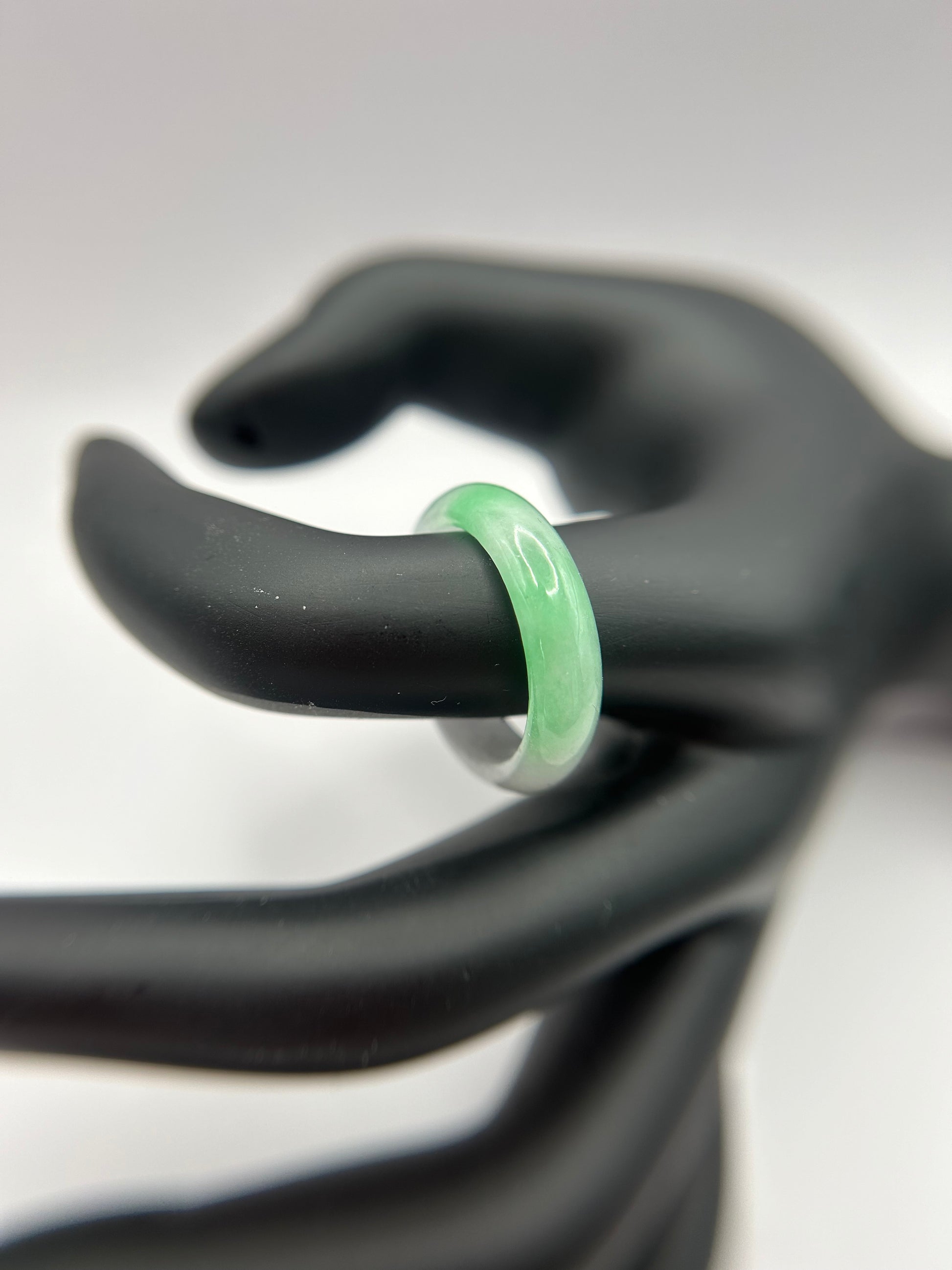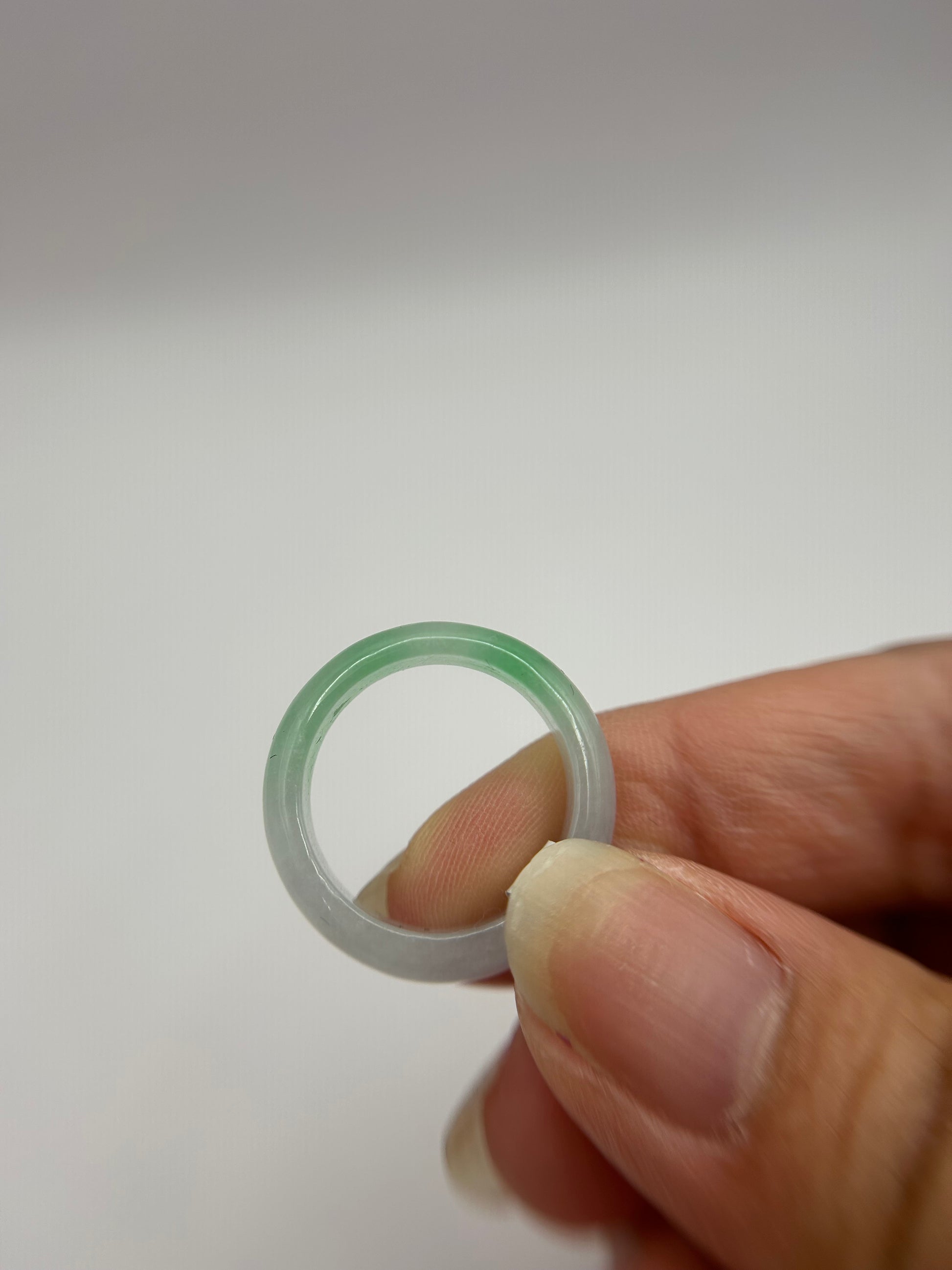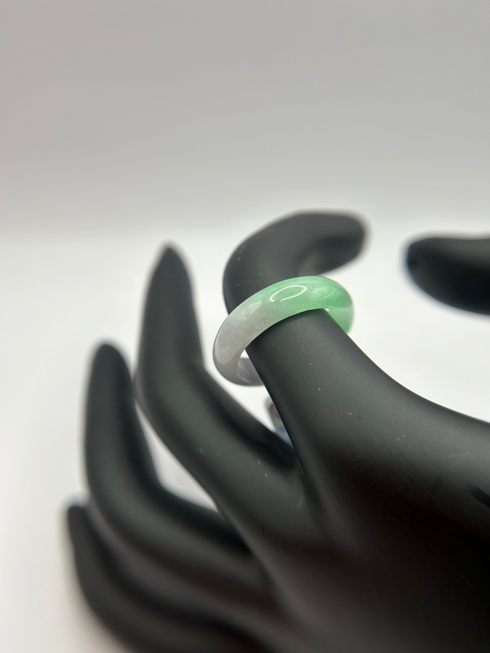 This natural grade A Burma Jadeite ring is  green and white. with inner size 18.47mm, thick:3/12mm, height:5.75mm. US size: 8