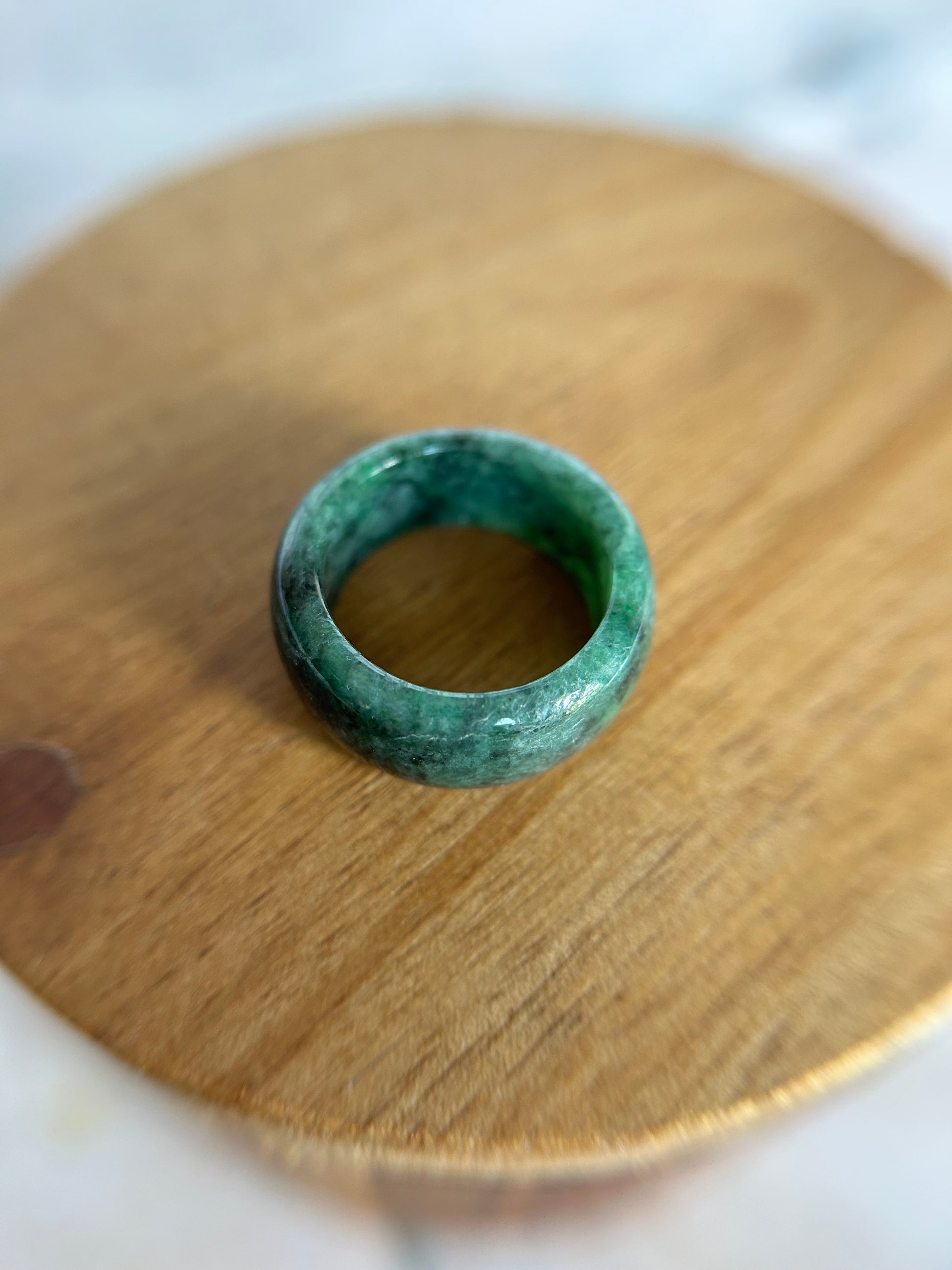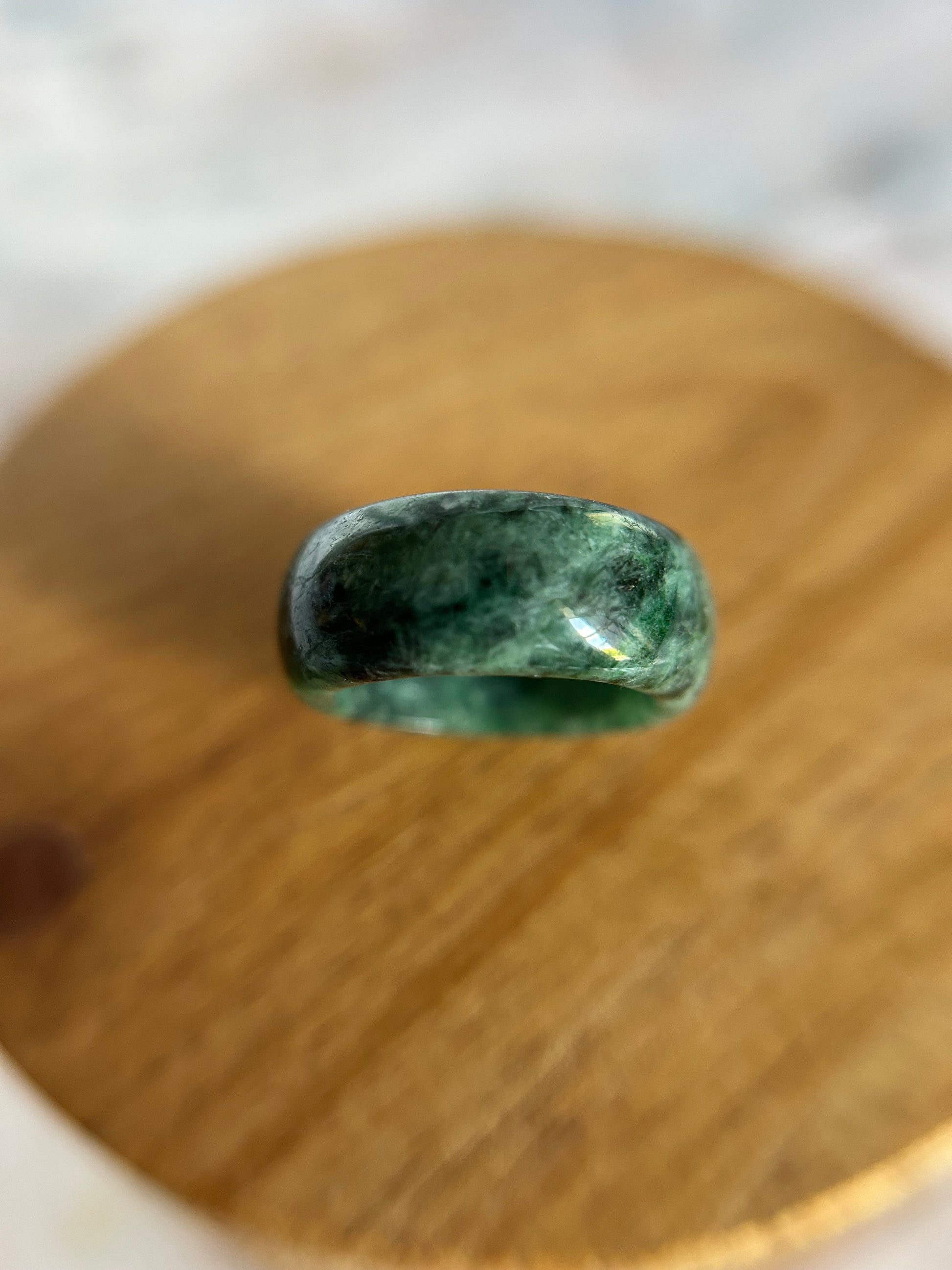This natural grade A Burma Jadeite ring is whole green . with inner size 28.88mm, thick:3.35, height:9.27 out size:24.98. US size: 8