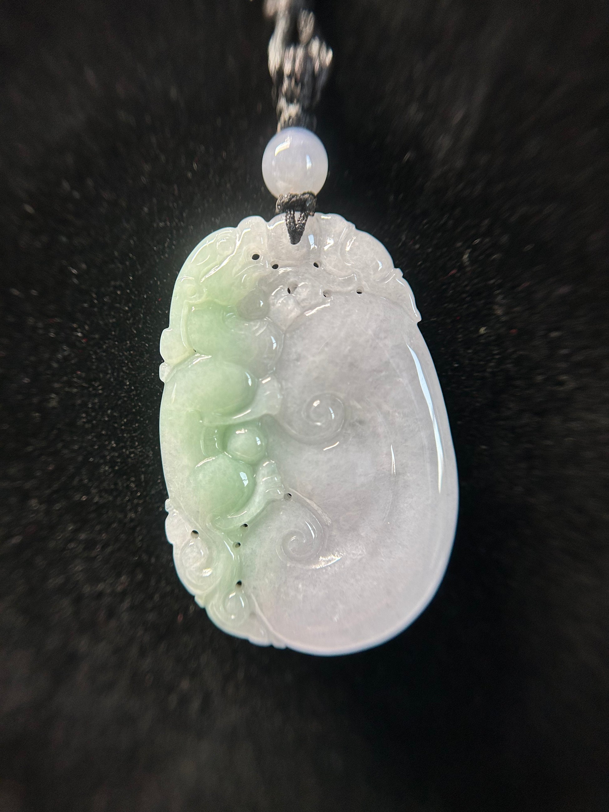Natural Grade A Burme Jadeite Light green and white jadeite Pi Xiu, Yuyi Pendant