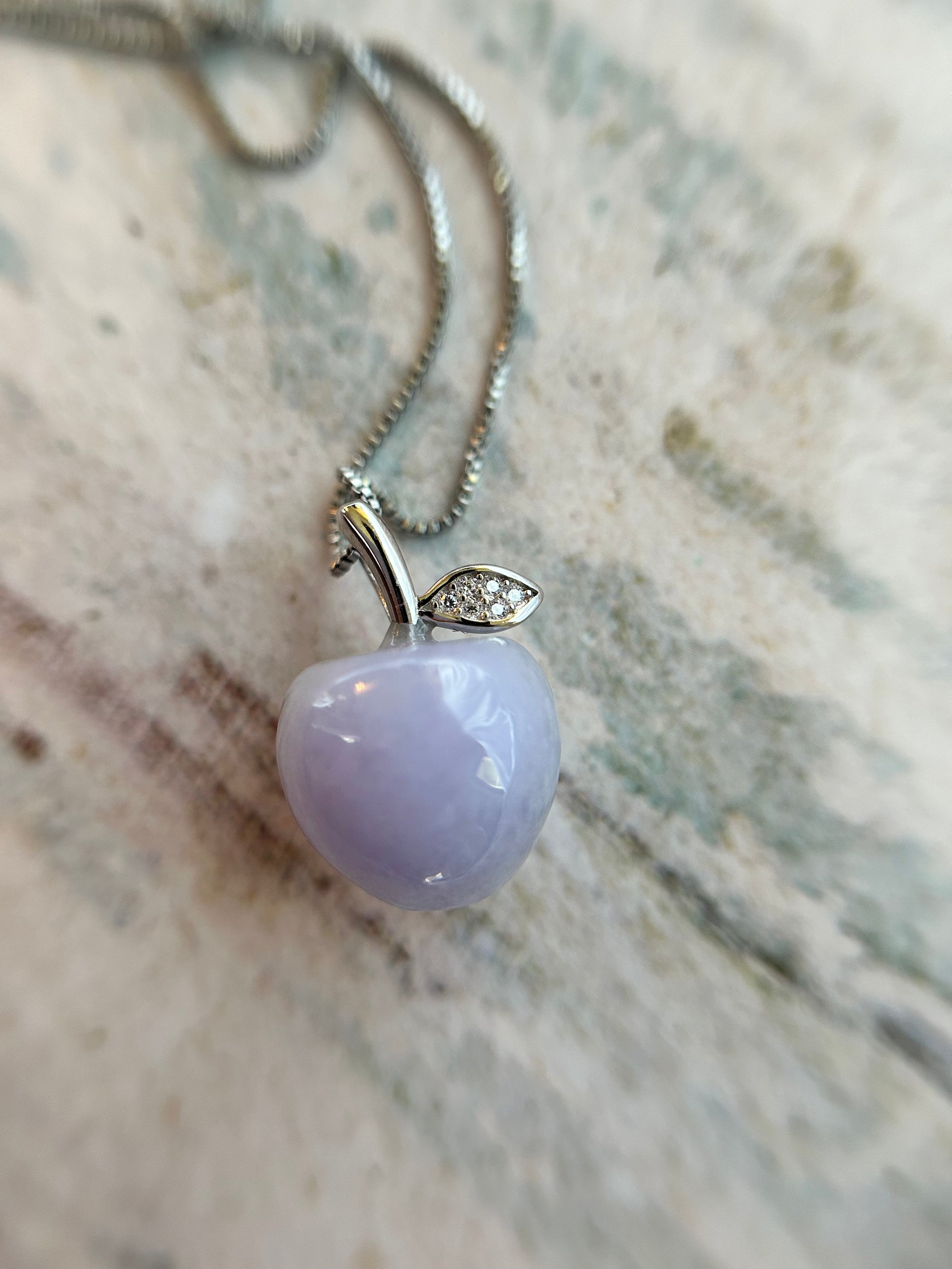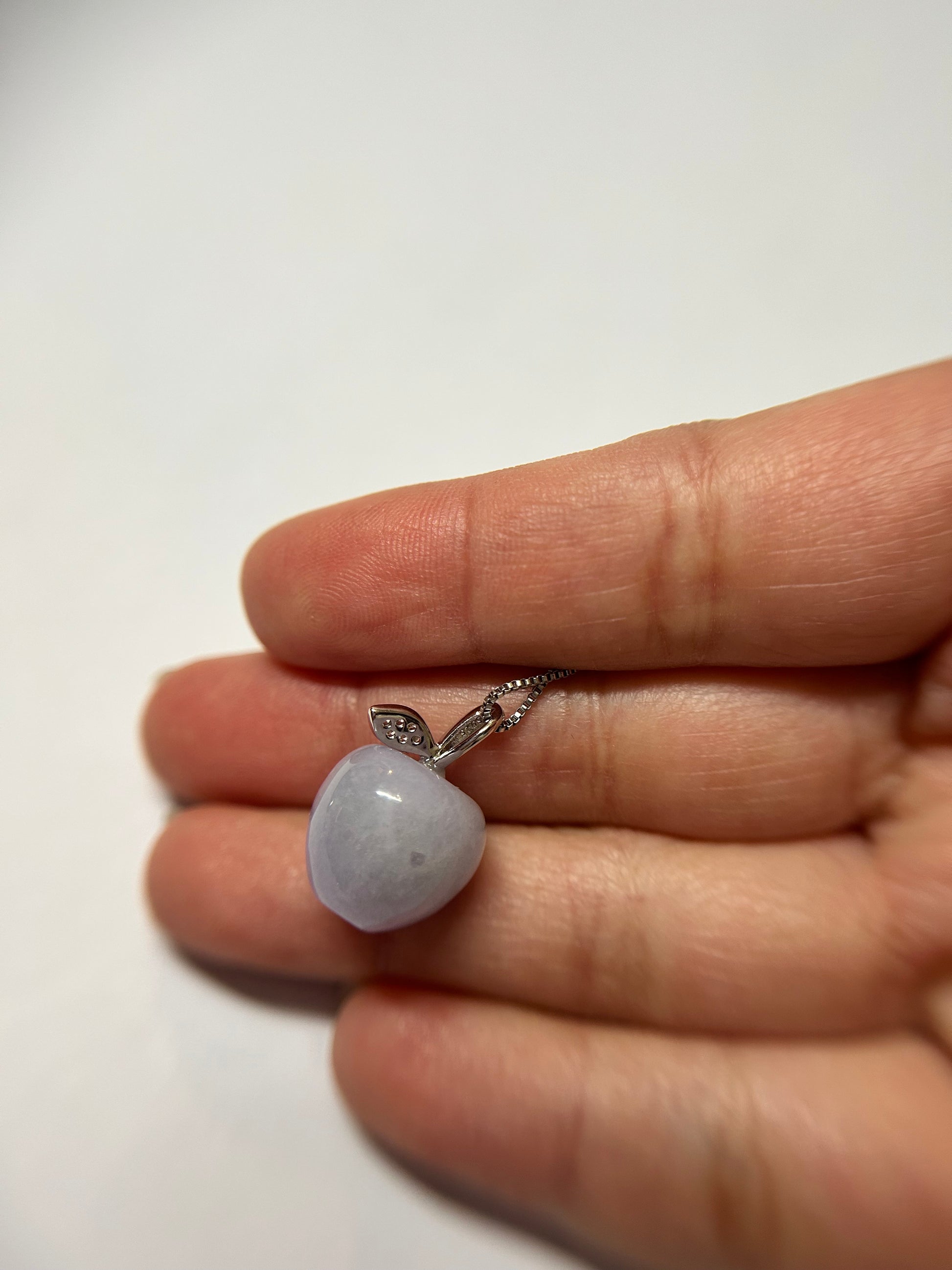 Natural Grade A Burme Jadeite Sterling Silver Stem Icy Lavender Apple necklace