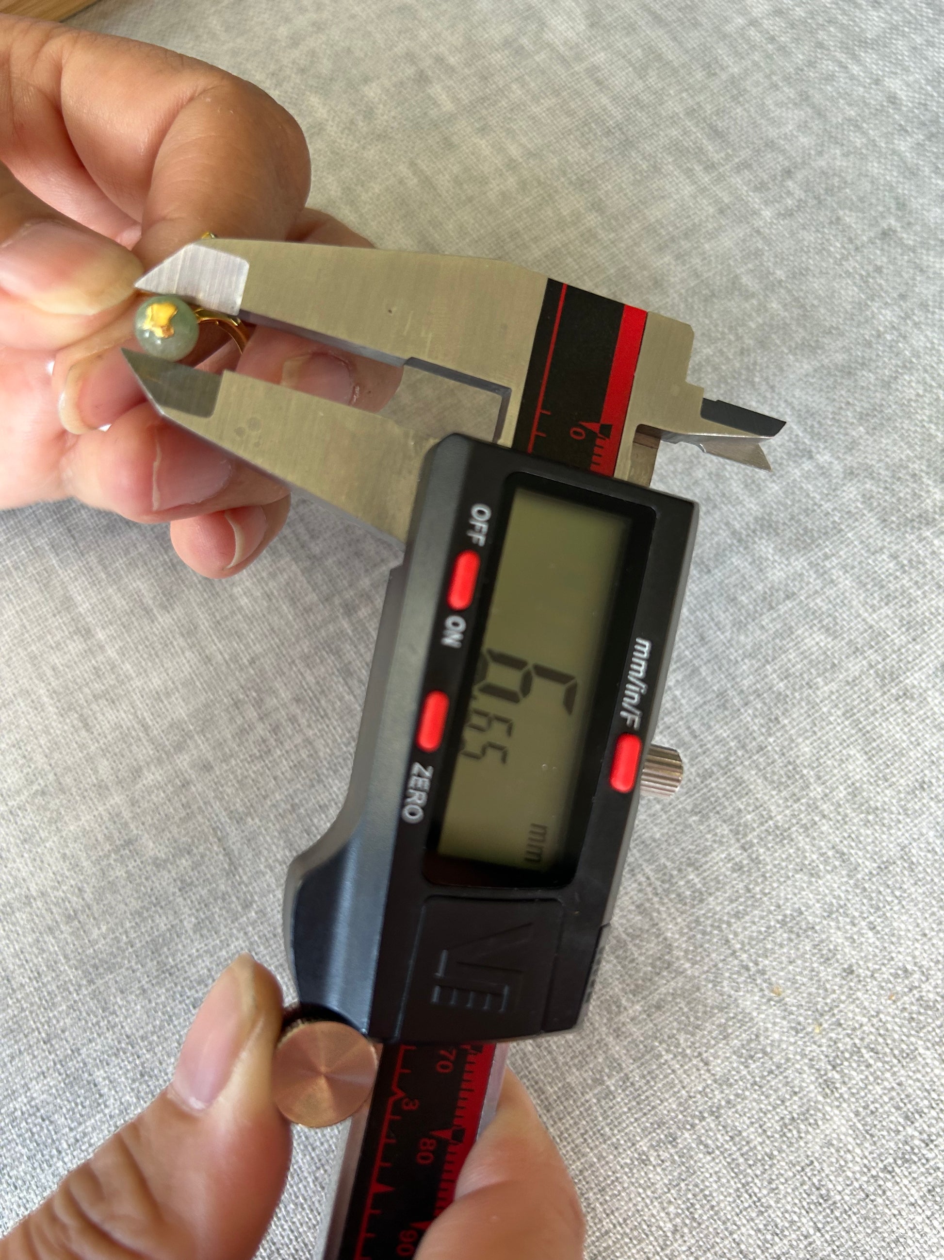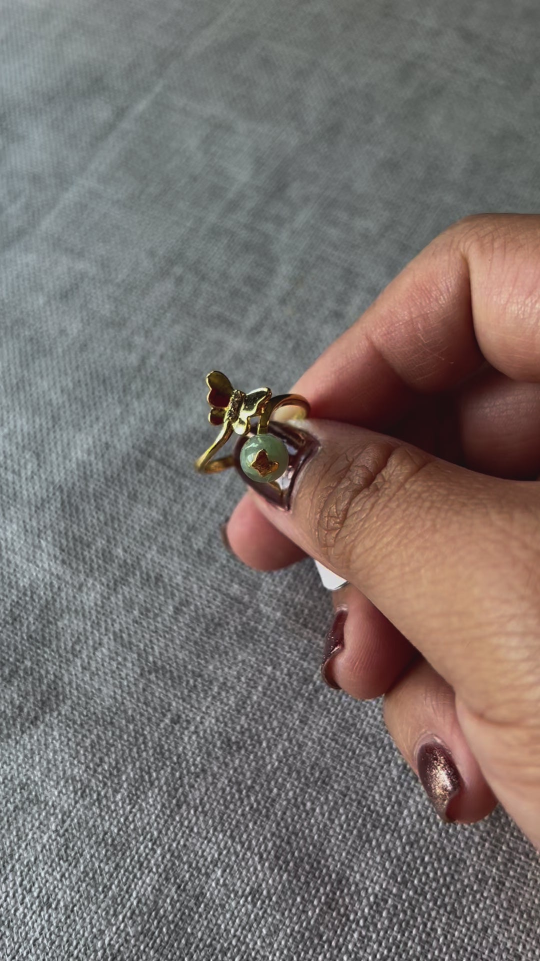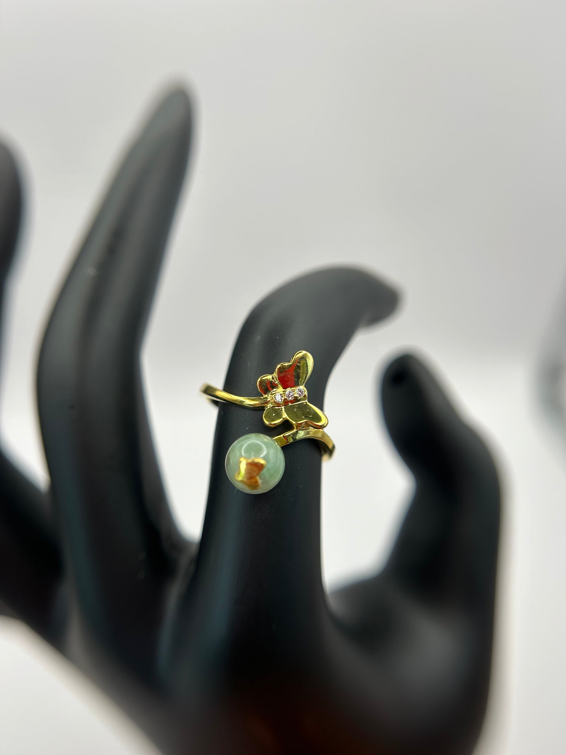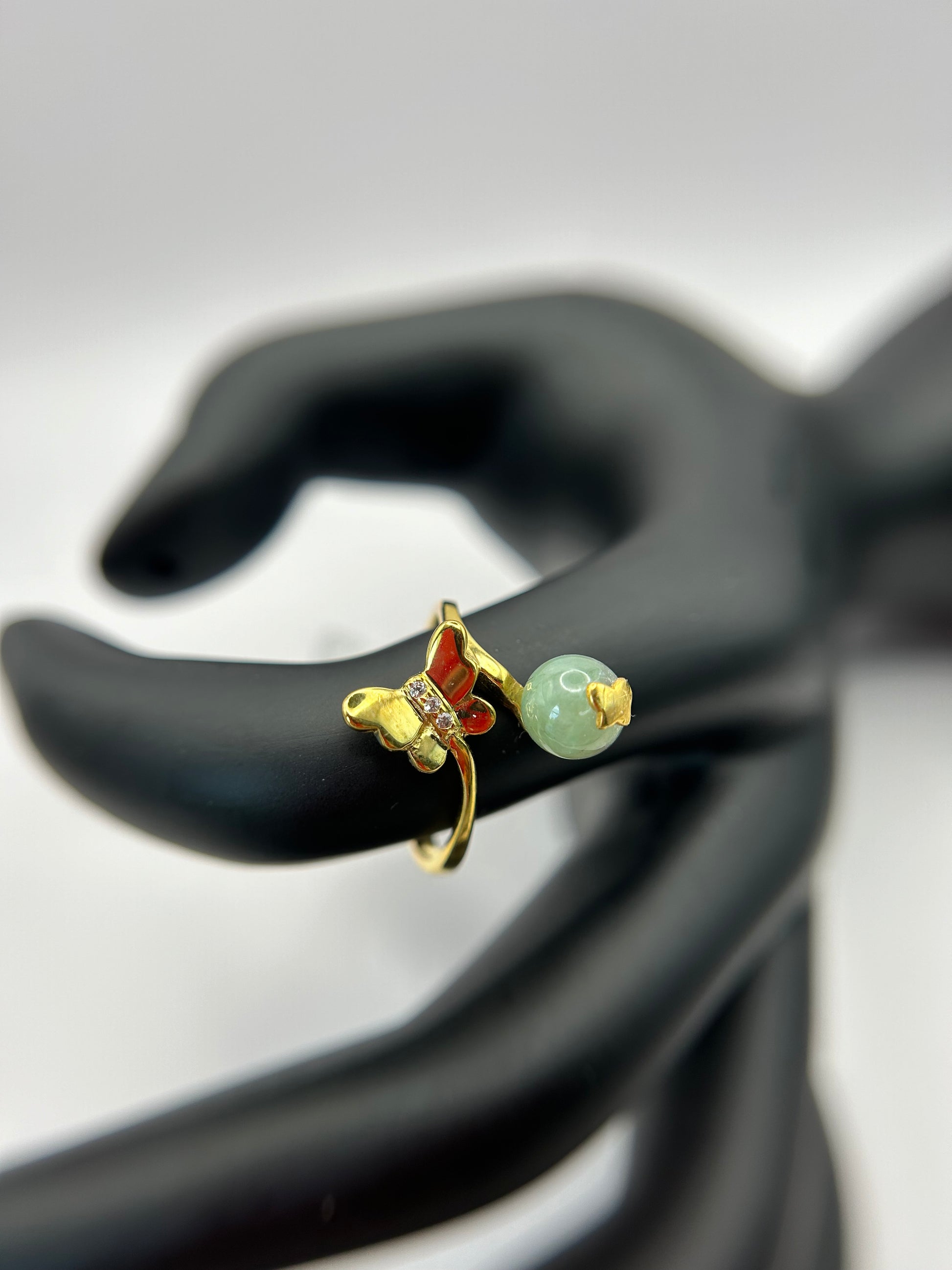 This natural grade A Burmese green Jadeite gold over sterling silver ring. is adjustable. The green jadeite bead diameter is 6.65mm.