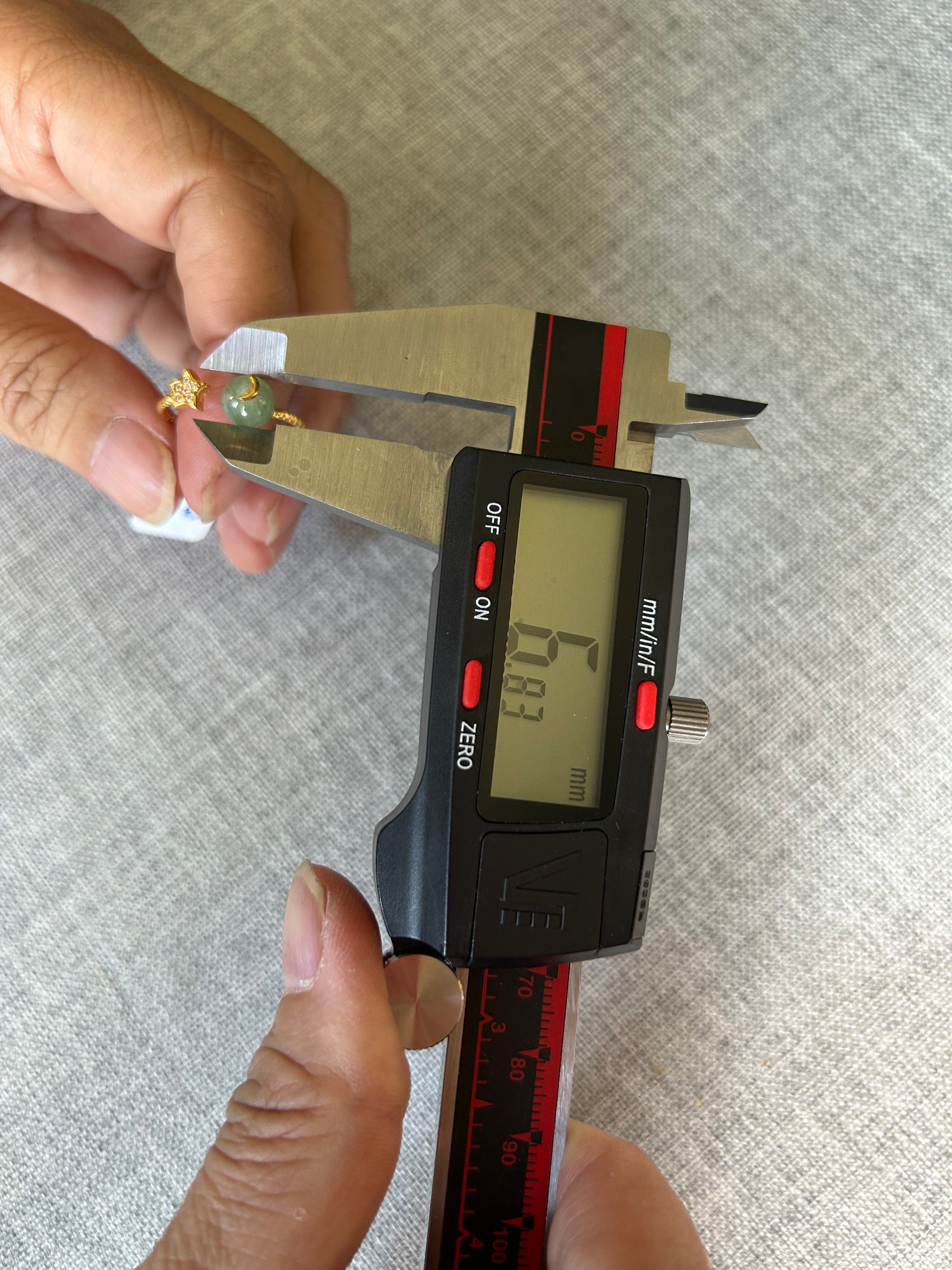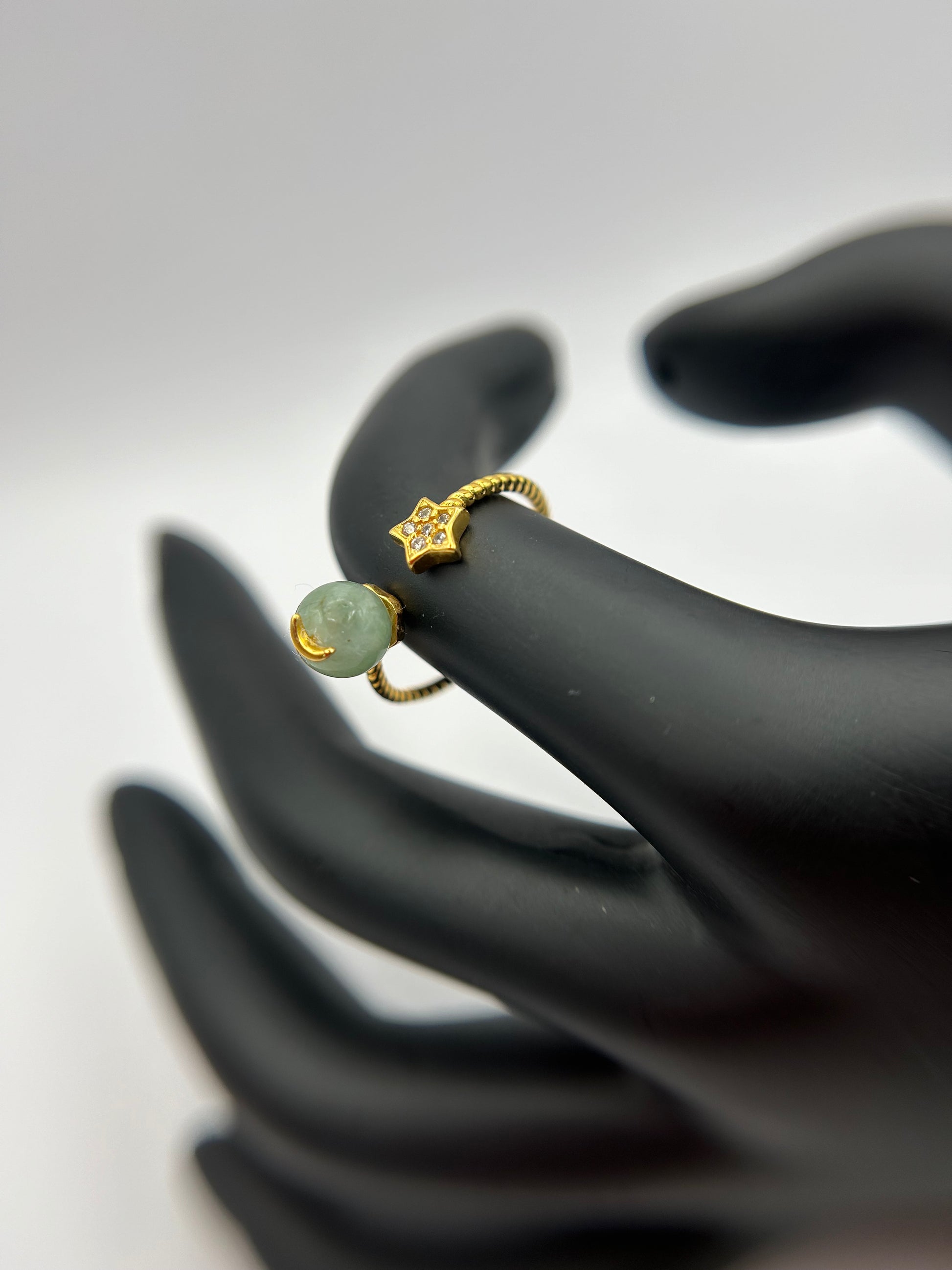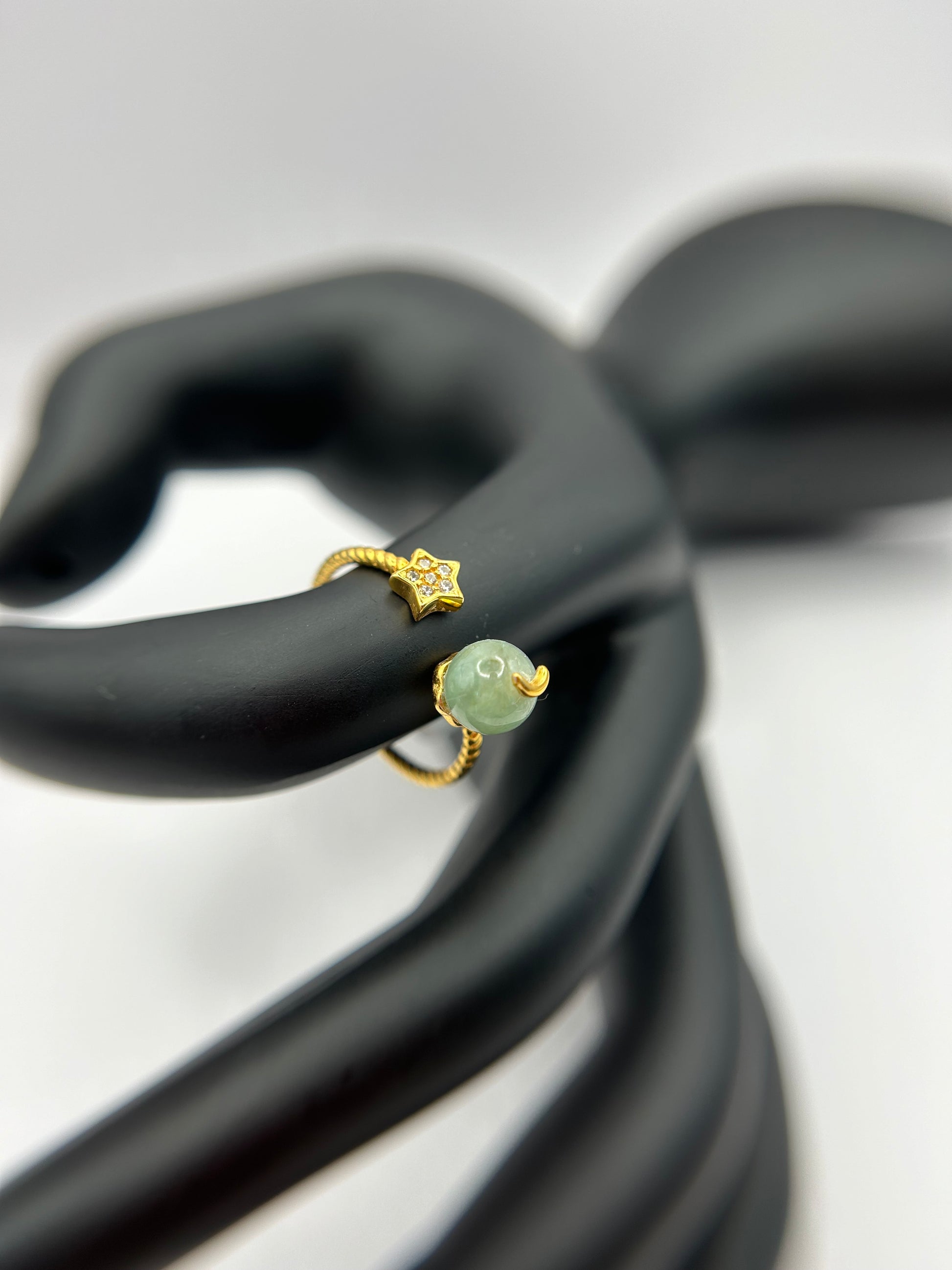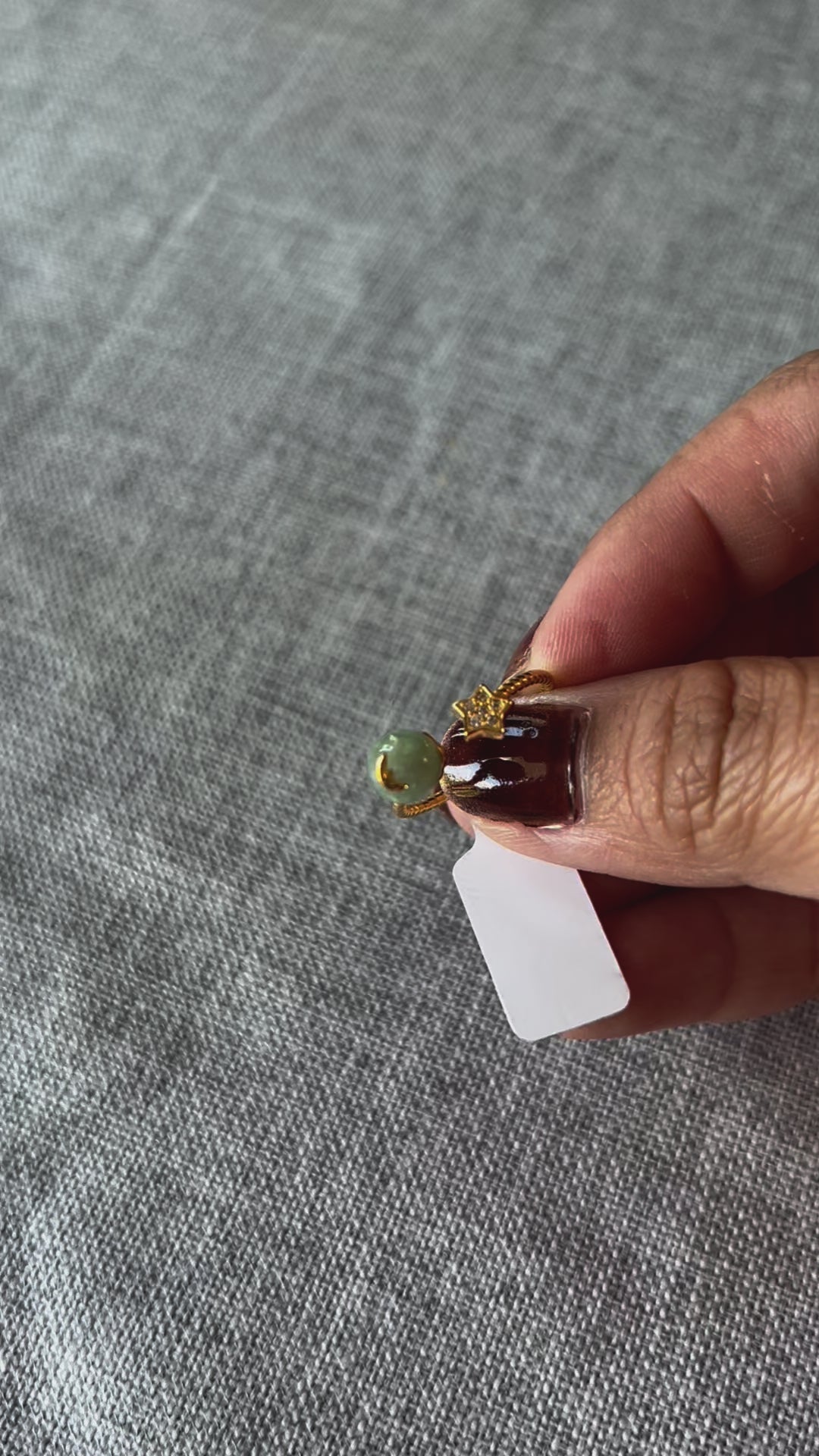 This natural grade A Burmese green Jadeite gold over sterling silver ring. is adjustable. The green jadeite bead diameter is 6.87mm.
