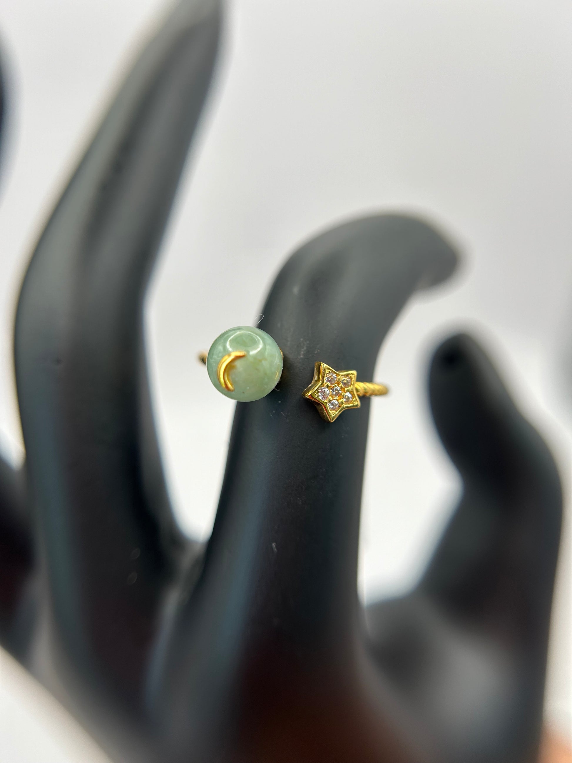 Natural grade A Burmese Green Jadeite Gold over Sterling Silver Adjustable Ring