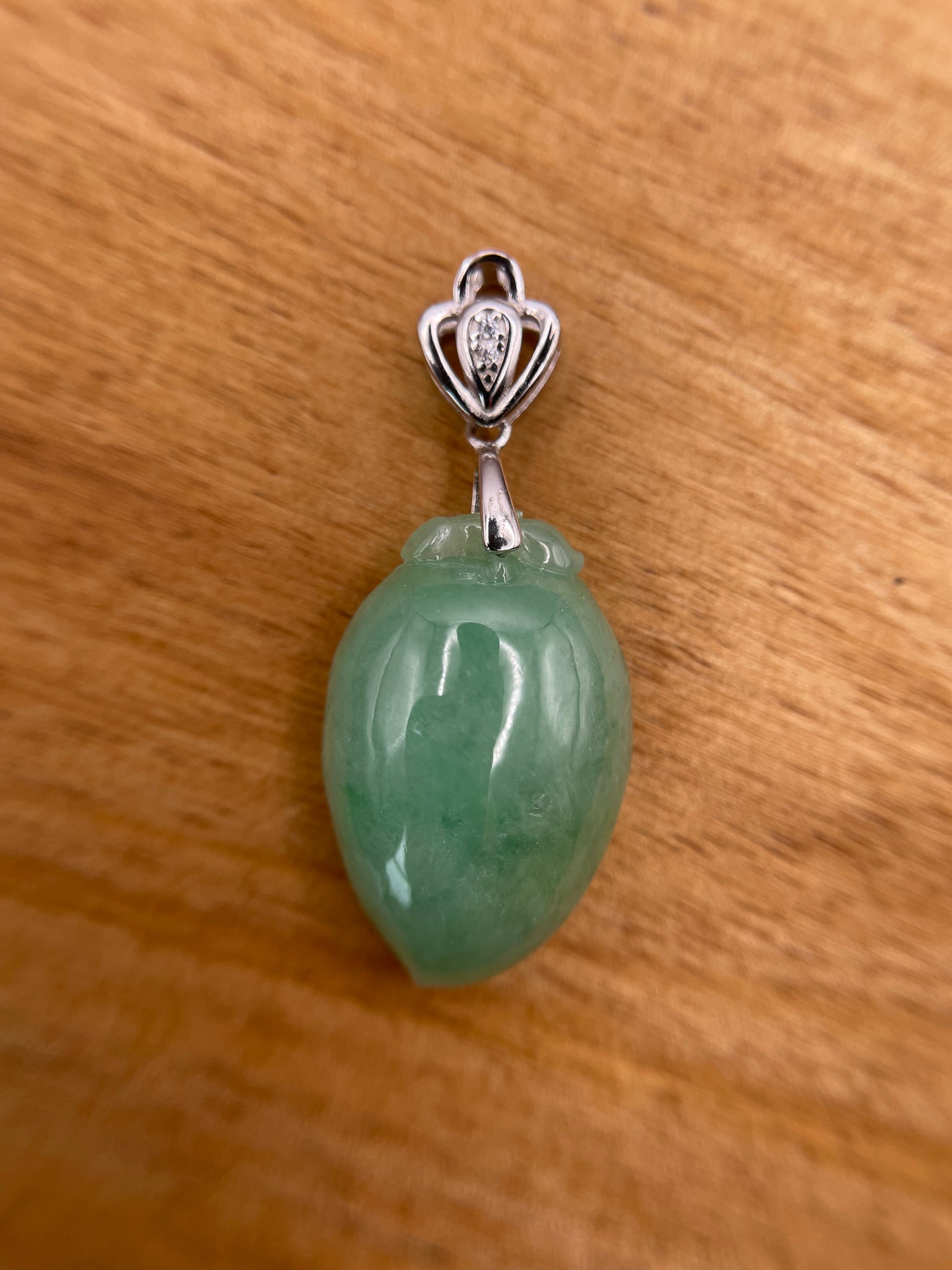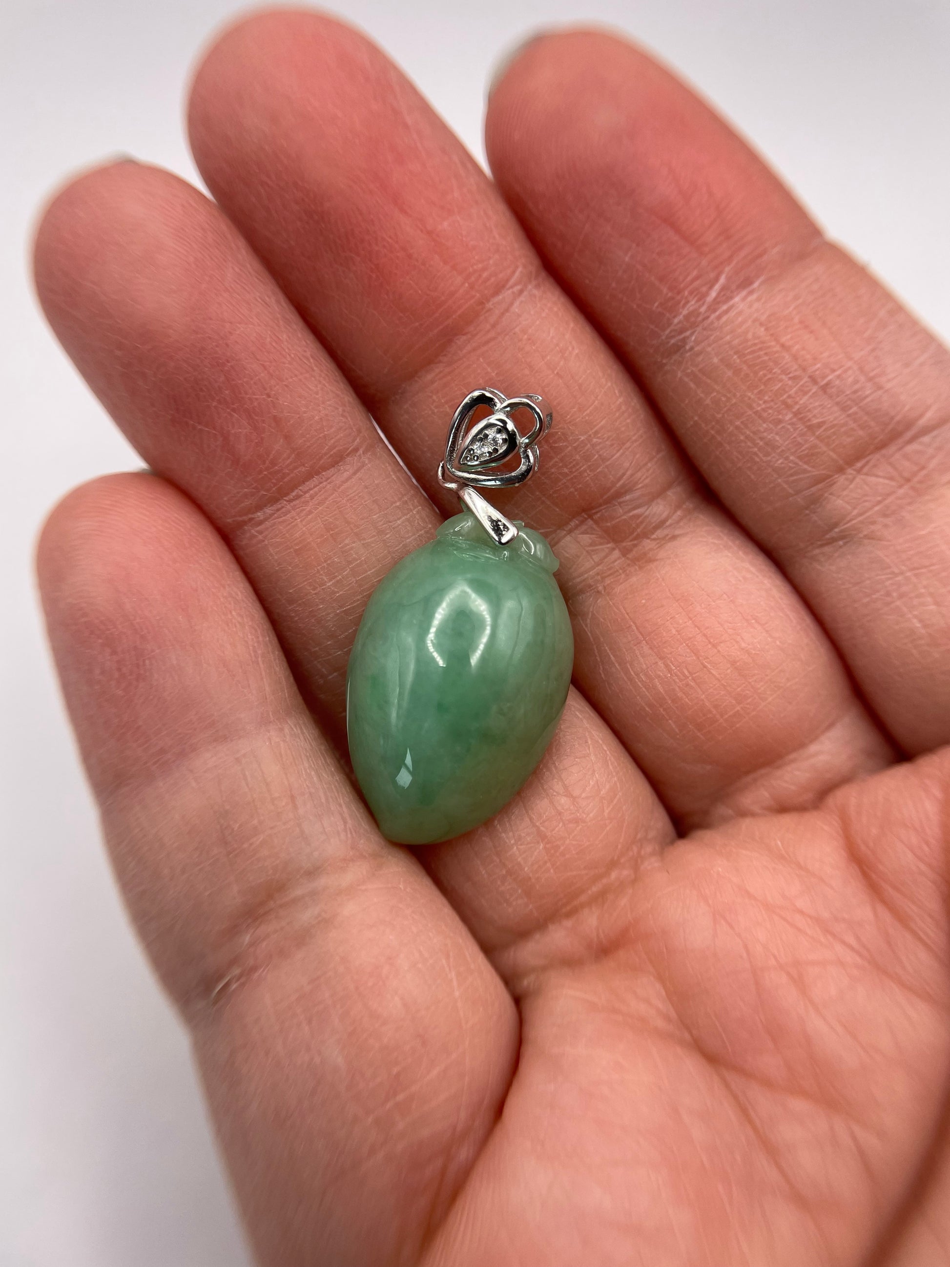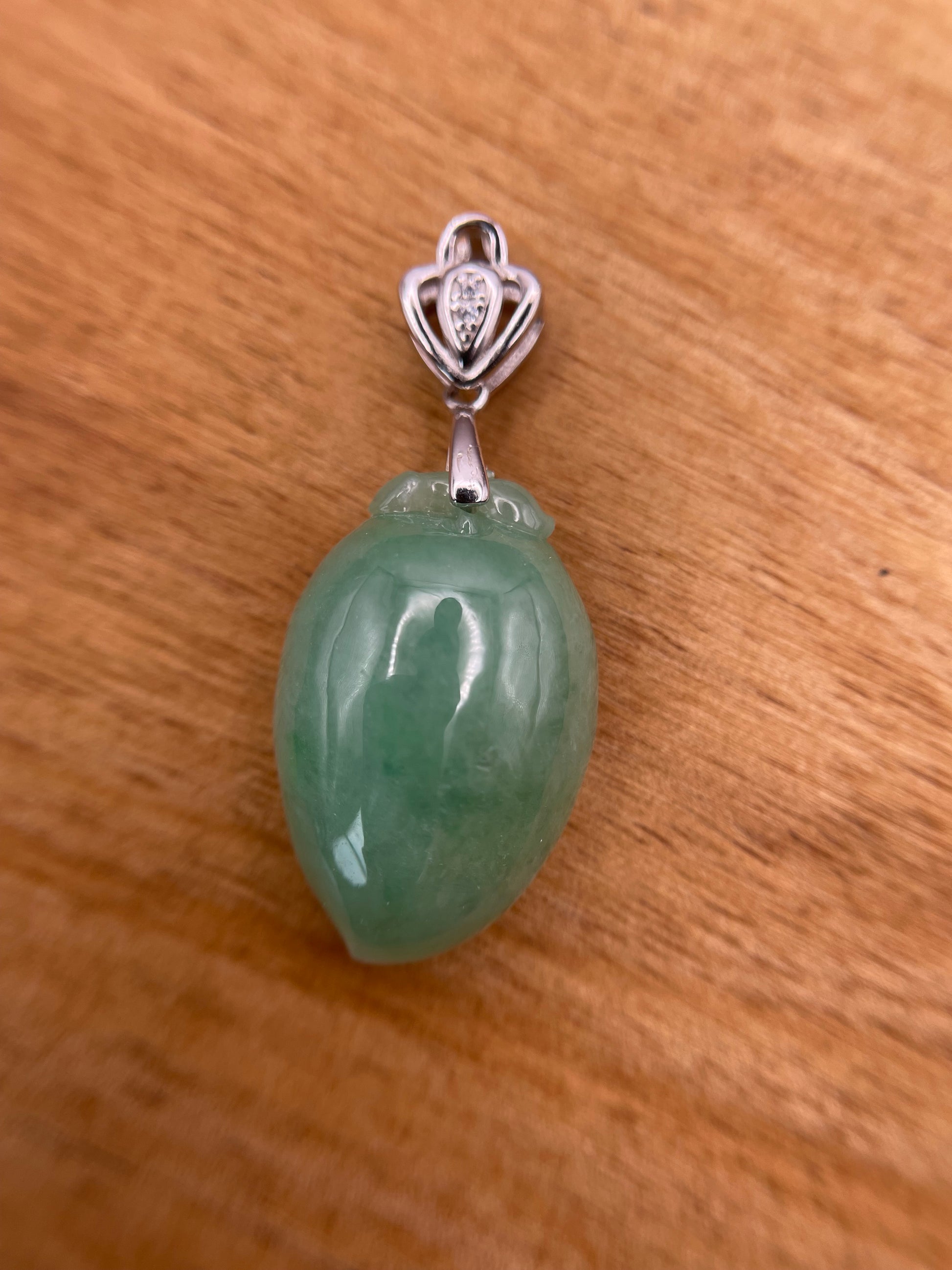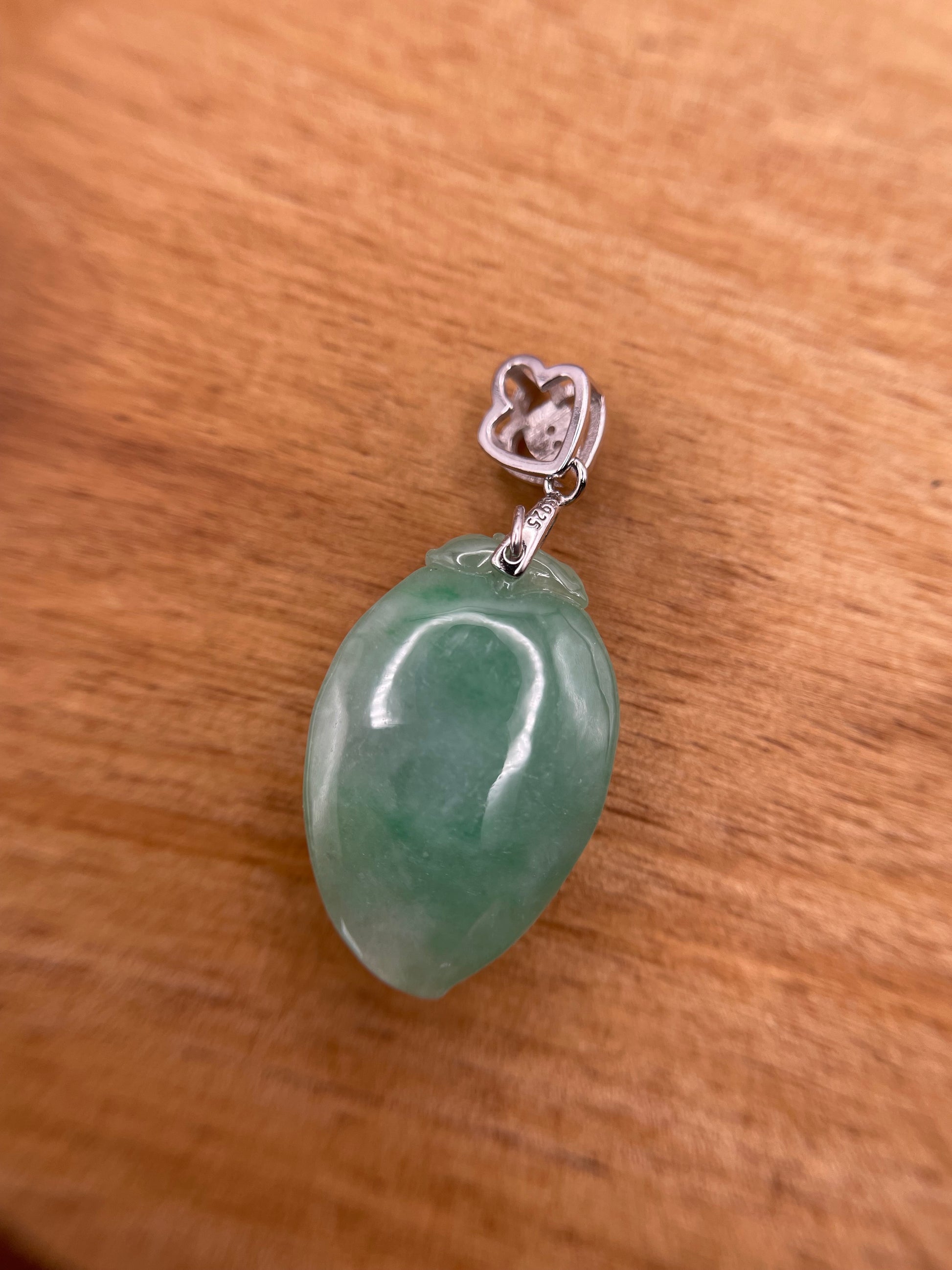 Natural Grade A Burmese green Jadeite peach sterling silver Bail Pendant
