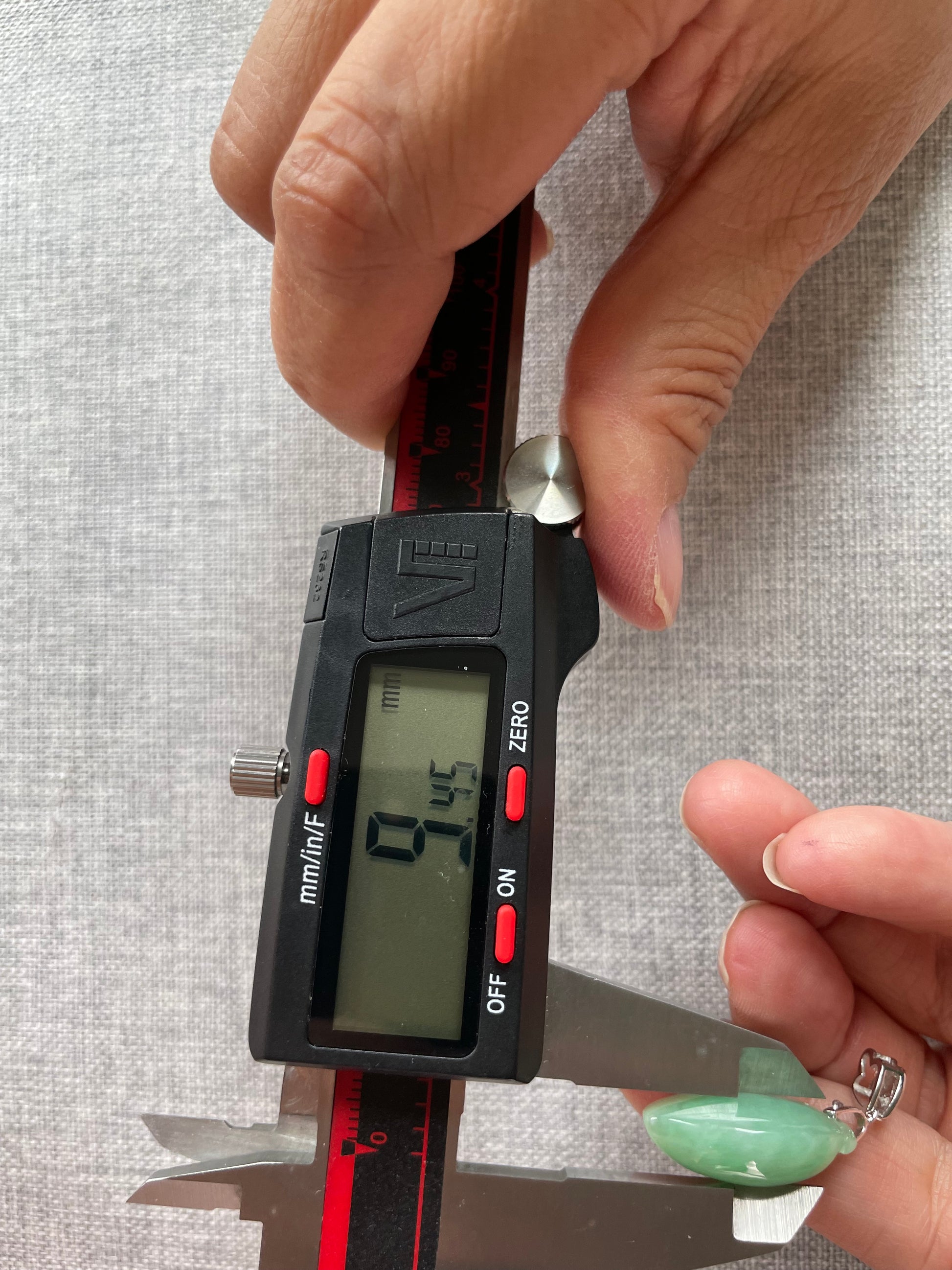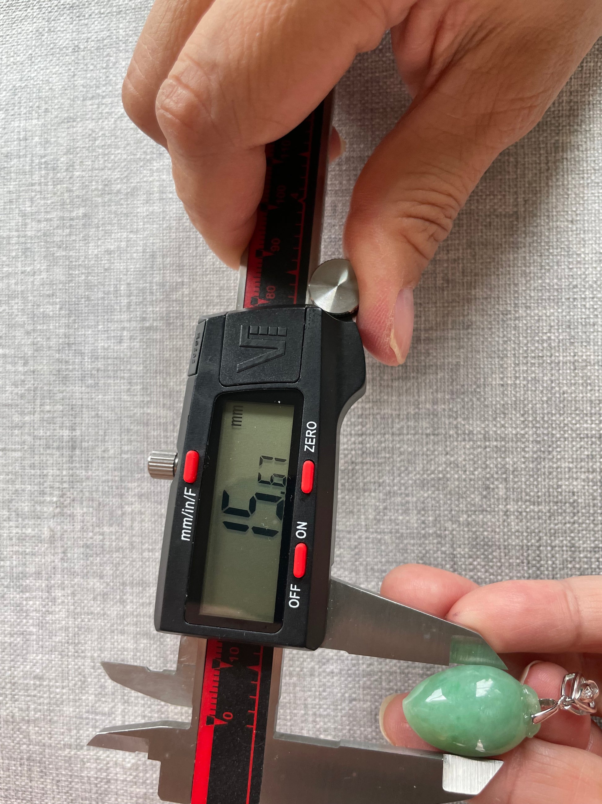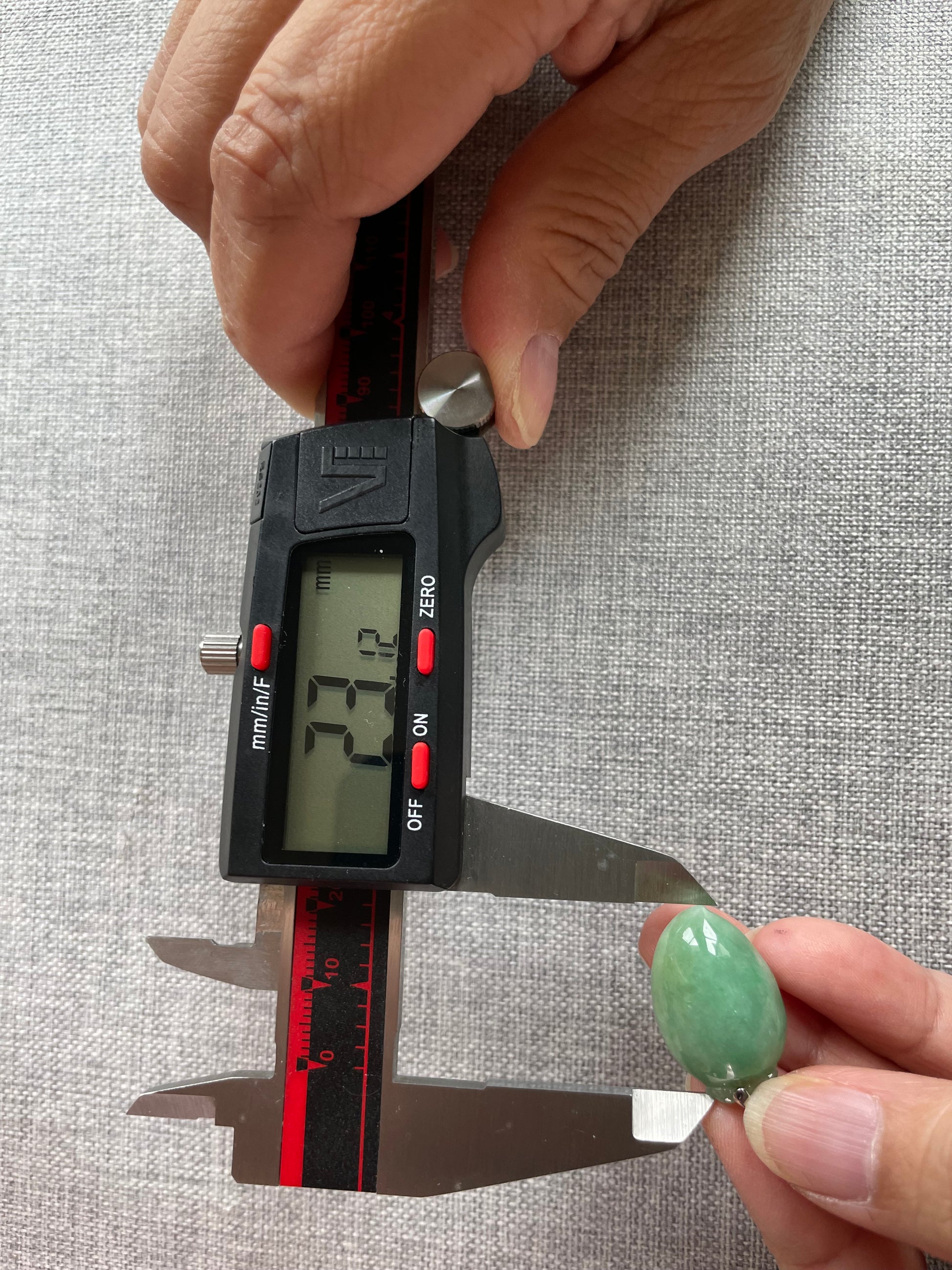 This pendant is translucent, and Icy green color. It is hand carved on both sides. Height:23.12mm width:15.67mm thick:9.45mm