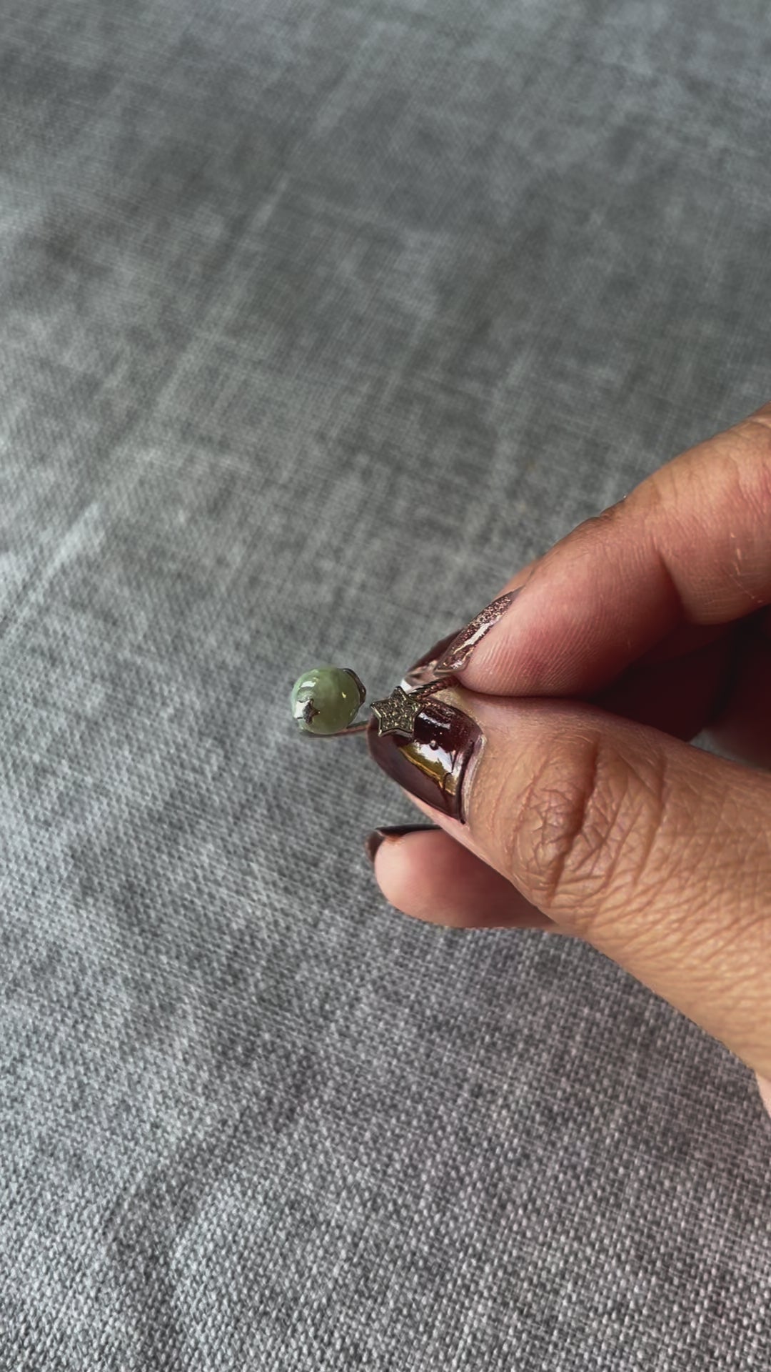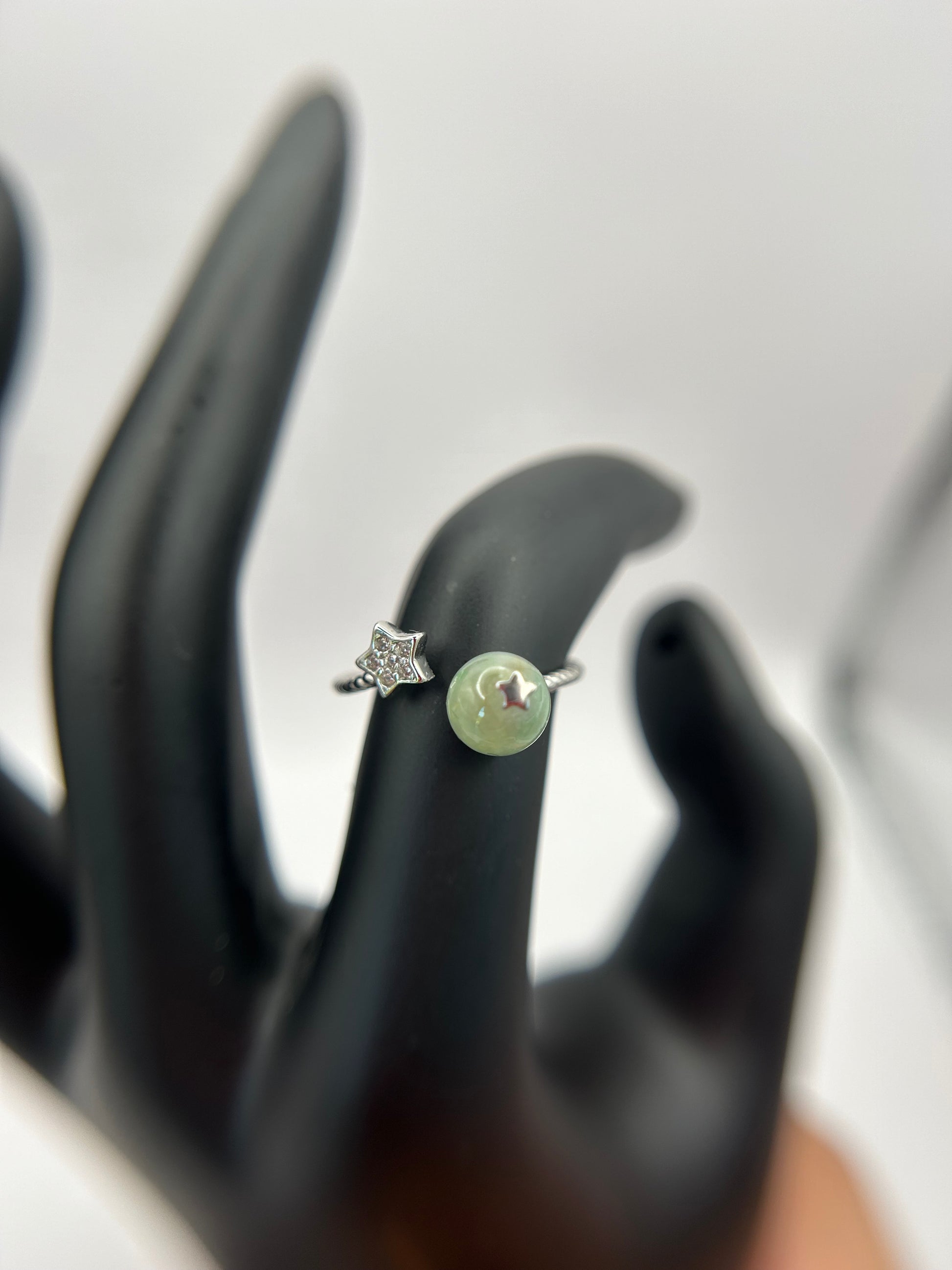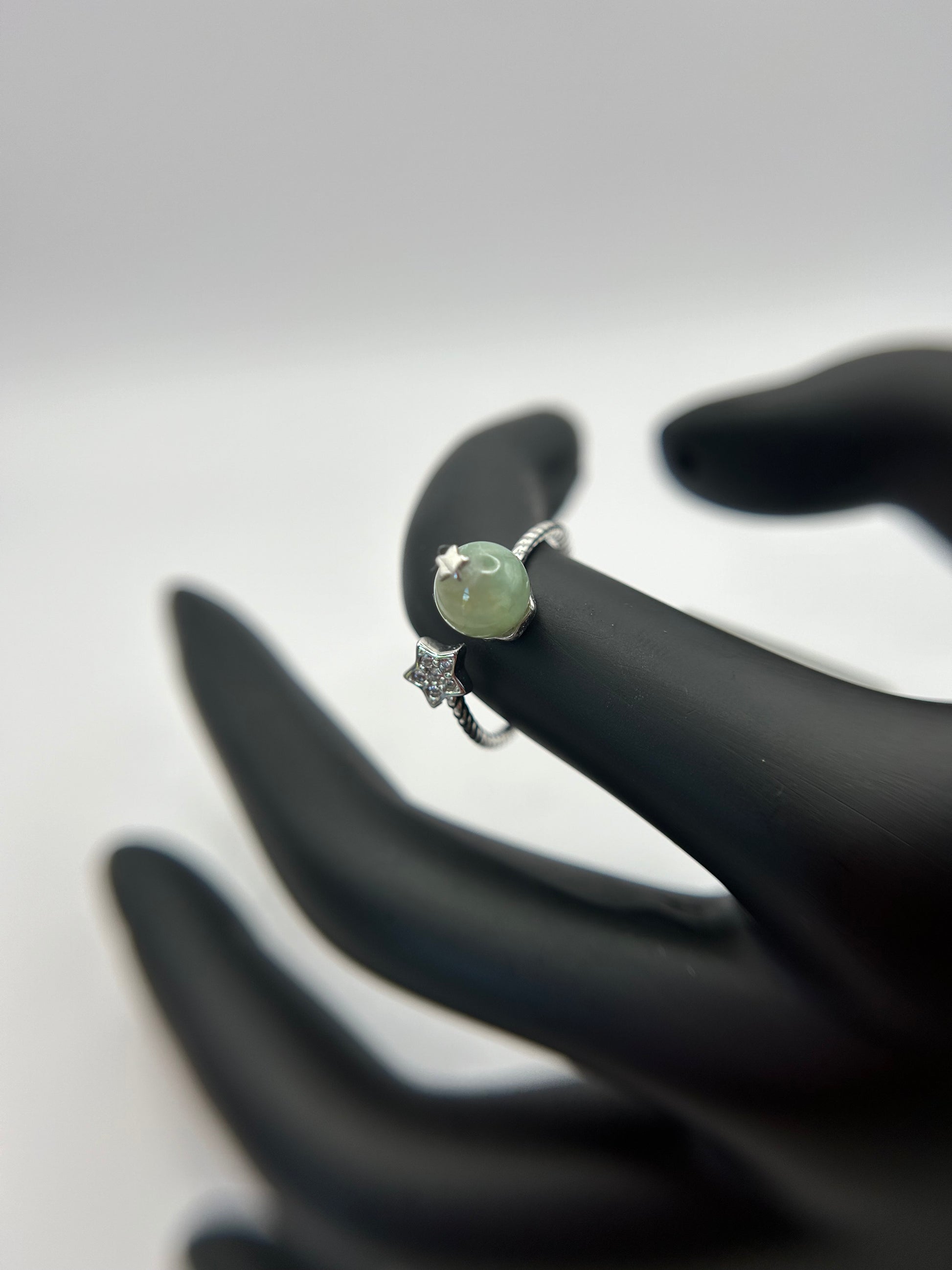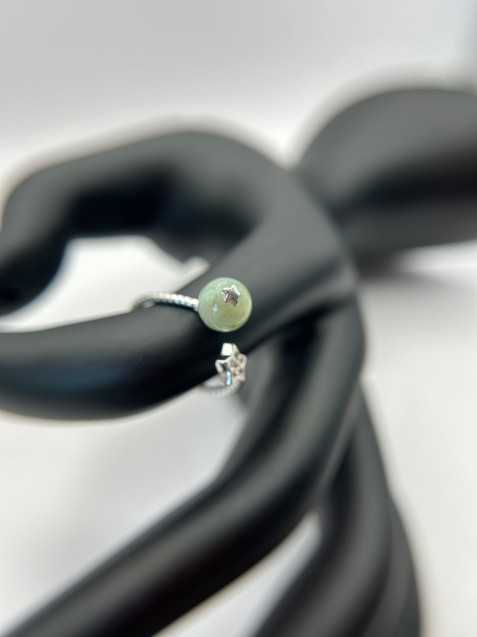This natural grade A Burmese green Jadeite sterling silver ring. is adjustable. The green jadeite bead diameter is 6.88mm.