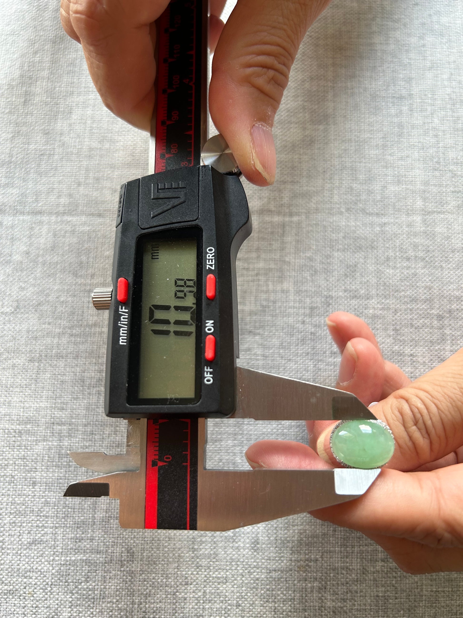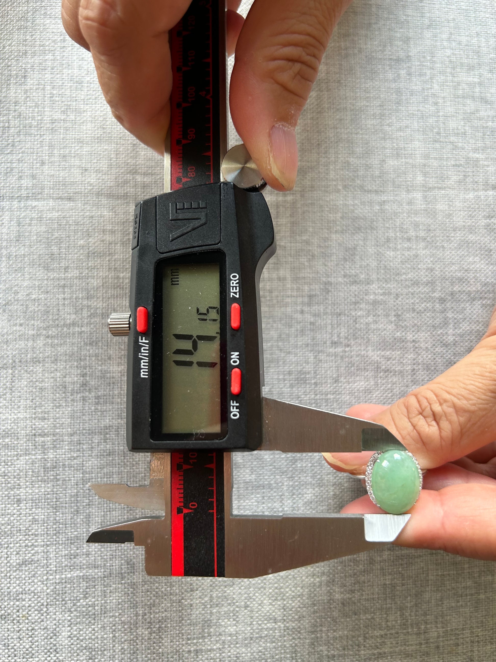 Natural grade A Burmese icy green Jadeite cabochon with Cubic Zirconia Silver Ring