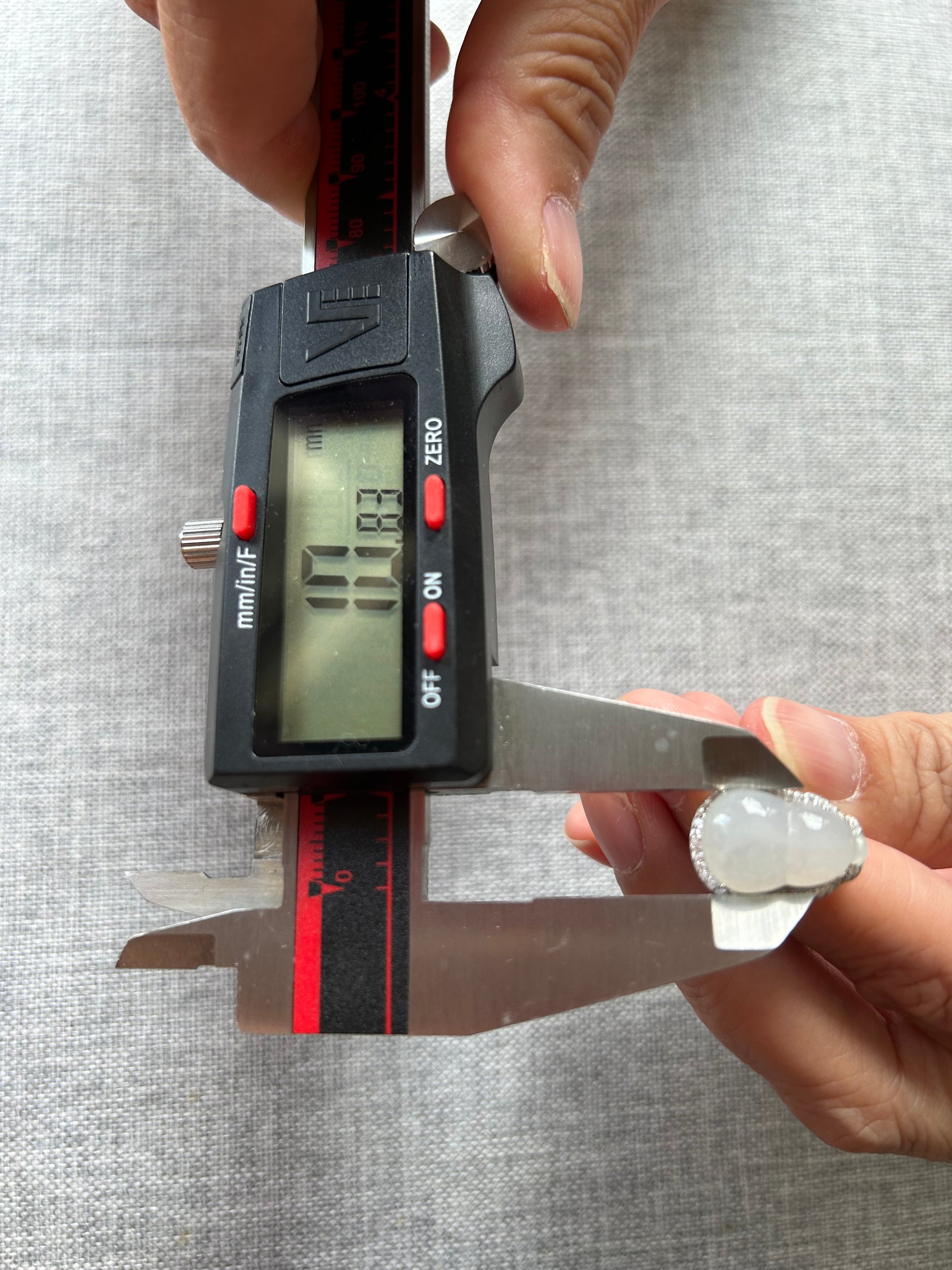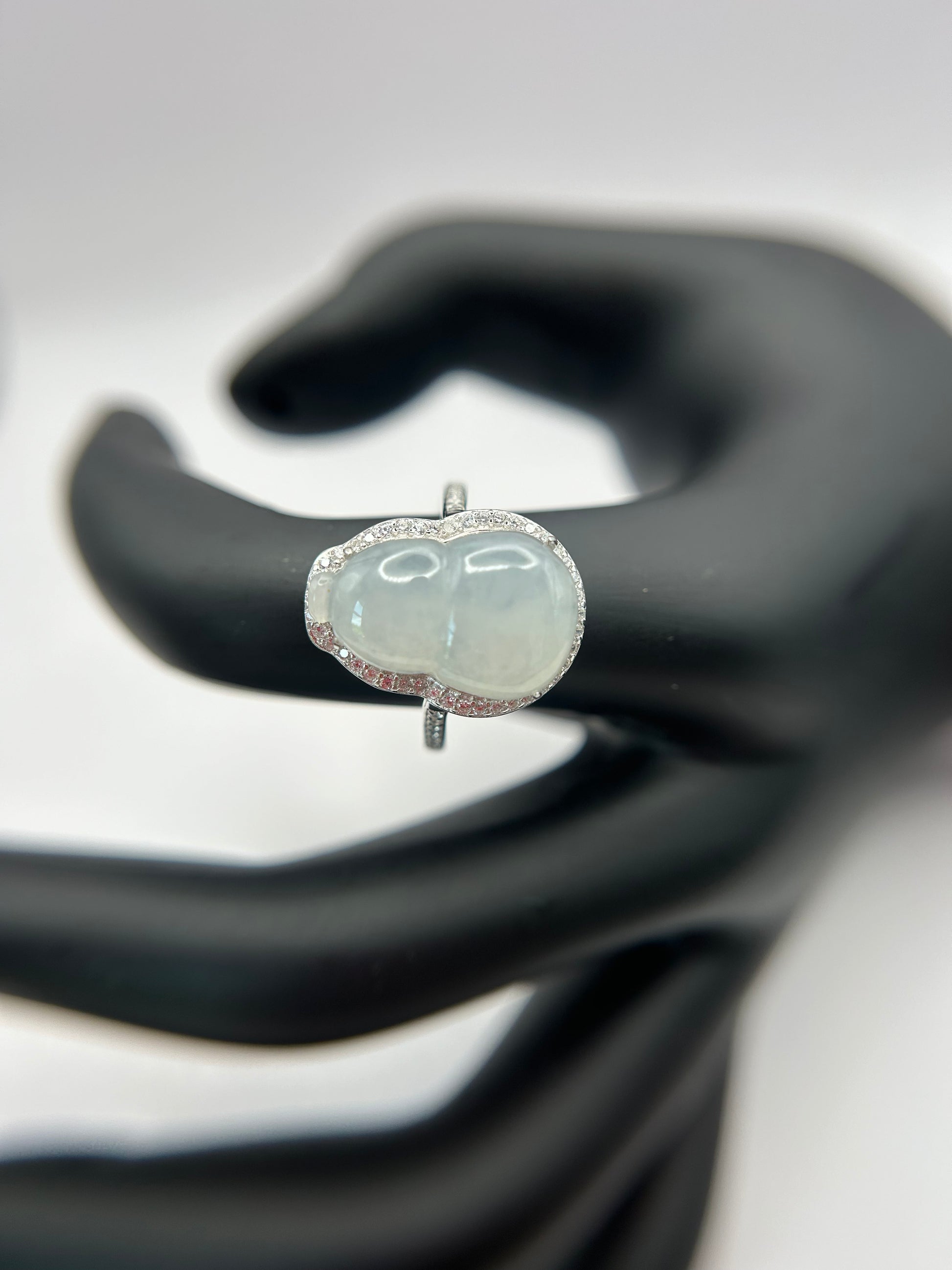 This is a Grade A Burma icy guard jadeite with Cubic Zirconia sterling silver adjustable ring. The jadeite Guard size is 16.24X 10.83mm. Guard will help the wearer bring wealth and stay away from sickness.