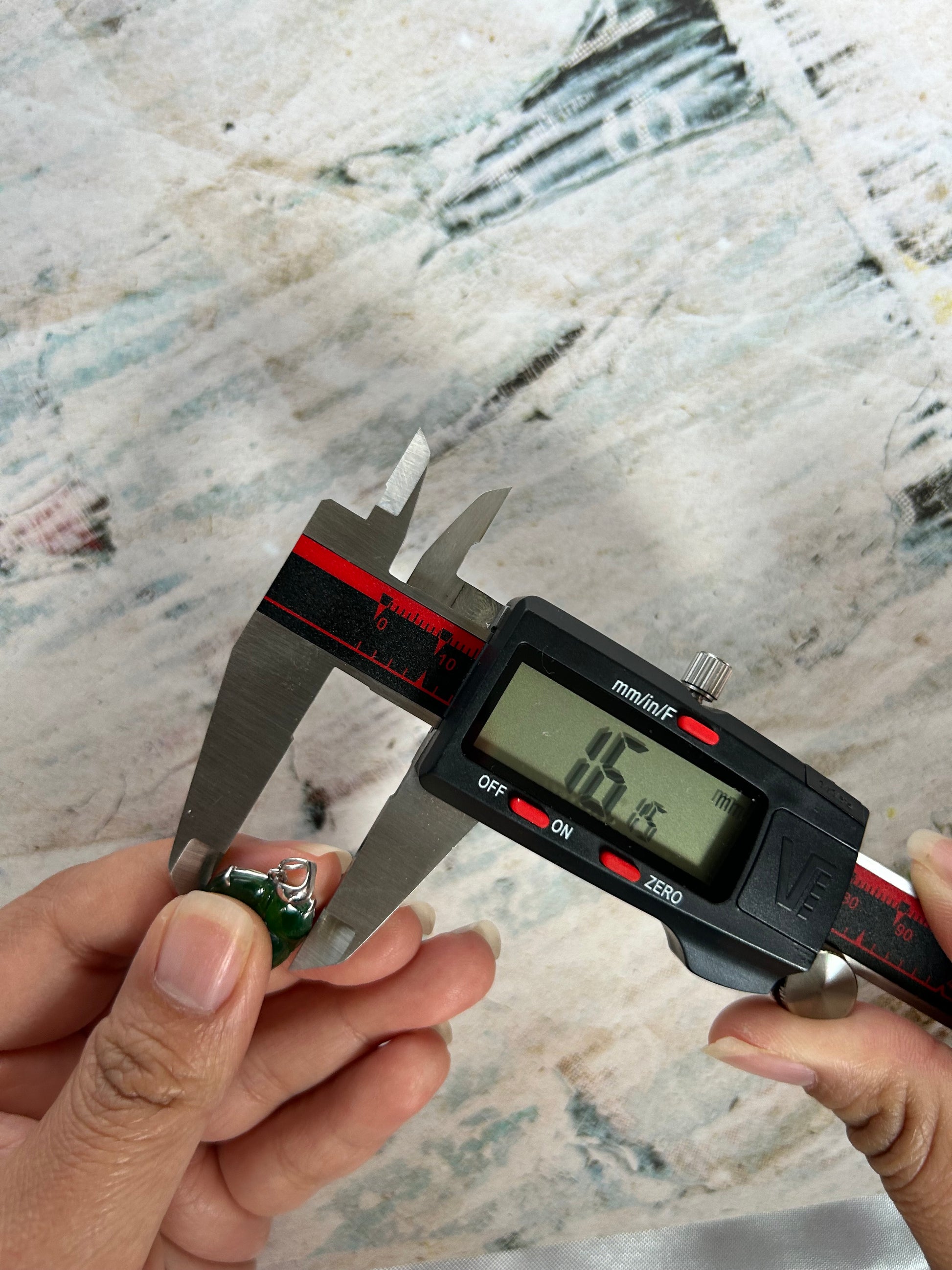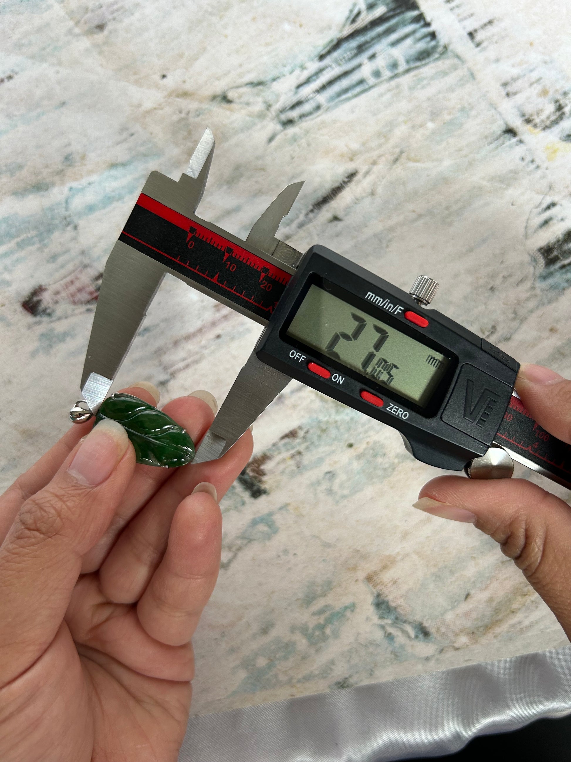 This pendant is translucent, and have some bright green color. It is hand carved on both sides. Height:27.05,mm width:16.15mm,