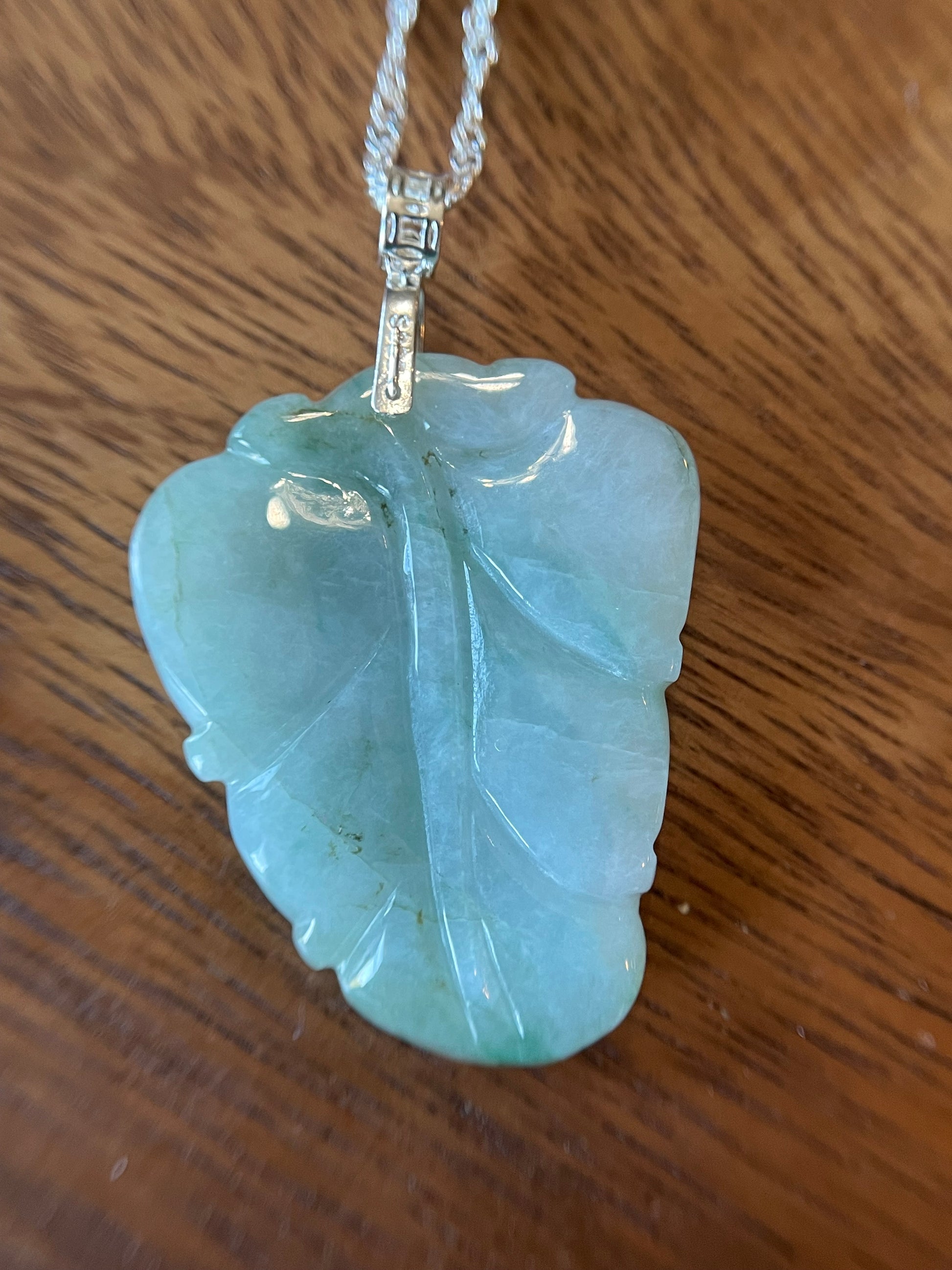 Natural Grade A Burmese Jadeite Glassy Blue Ancient Dragon over Leaf Pendant silver necklace