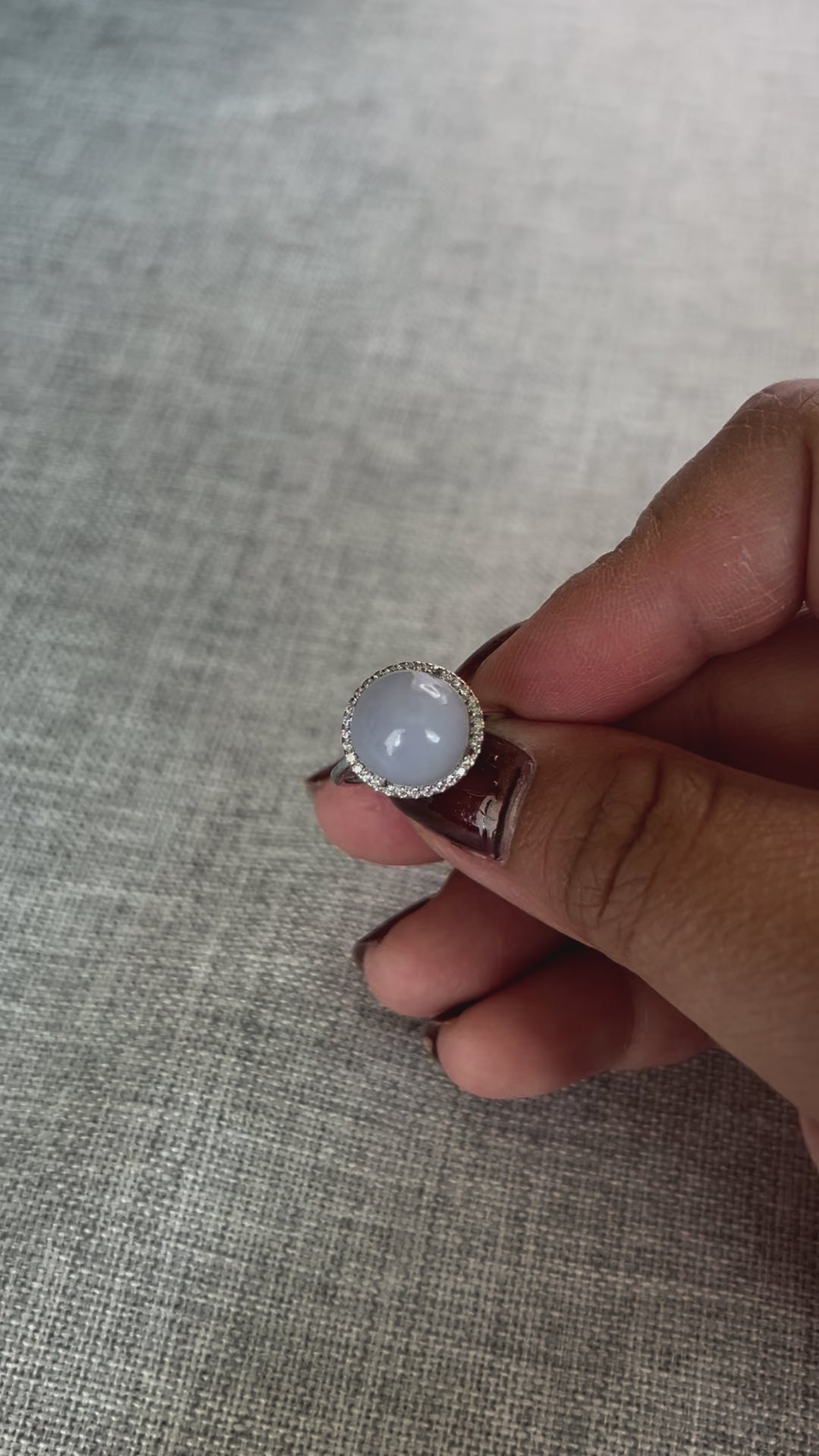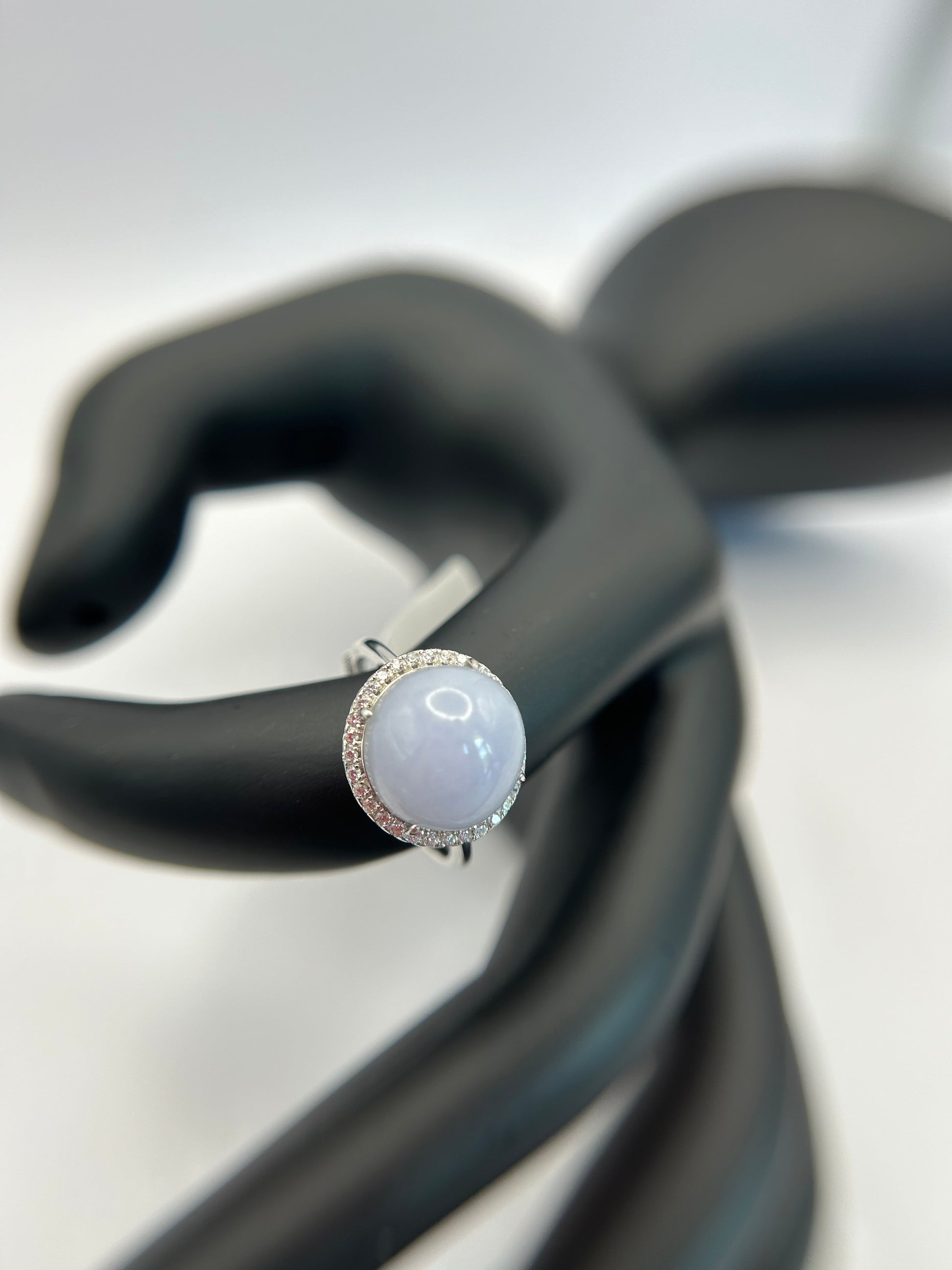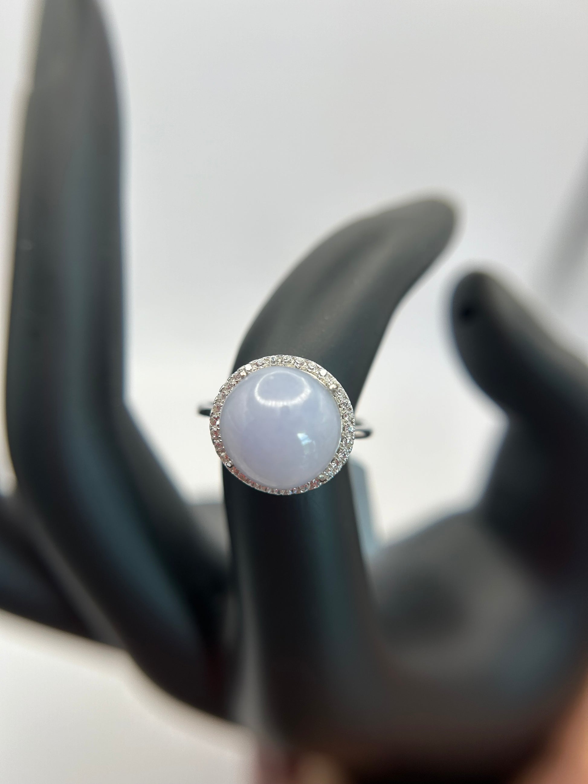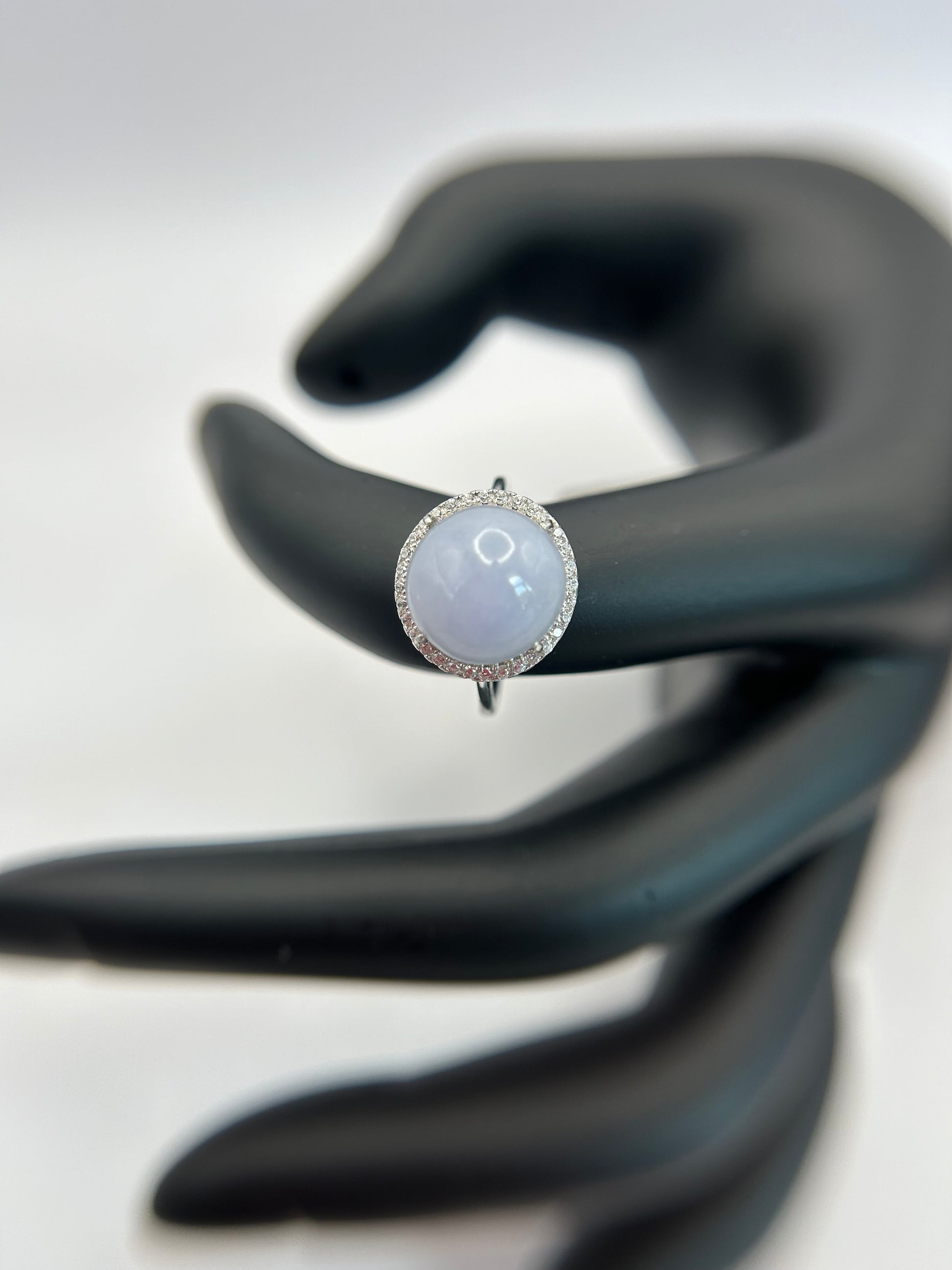 Natural grade A Burmese Lavender Jadeite cabochon with Cubic Zirconia Silver Ring