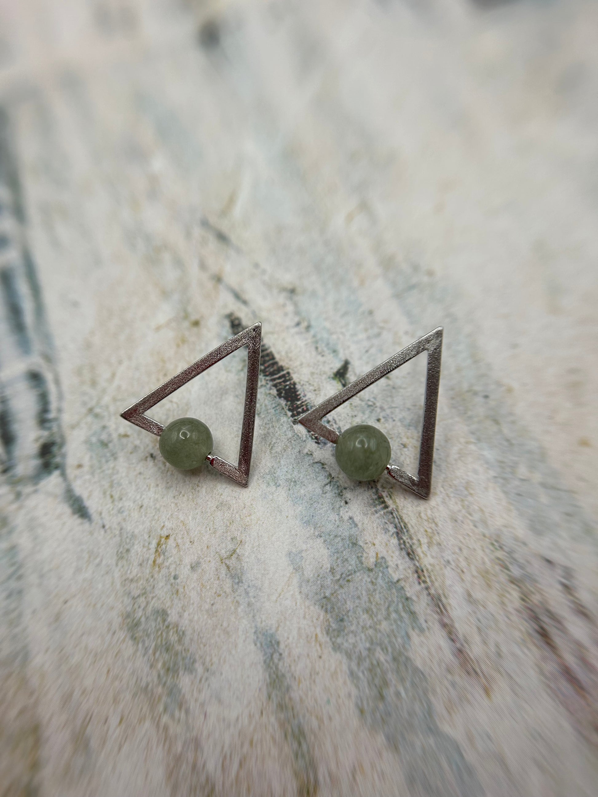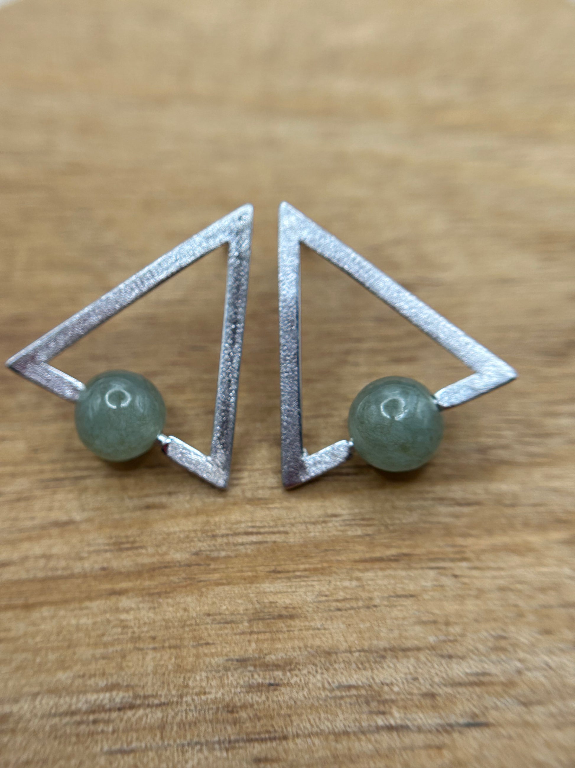 Natural Grade A Green Burmese Jadeite beads 925 silver earring